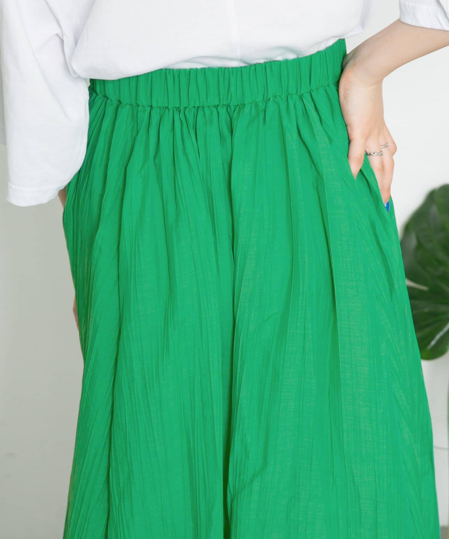 這款單品的內襯一直延伸到膝蓋部位,膝蓋以下的透明度很高,給人一種非常女性化的清涼感。從現在開始,它將會派上用場!它可以手洗,所以夏天很容易打理。