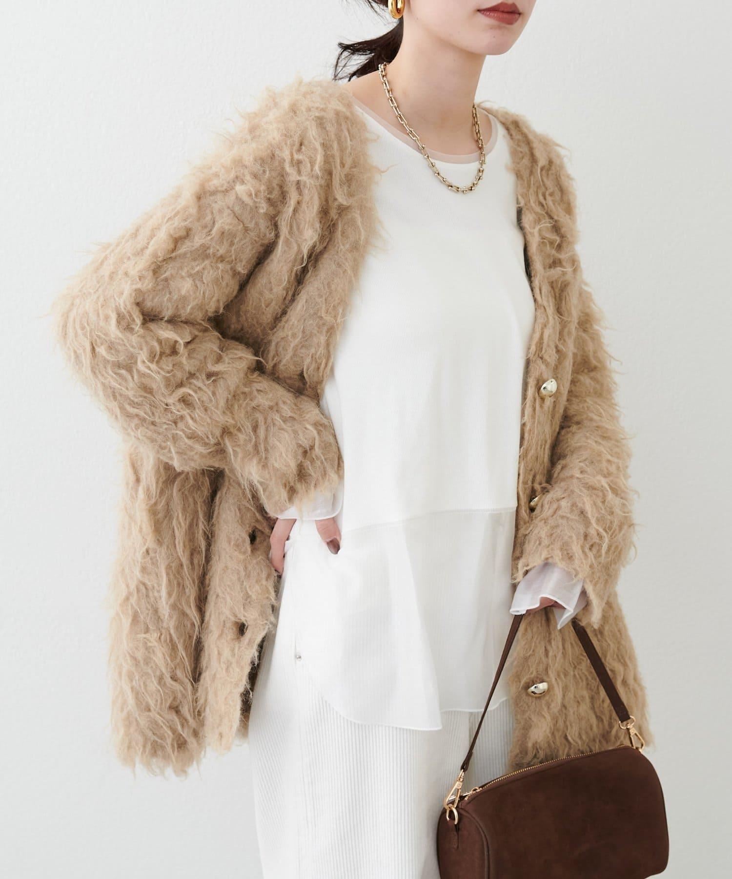 搭配薄紗裙或緞面打底褲,造型寬鬆而不失隨意。