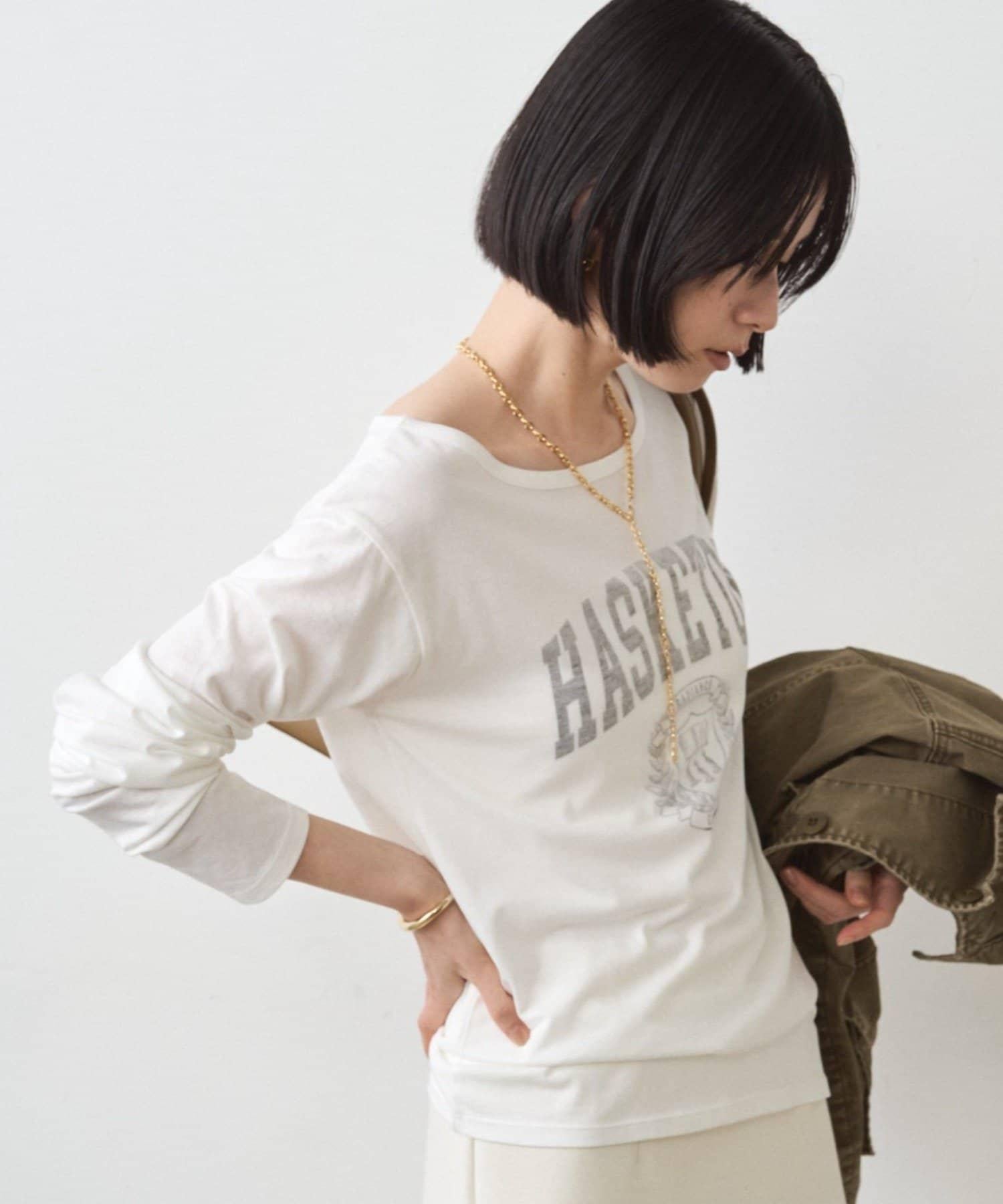 寬大的開放式領口能很好地展示肩部線條,凸顯女性魅力。適度寬鬆的版型設計,使穿著更加輕鬆,在舒適與休閒之間取得了完美的平衡。學院風格的徽標印花是優雅的點睛之筆,使其成為日常易穿的單品。