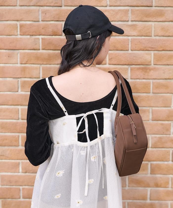 喇叭形輪廓和背部的絲帶設計是重點。