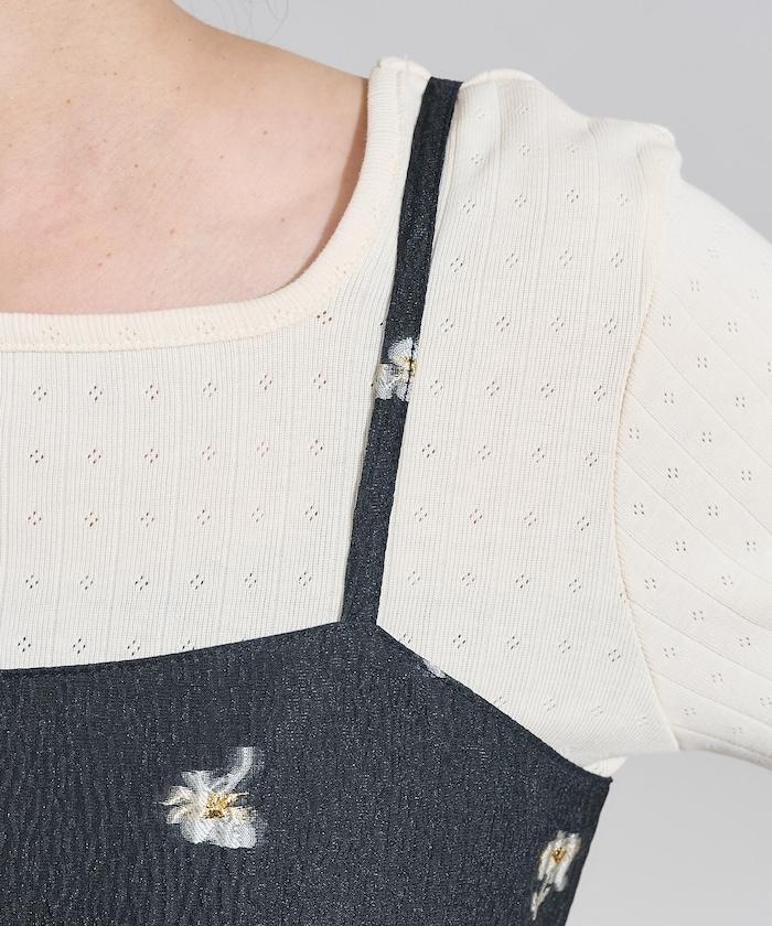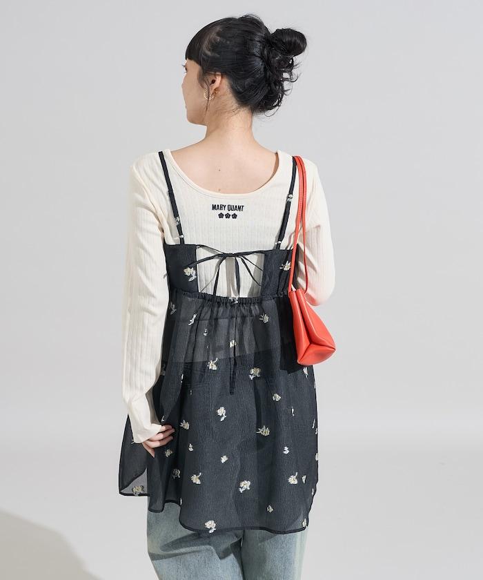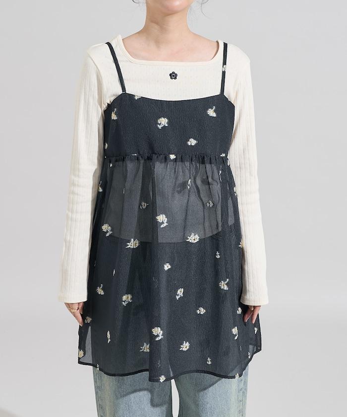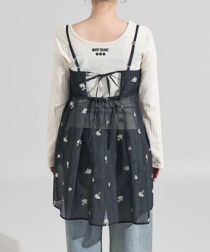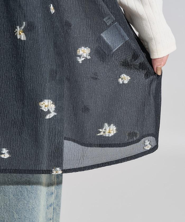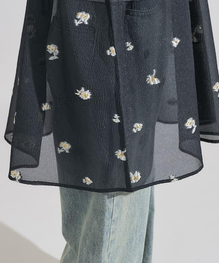 採用透視提花面料製成,繡有花朵,由我們原創。