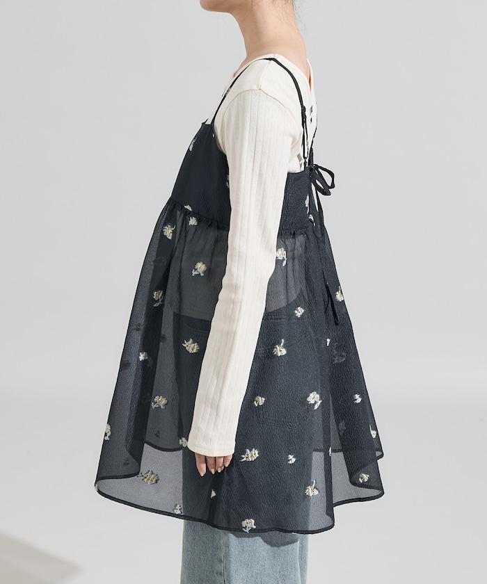 具有透明感的薄紗連衣裙。