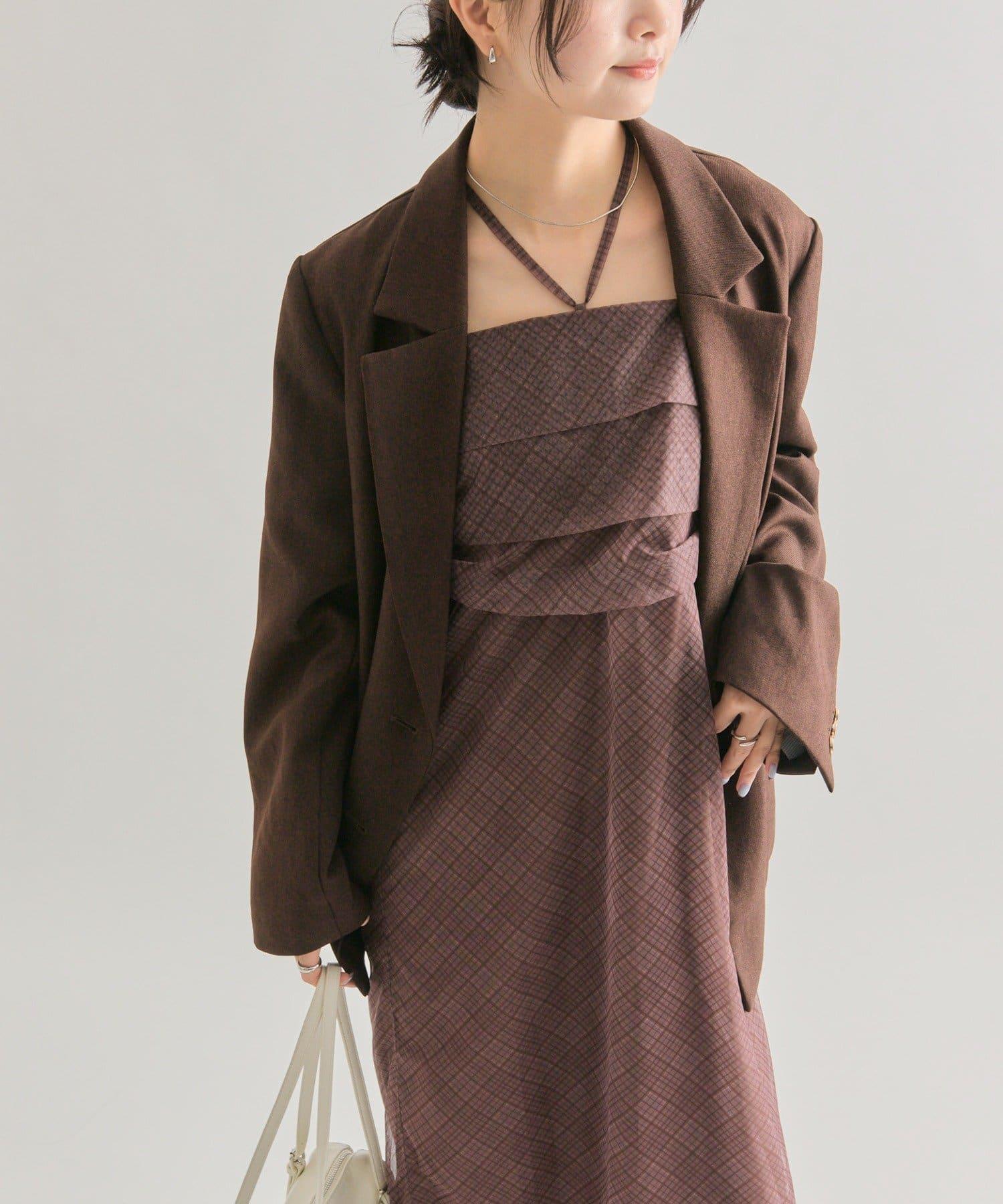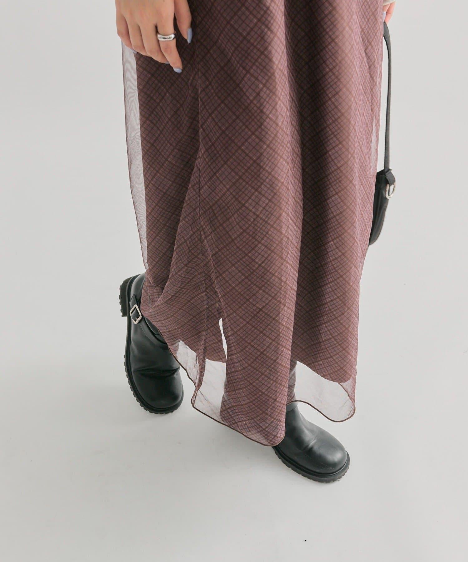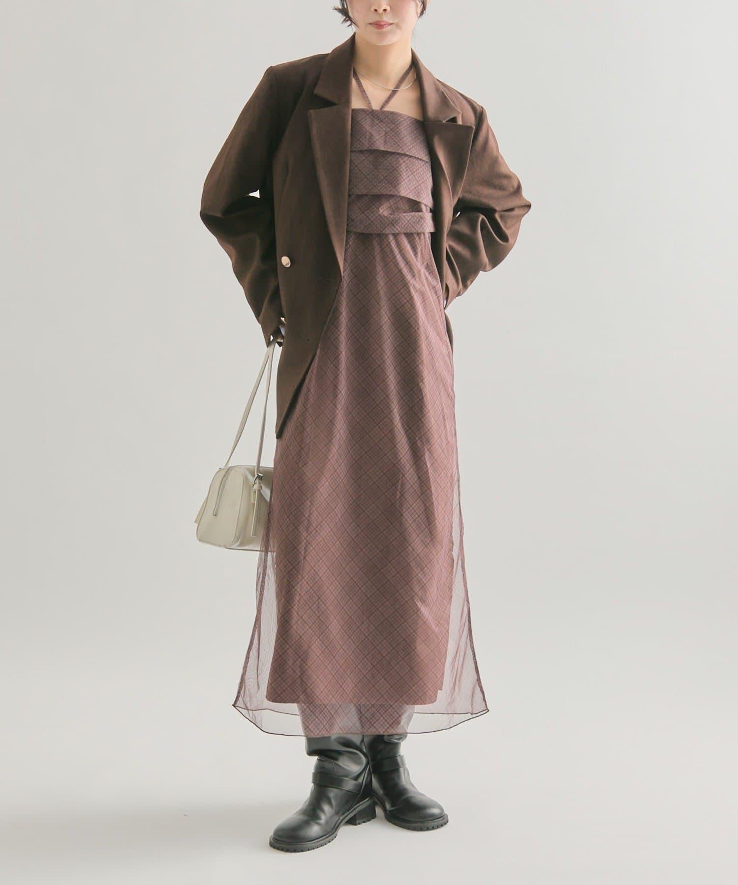 薄紗材質給人寬鬆的感覺,格紋圖案則增添了秋天的氣息。