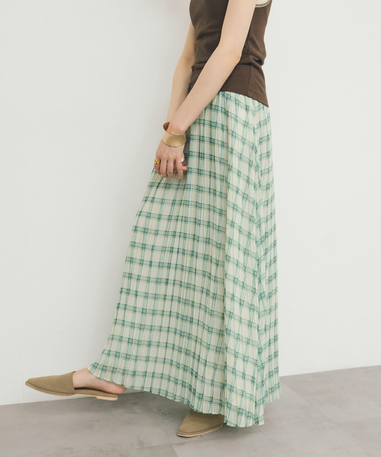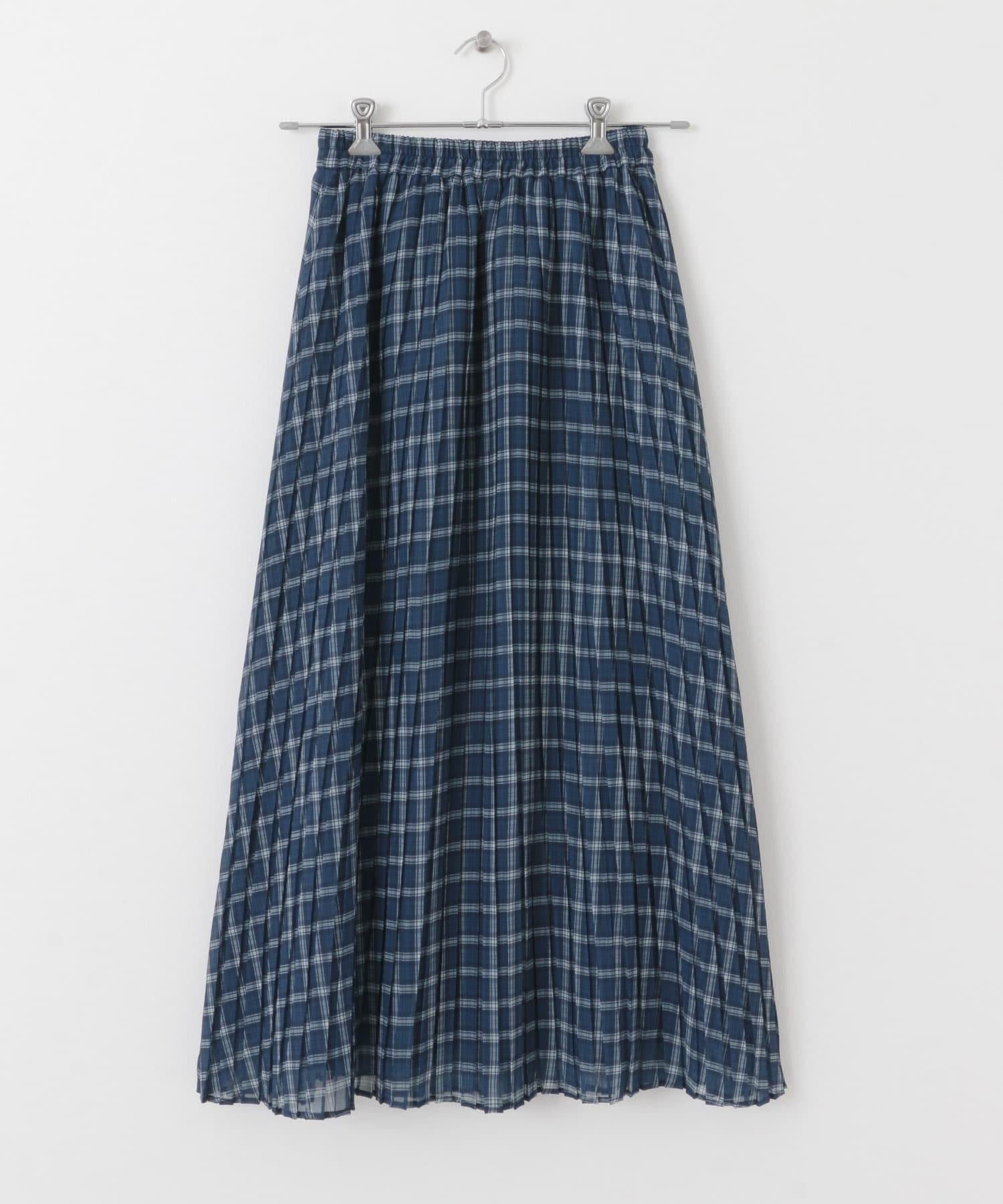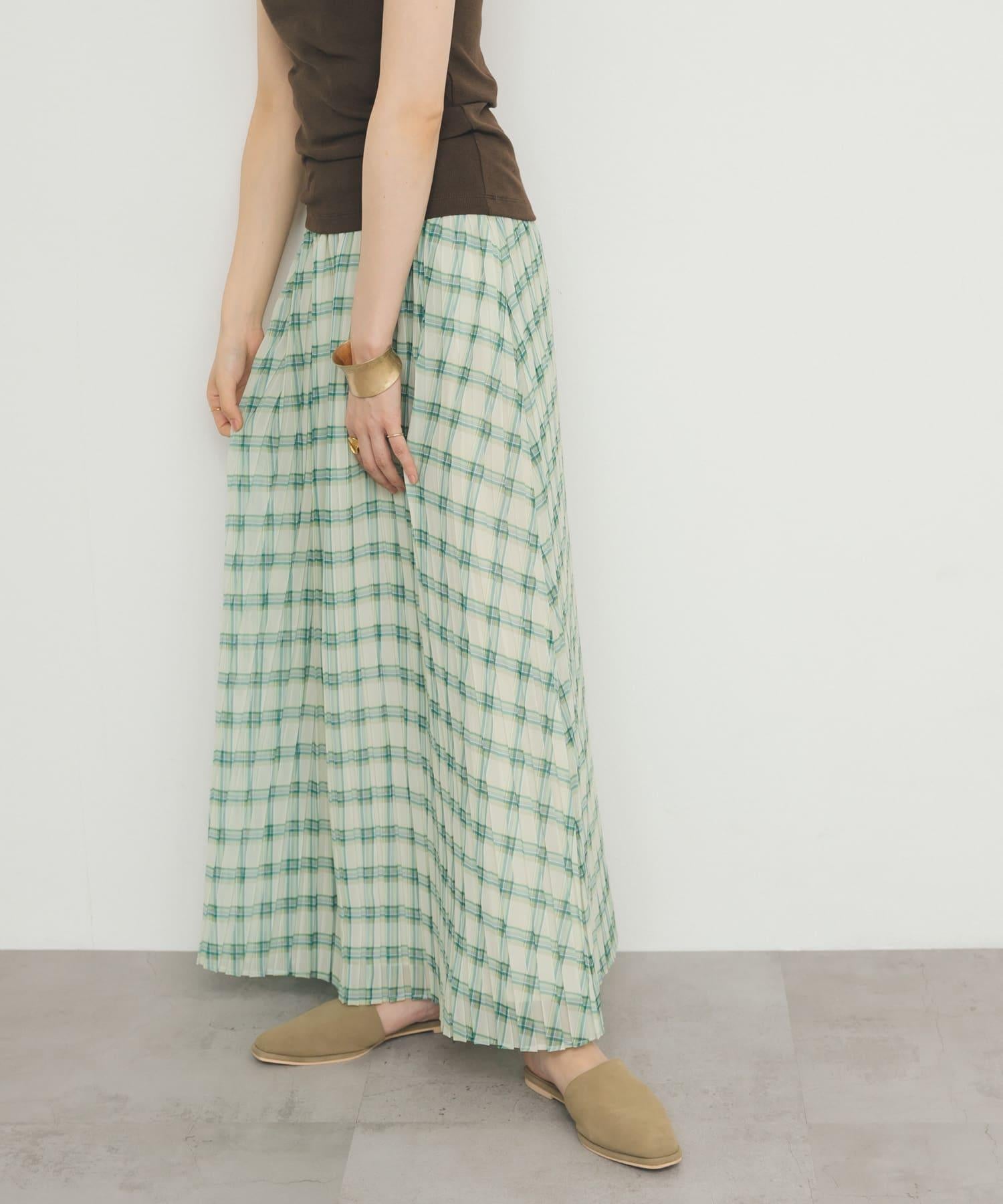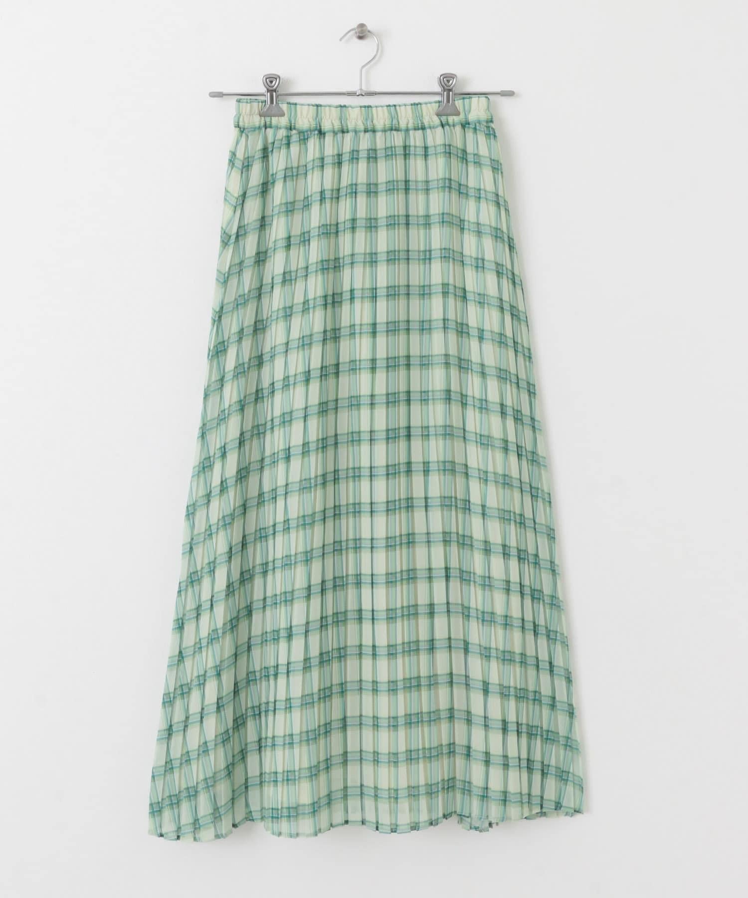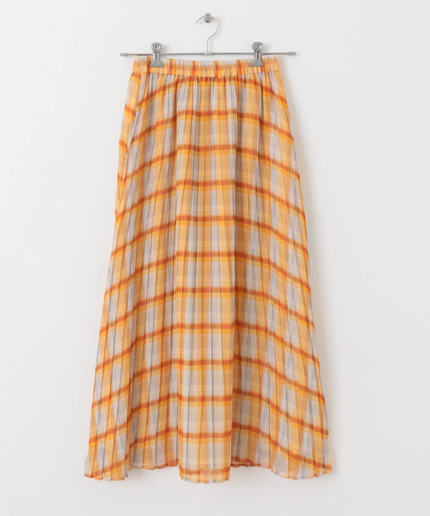 百褶裙採用 KBF 的原創格紋圖案。薄紗材質和細小的褶皺營造出輕盈清新的外觀。腰部全鬆緊設計方便穿脫。可搭配基本款上衣,打造迷人造型。