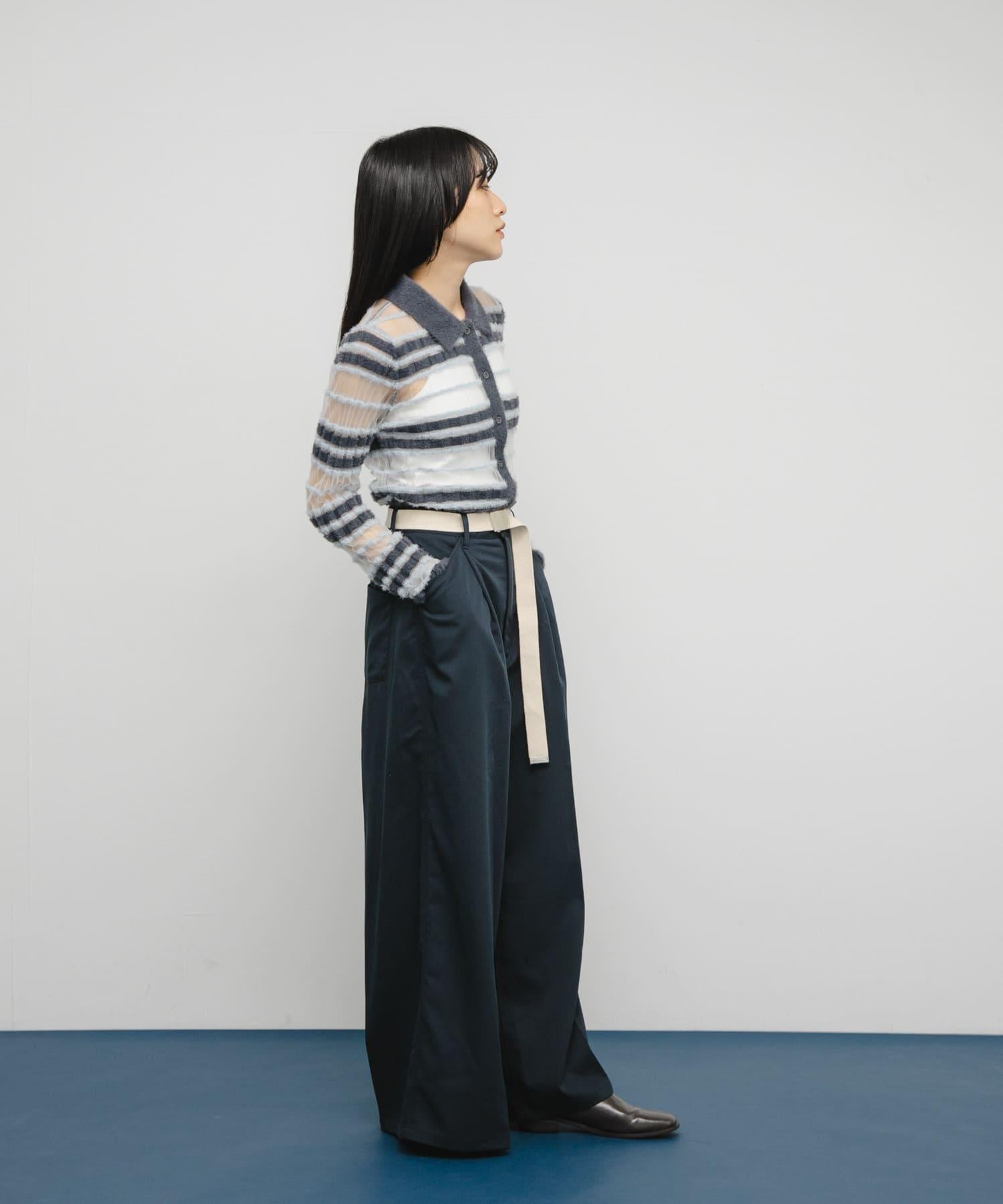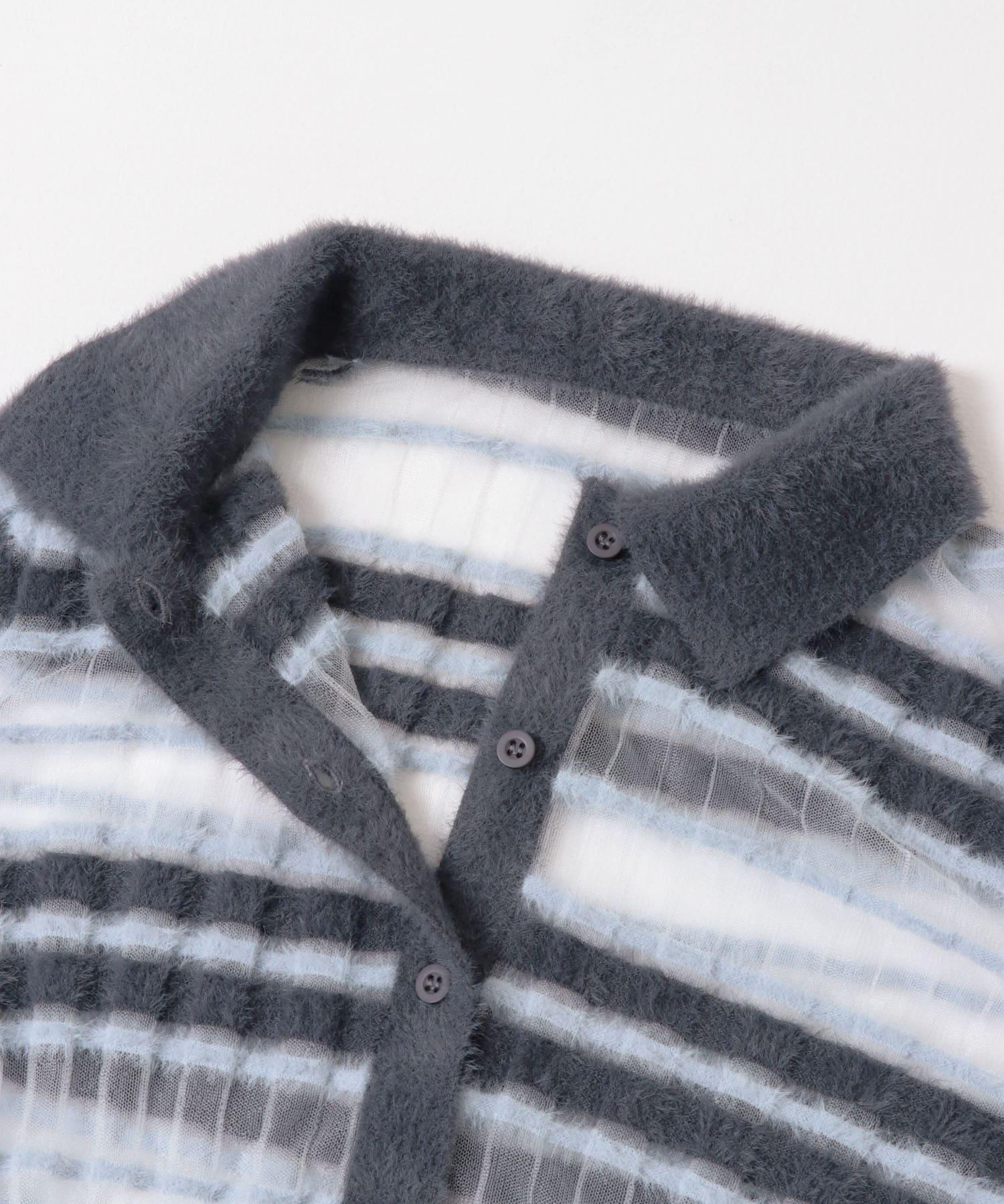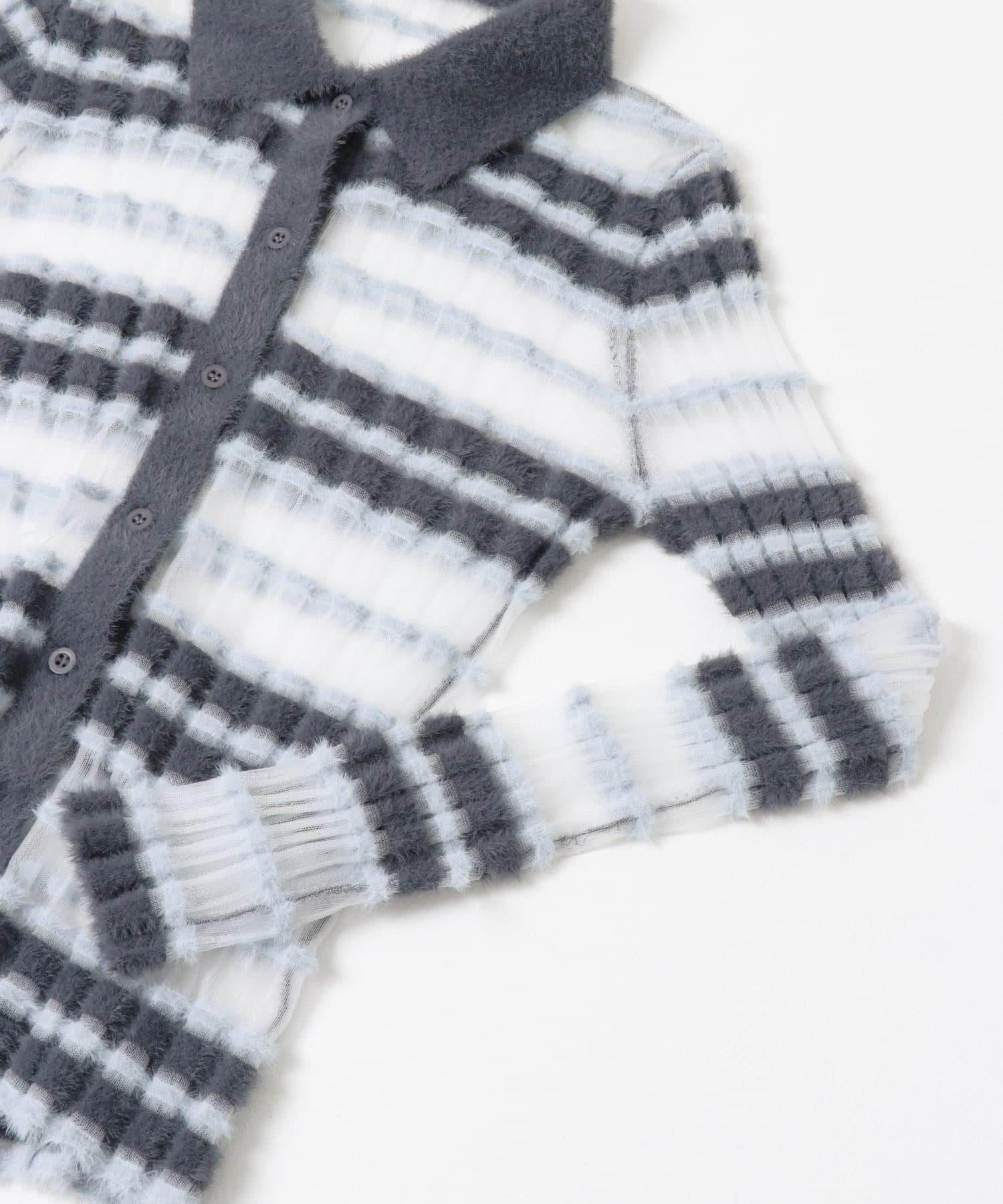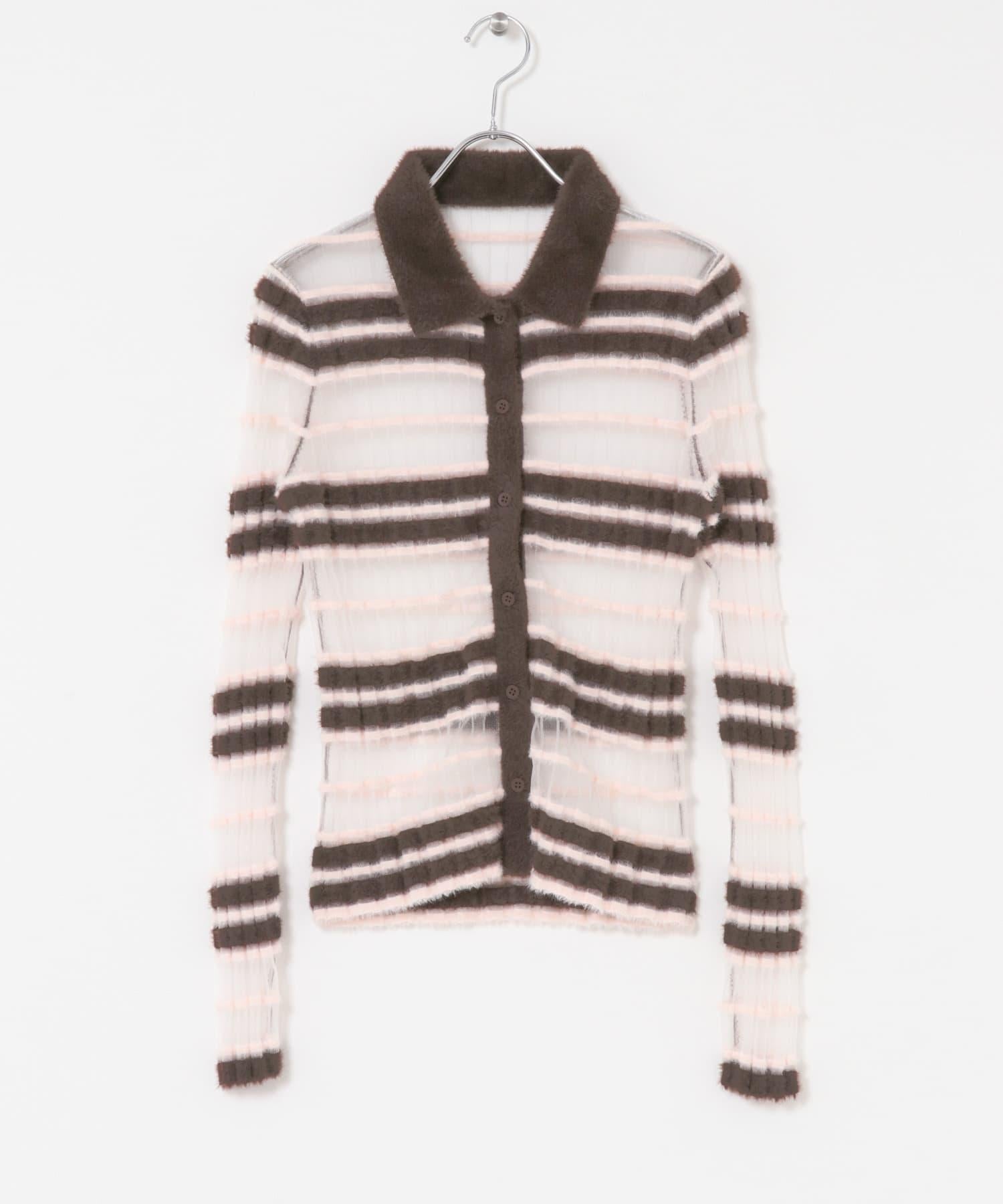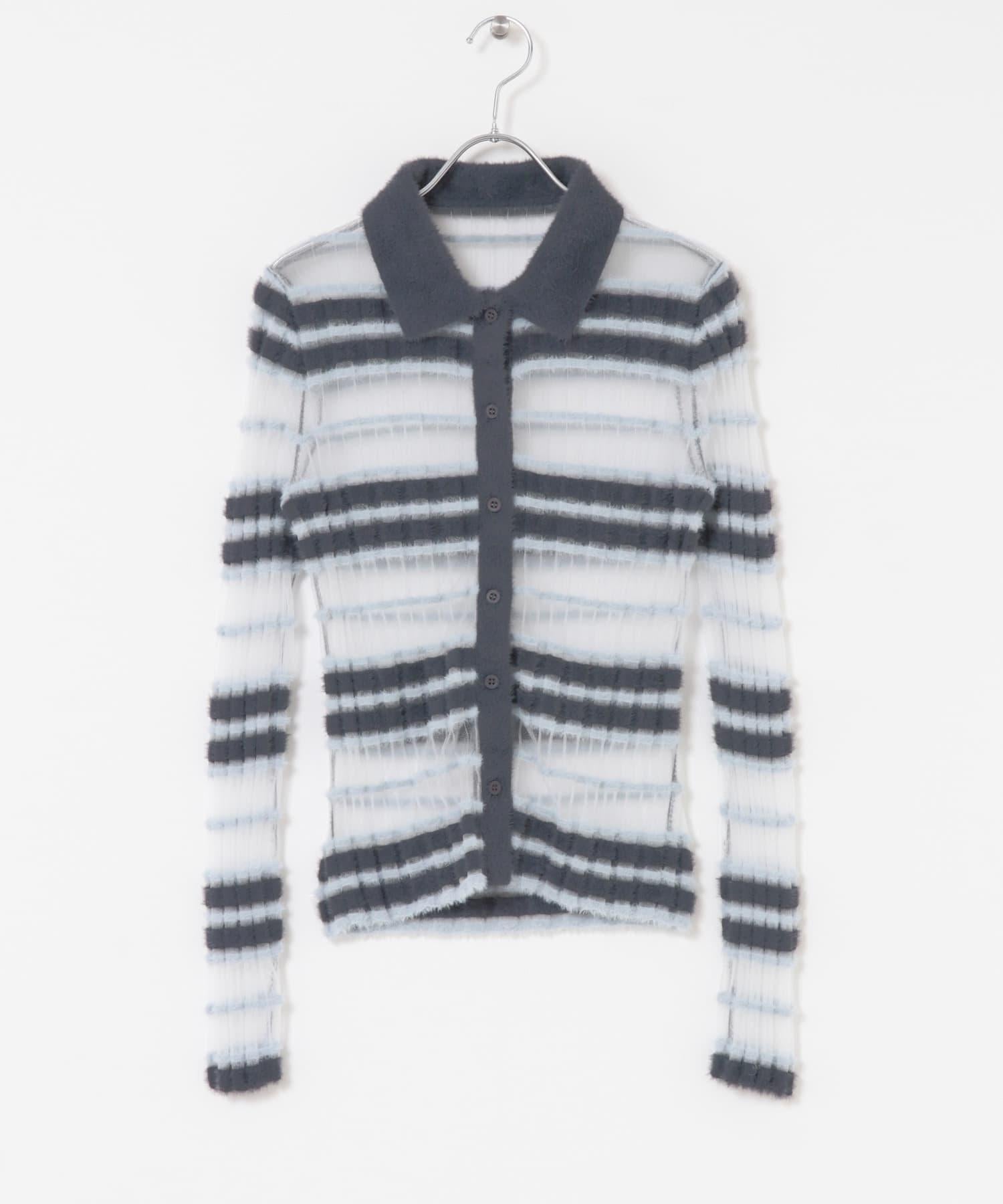 採用與透明格紋羽毛針織衫(KBA6-22R020)相同的紗線編織出透明邊紋。儘管外形小巧,但 RIB 針織確保穿著無壓力。Polo 規格也是關注的重點,只需穿上它就能牢記潮流趨勢。為偏向深色的秋冬搭配增添一抹魅力。