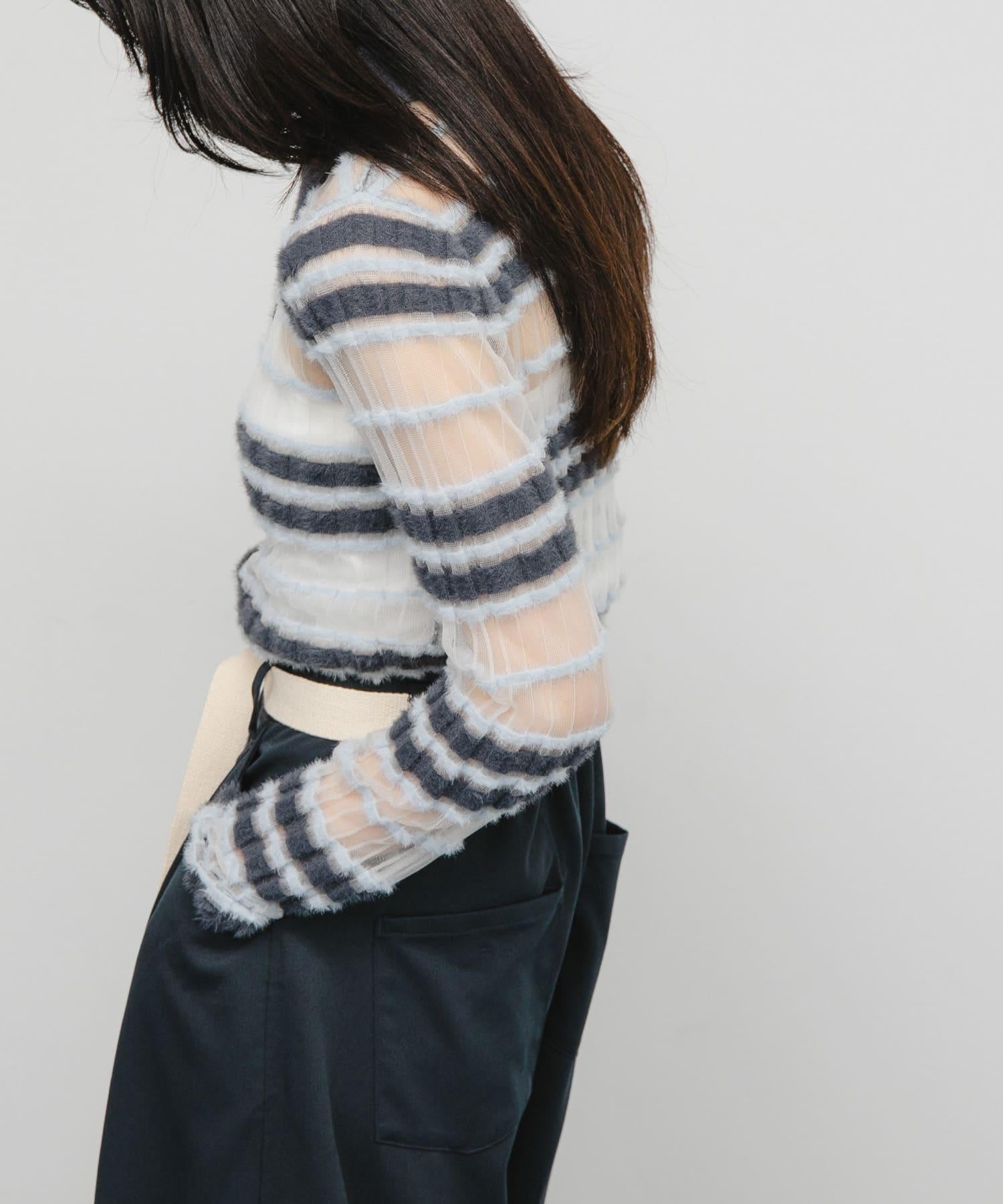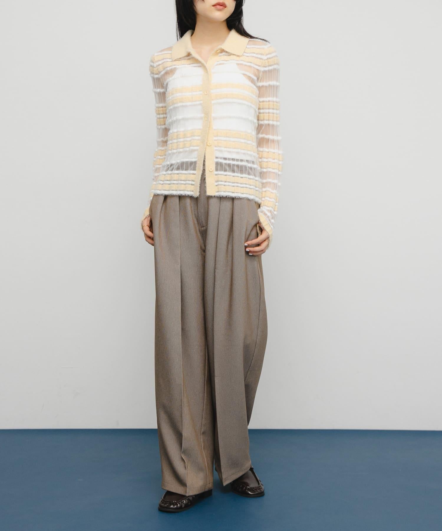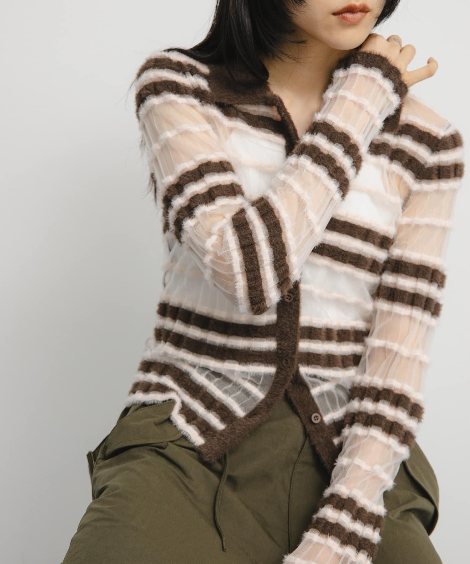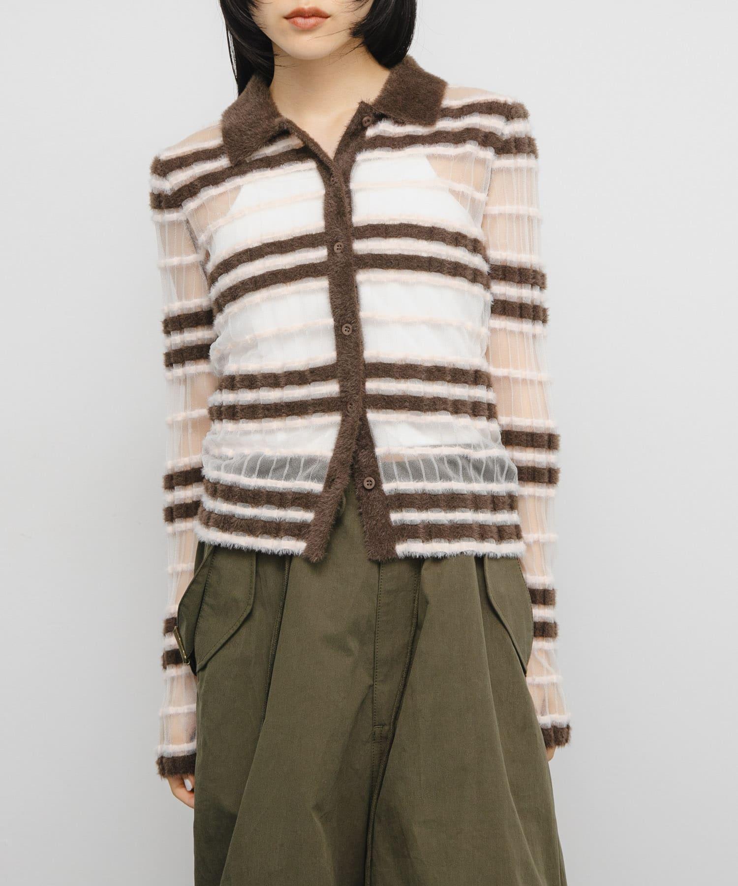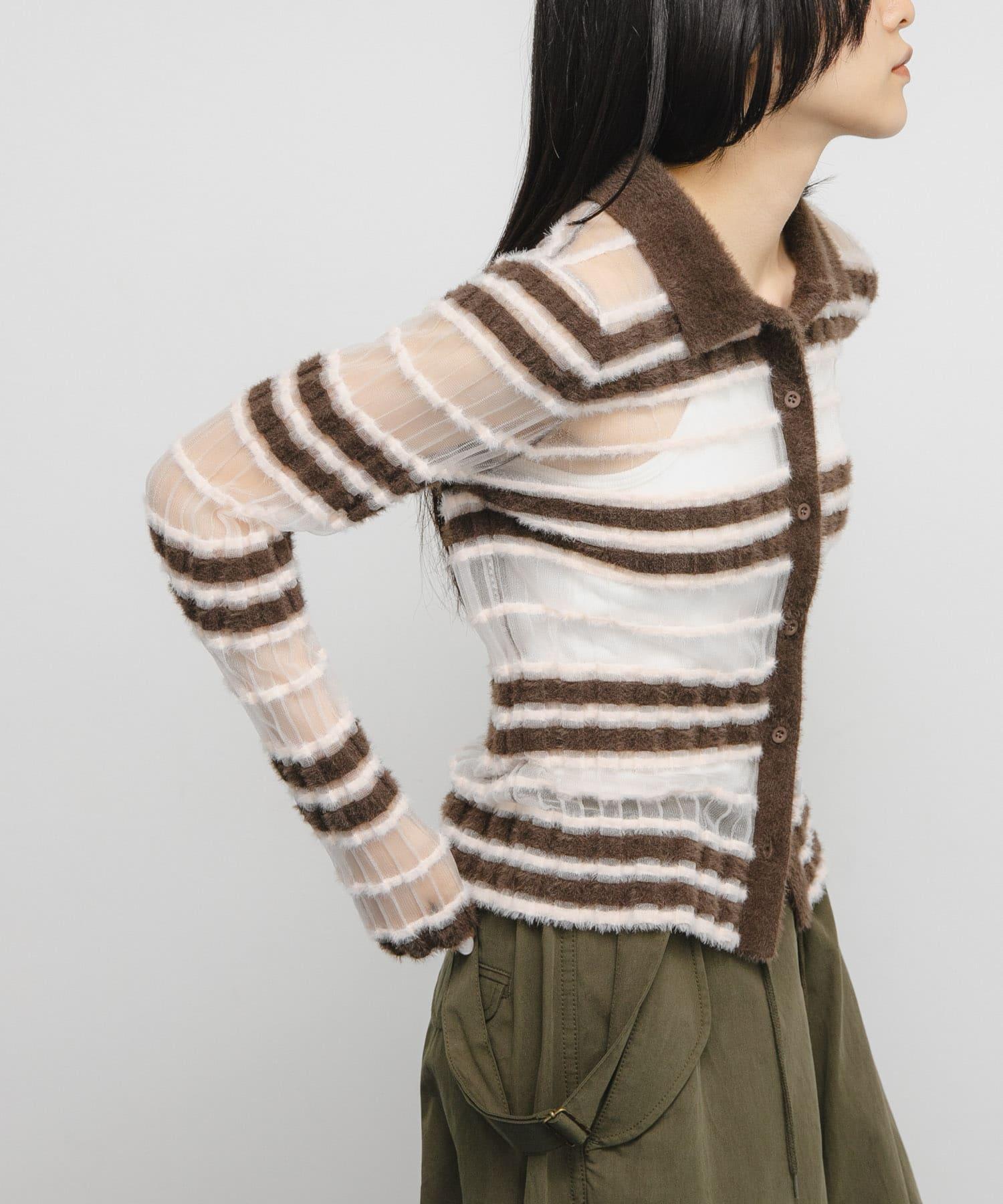 採用與透明格紋羽毛針織衫(KBA6-22R020)相同的紗線編織出透明邊紋。儘管外形小巧,但 RIB 針織確保穿著無壓力。Polo 規格也是關注的重點,只需穿上它就能牢記潮流趨勢。為偏向深色的秋冬搭配增添一抹魅力。