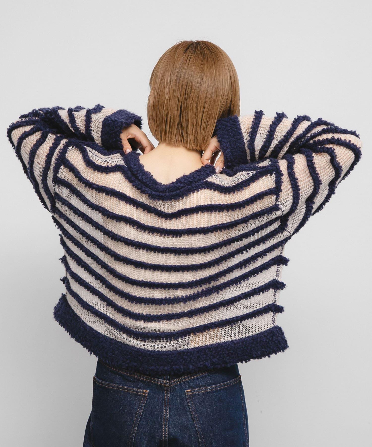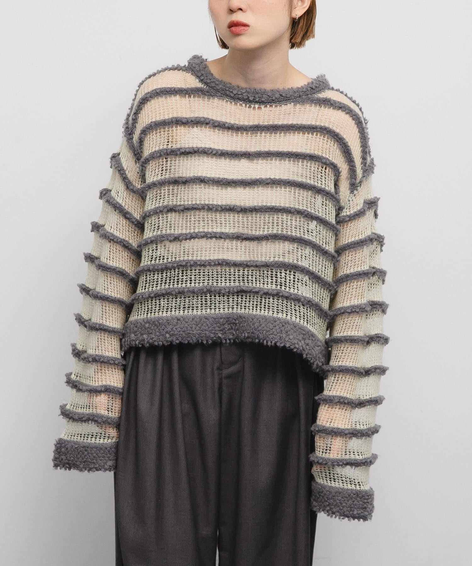 這款迷人的針織衫採用兩種紗線編織而成,並帶有立體邊框圖案。寬鬆的衣身和略微縮短的長度之間的平衡起到了提升風格的效果。適度的透明度也是一個微妙的亮點。這款單品既可作為主衣穿著,也可疊加在襯衫上,打造各種造型。
