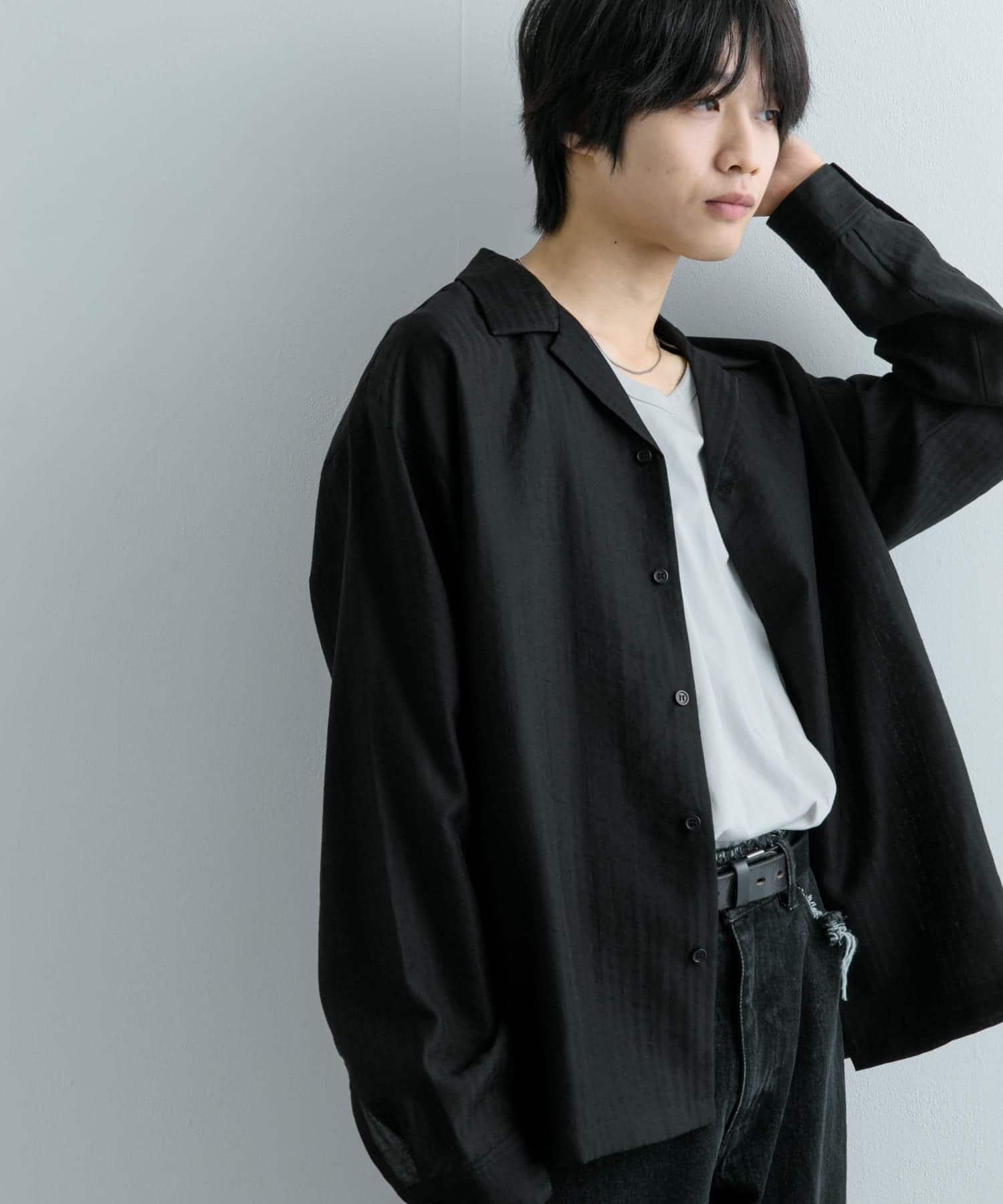 透視條紋開領襯衫