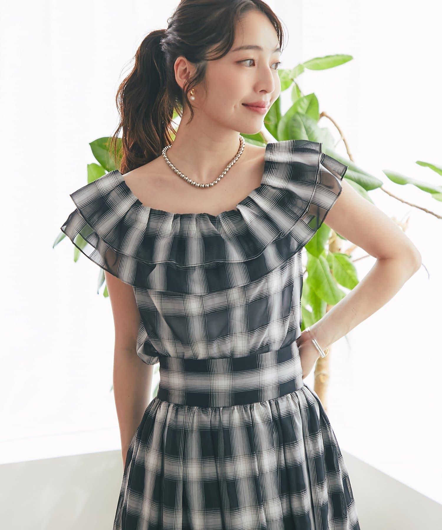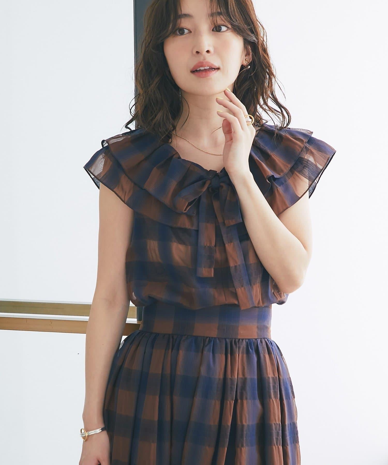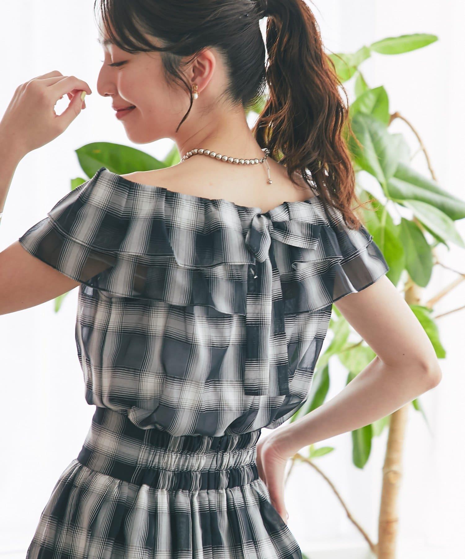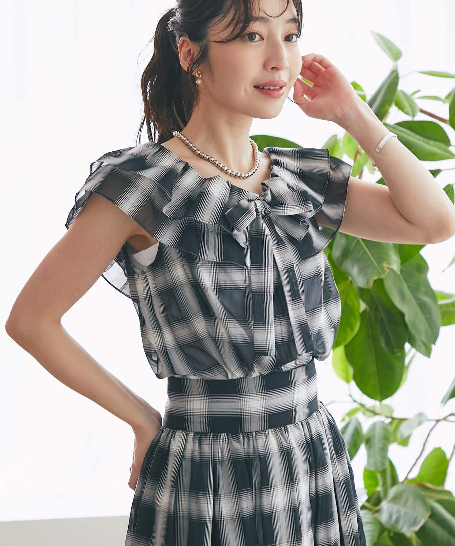 胸前的絲帶可以根據系法改變印象,也可以像露肩一樣穿著。