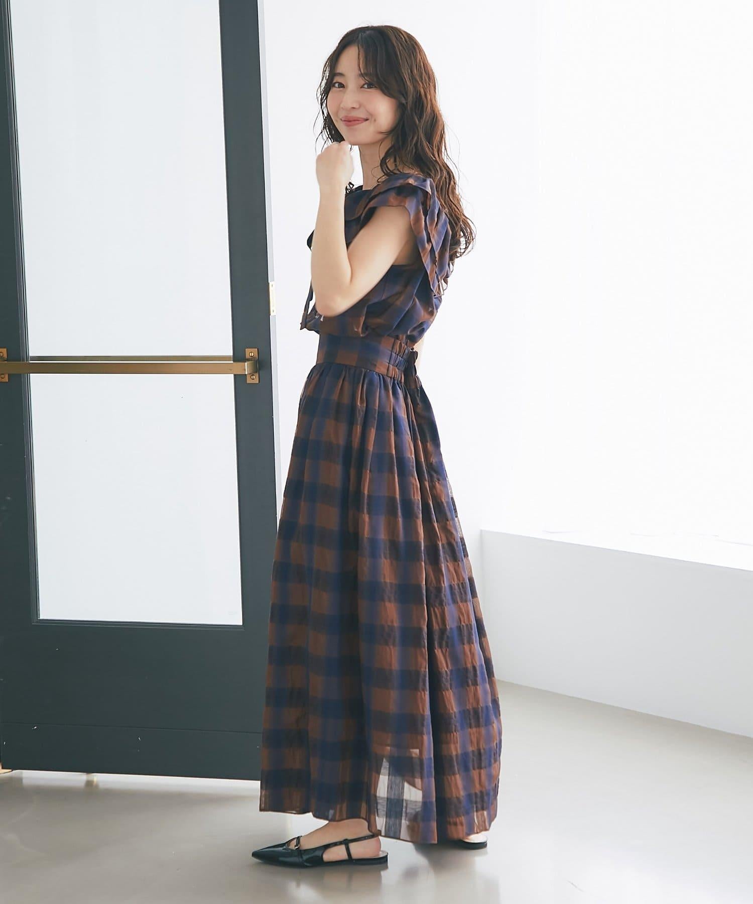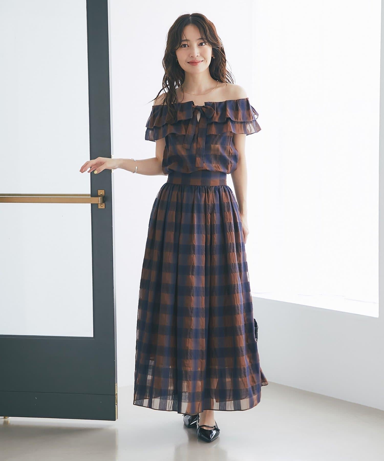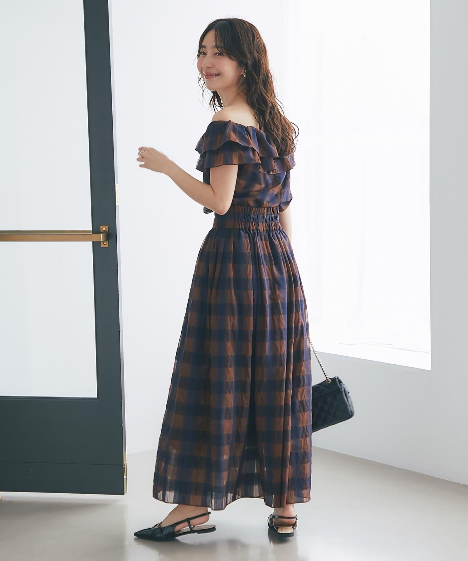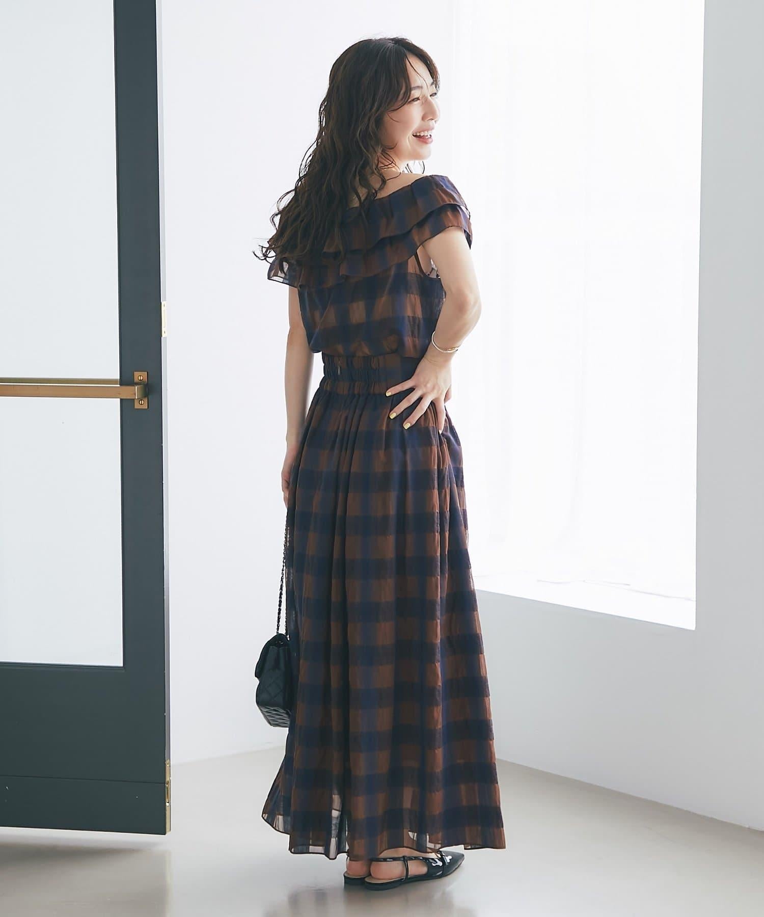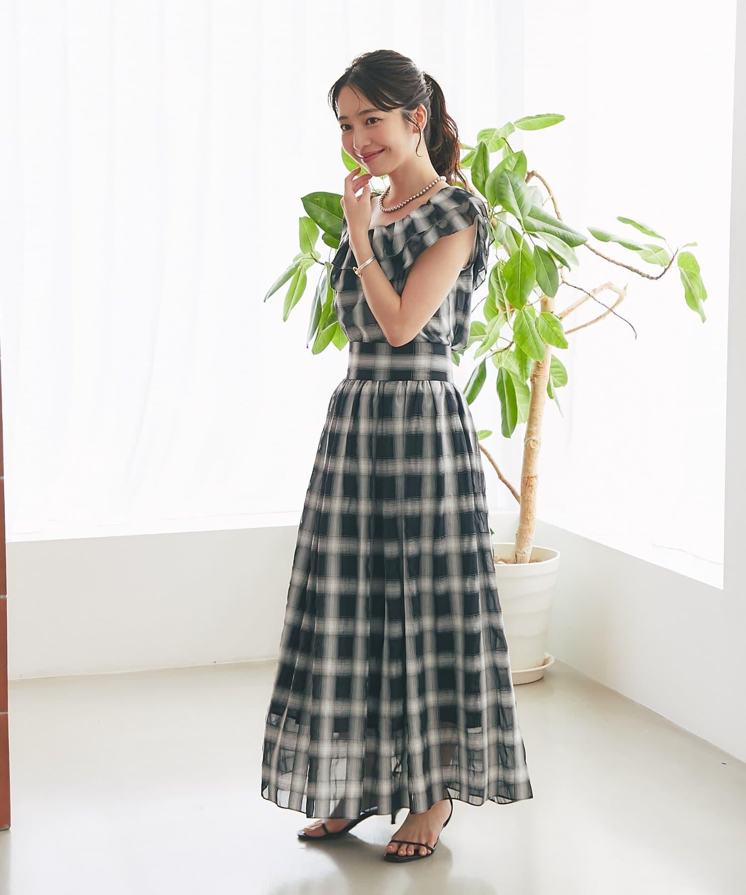 透明混色格紋聚攏長裙 (LBZ1052101A0001)