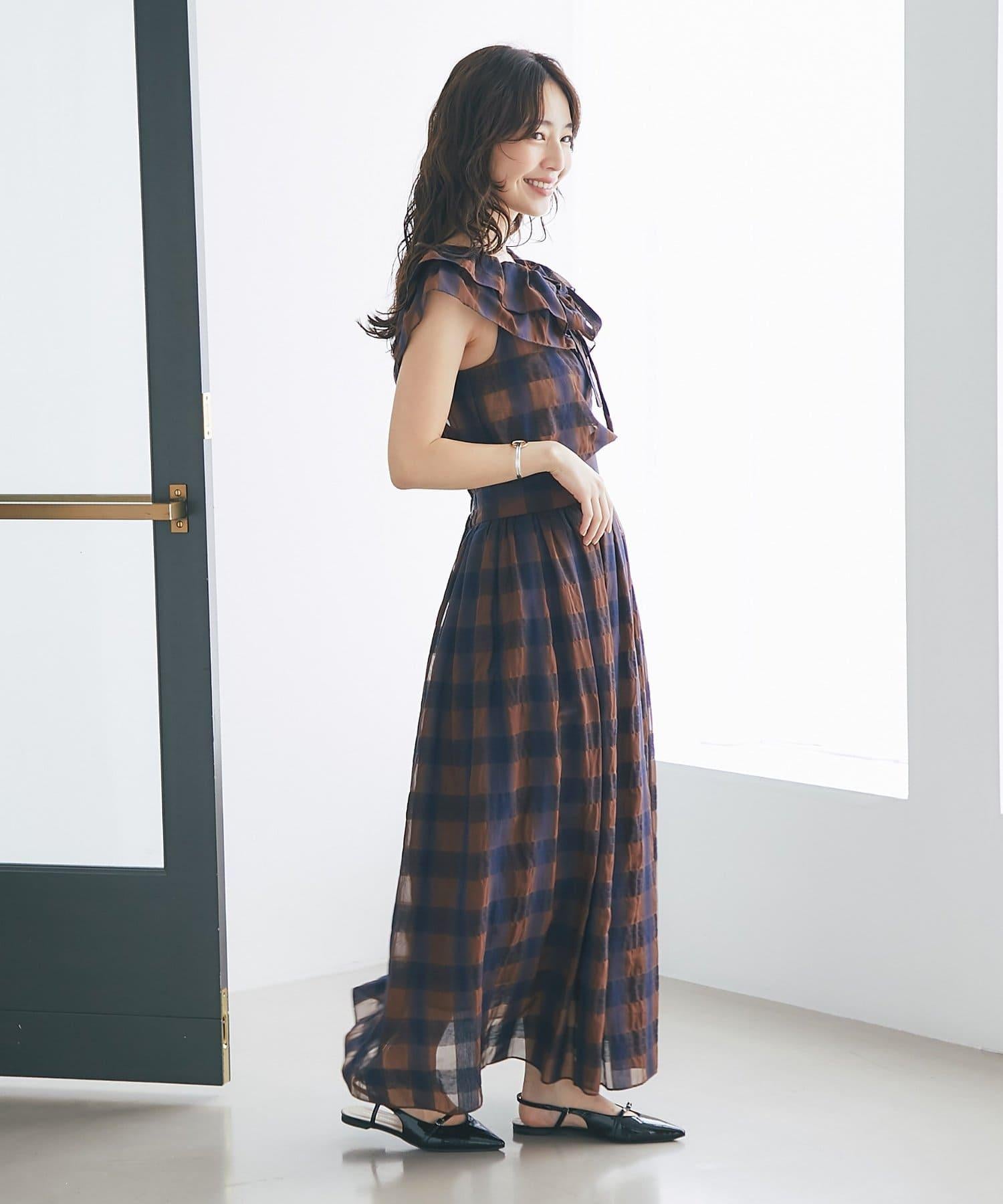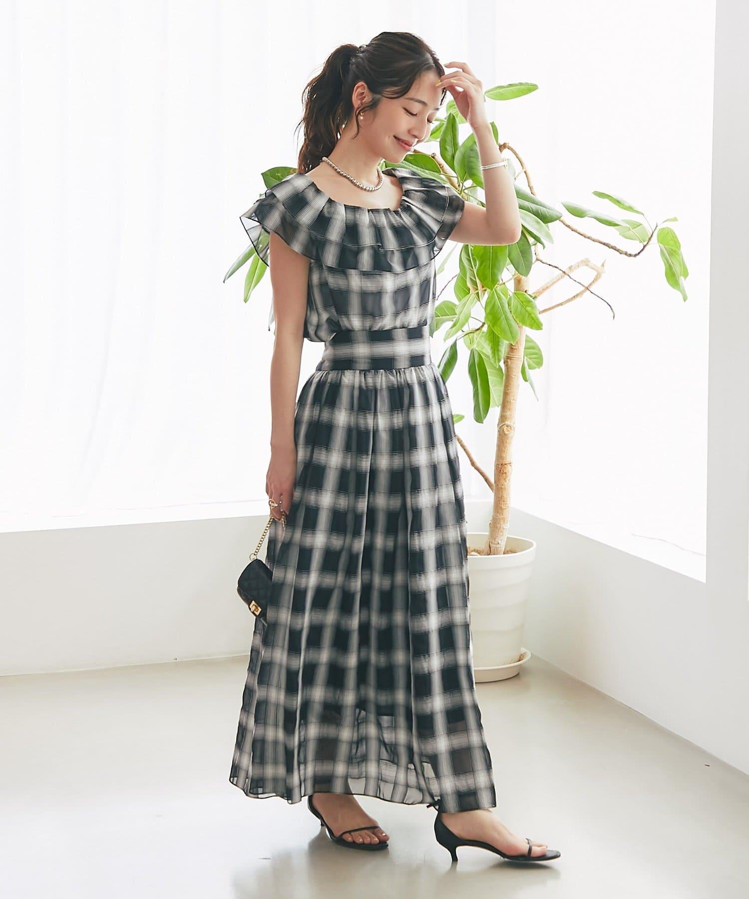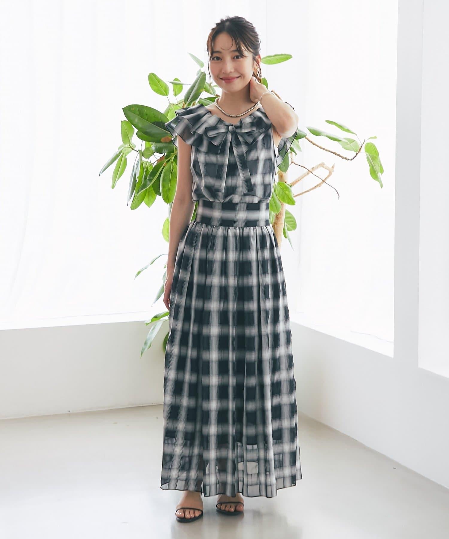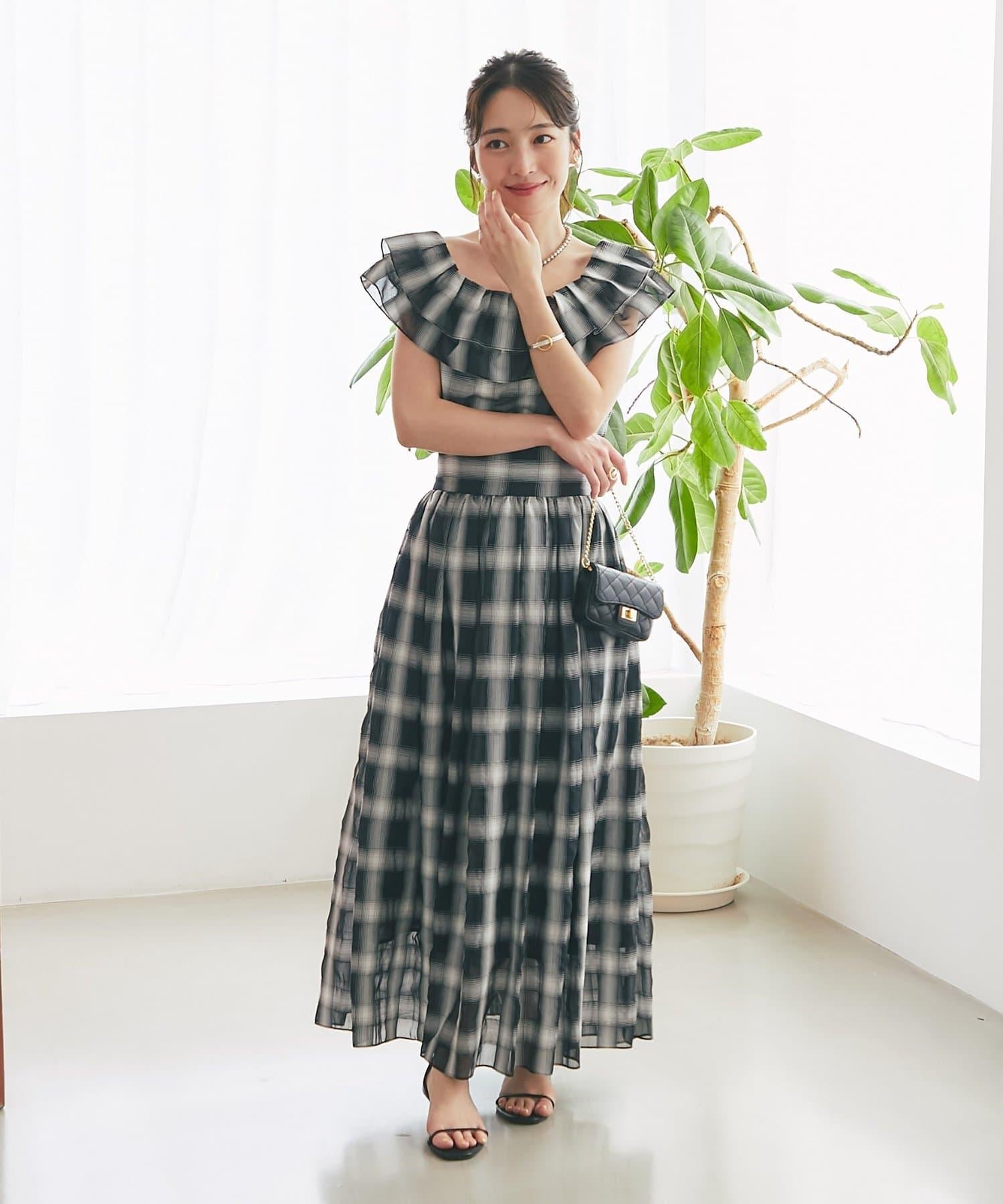 透明混色格紋聚攏長裙 (LBZ1052101A0001)