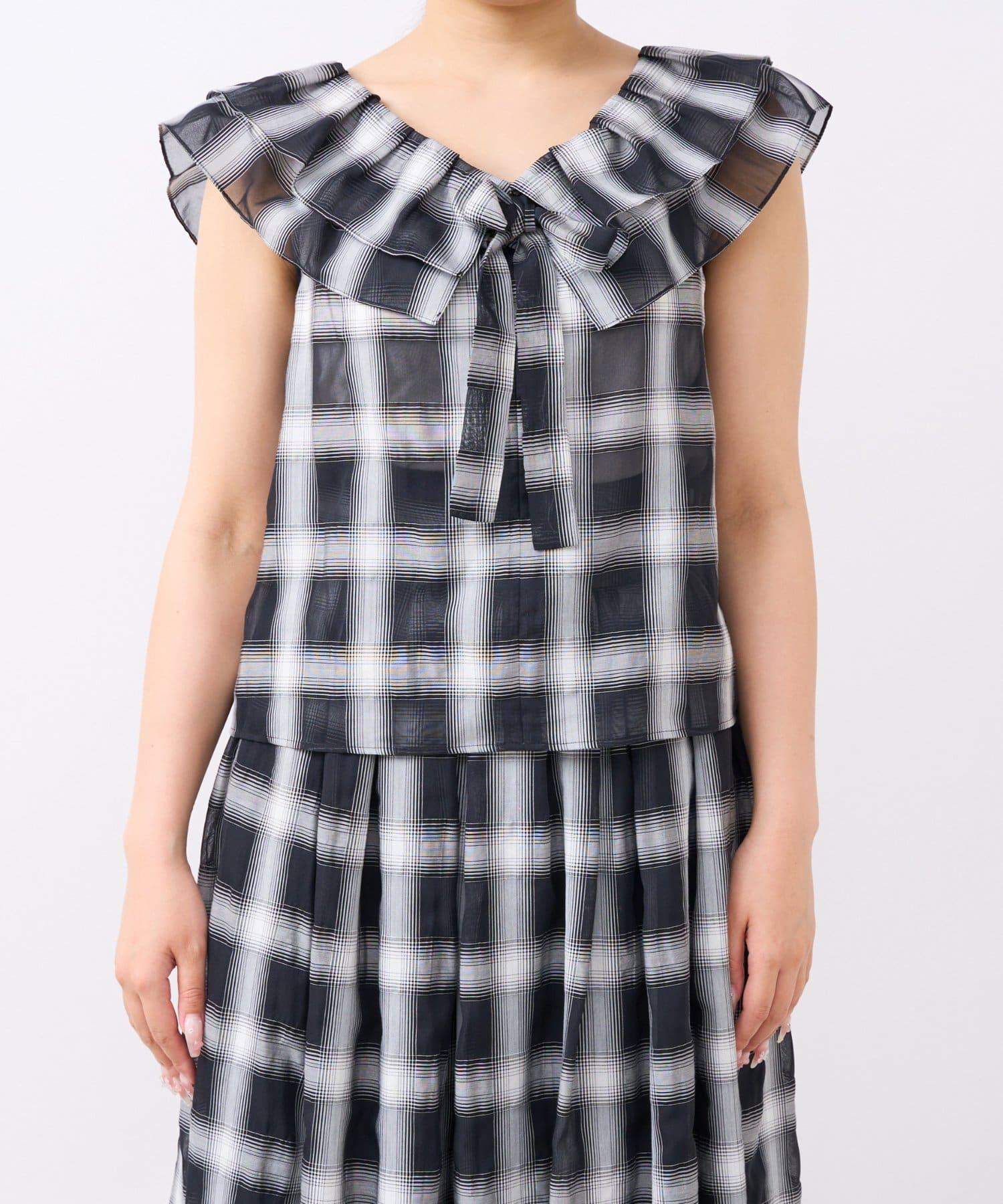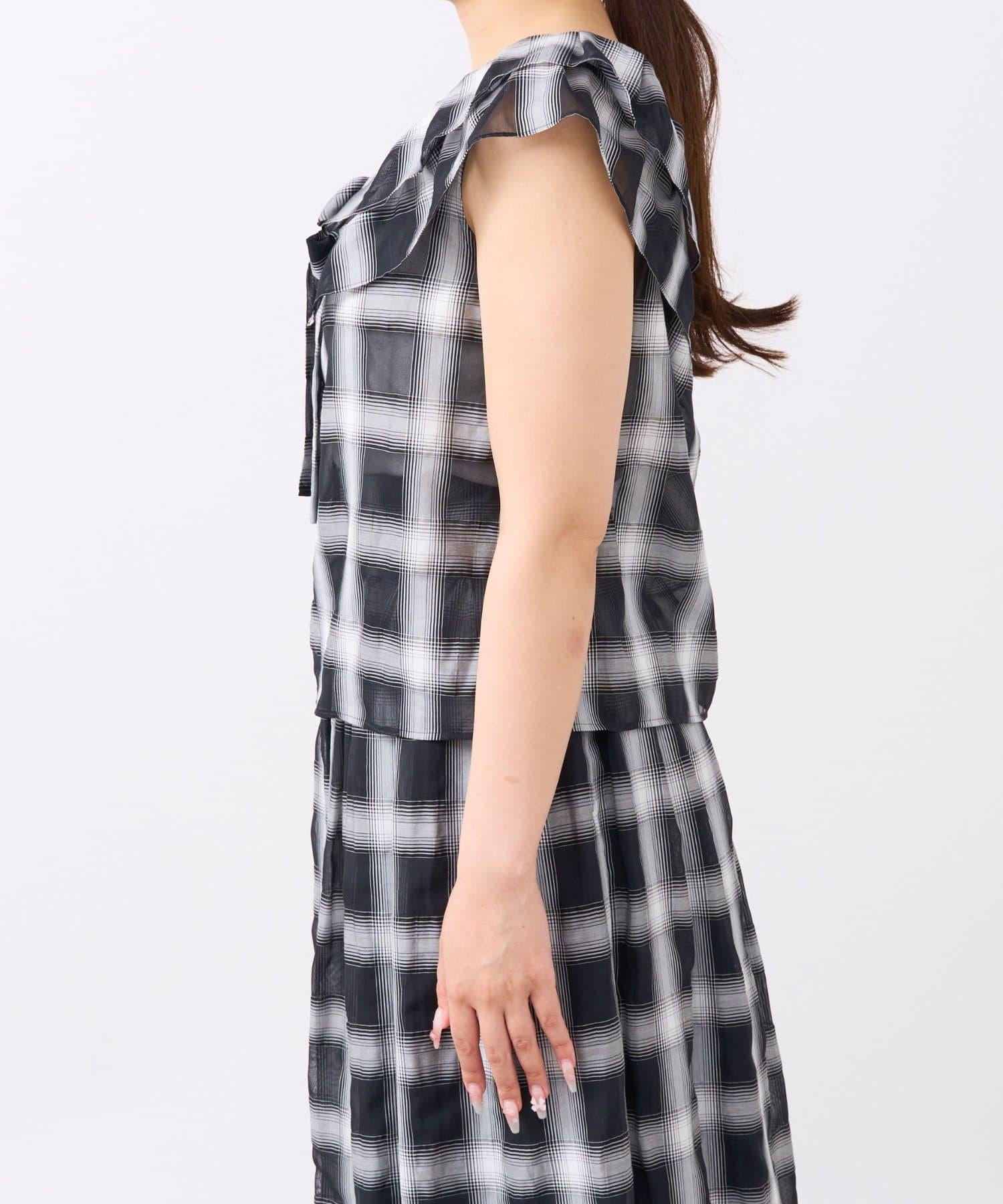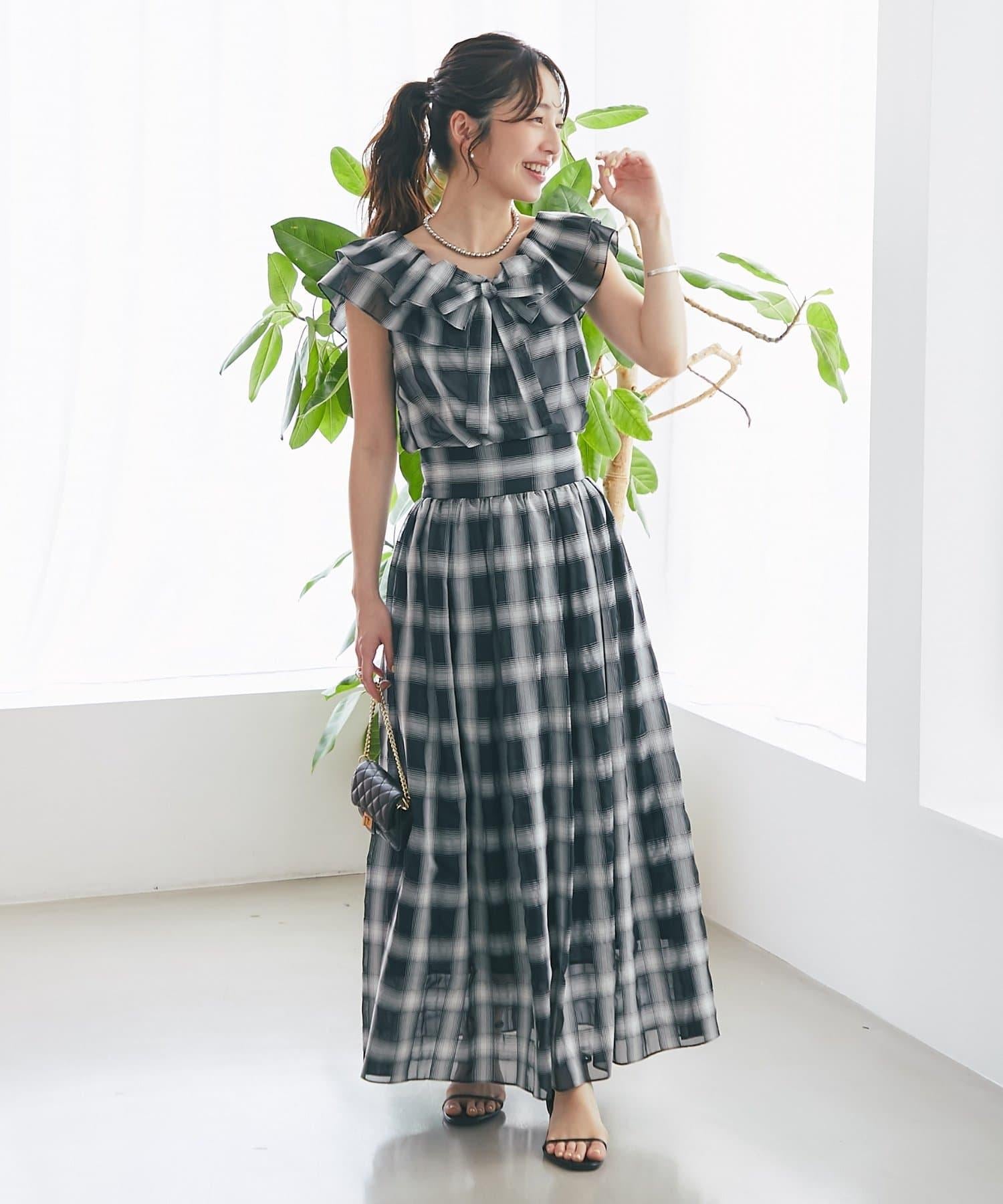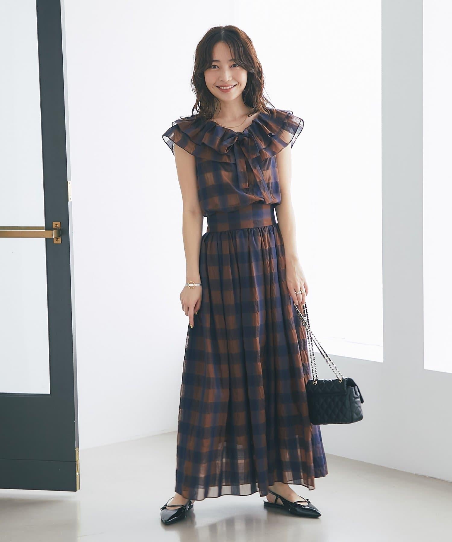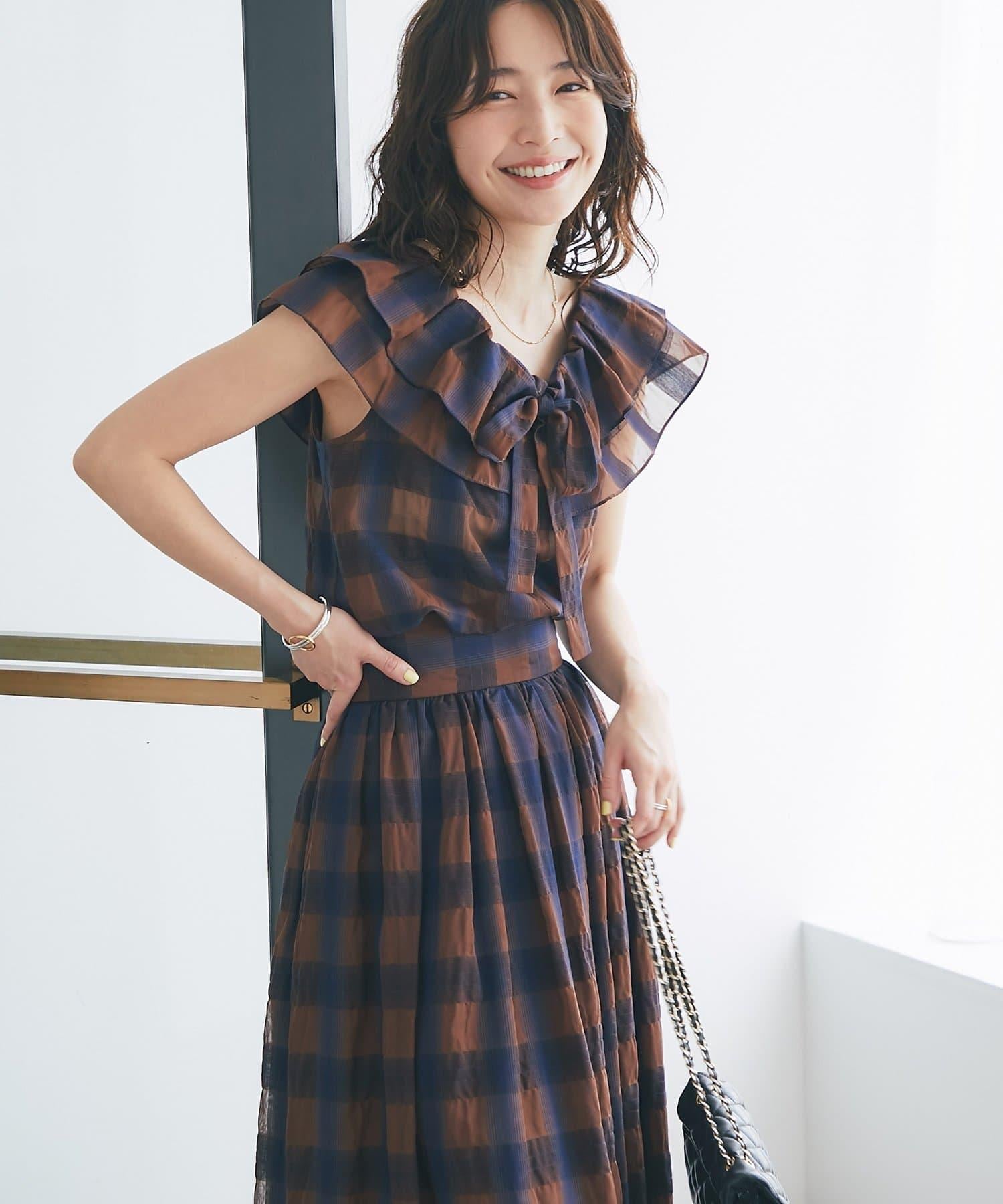透明混色格紋聚攏長裙 (LBZ1052101A0001)