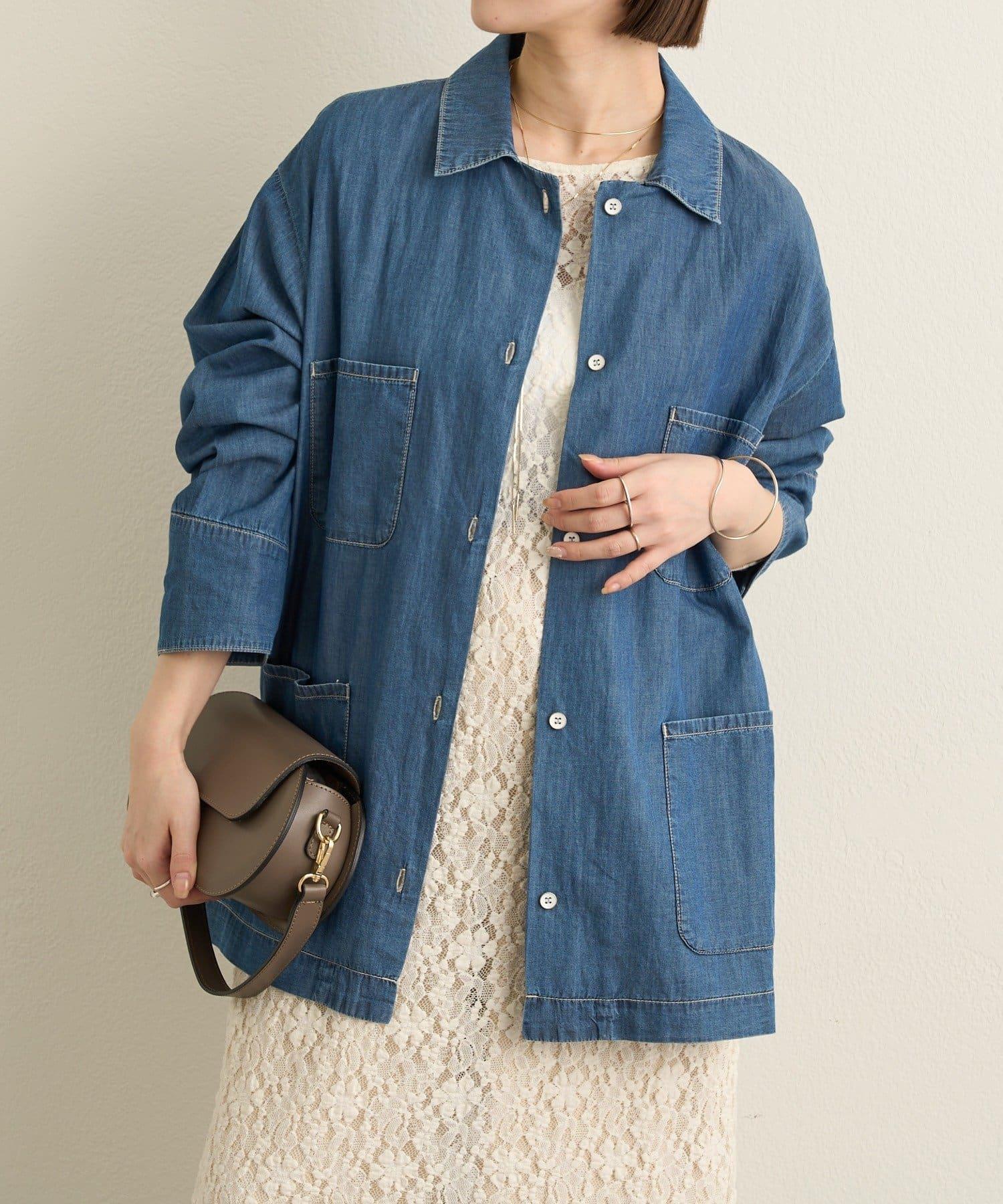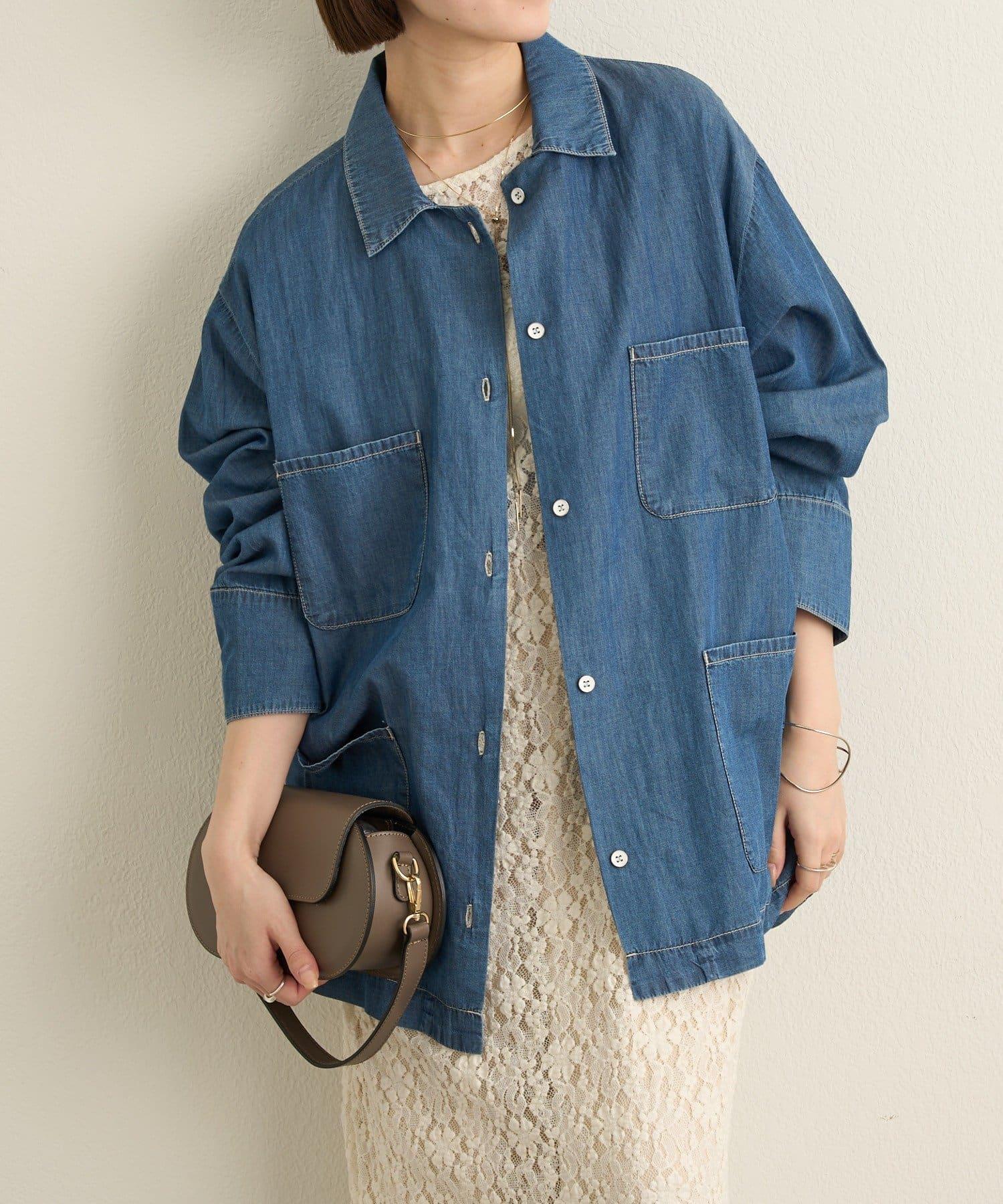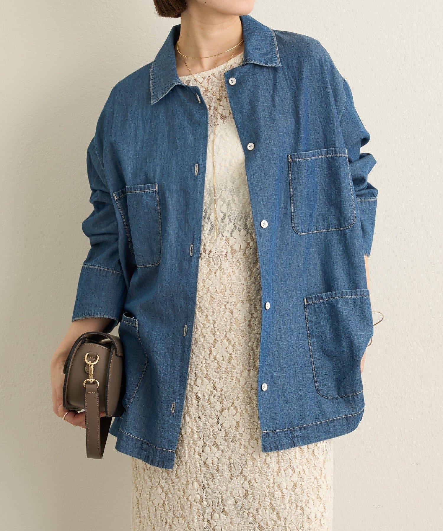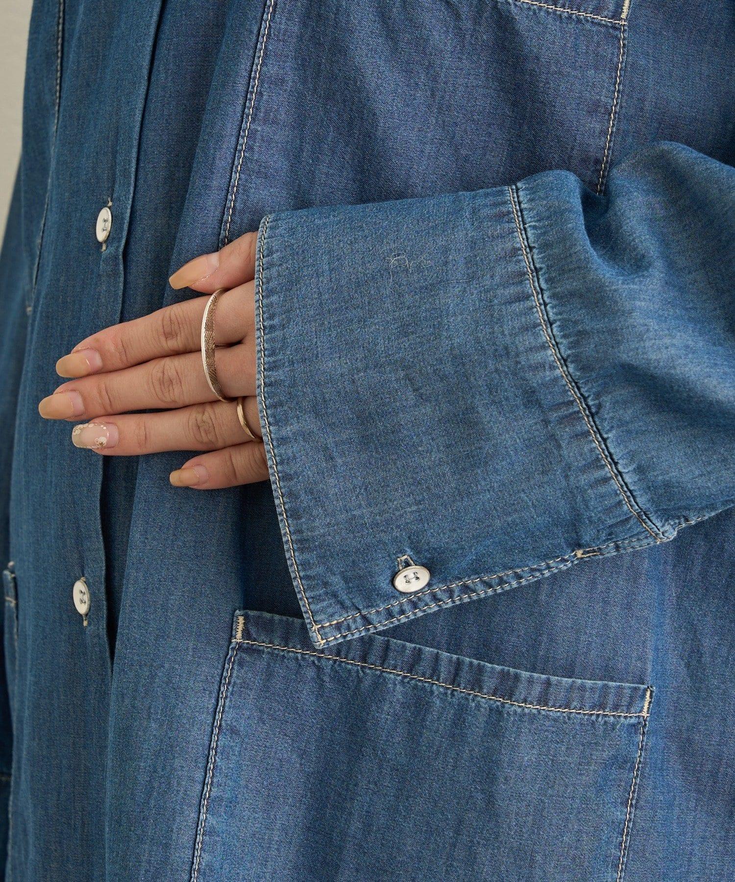 這款牛仔連體服很薄,可以像襯衫一樣穿著。