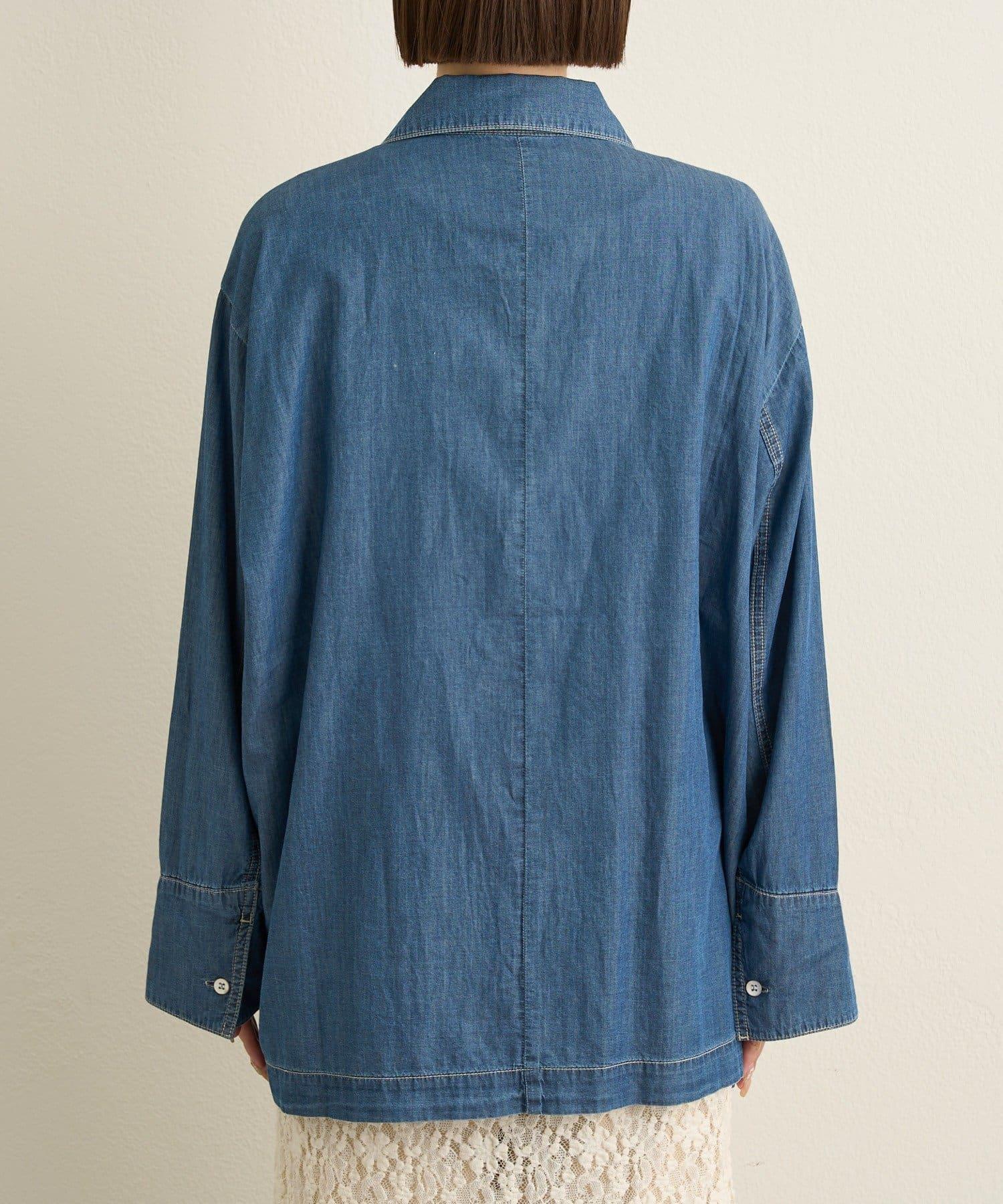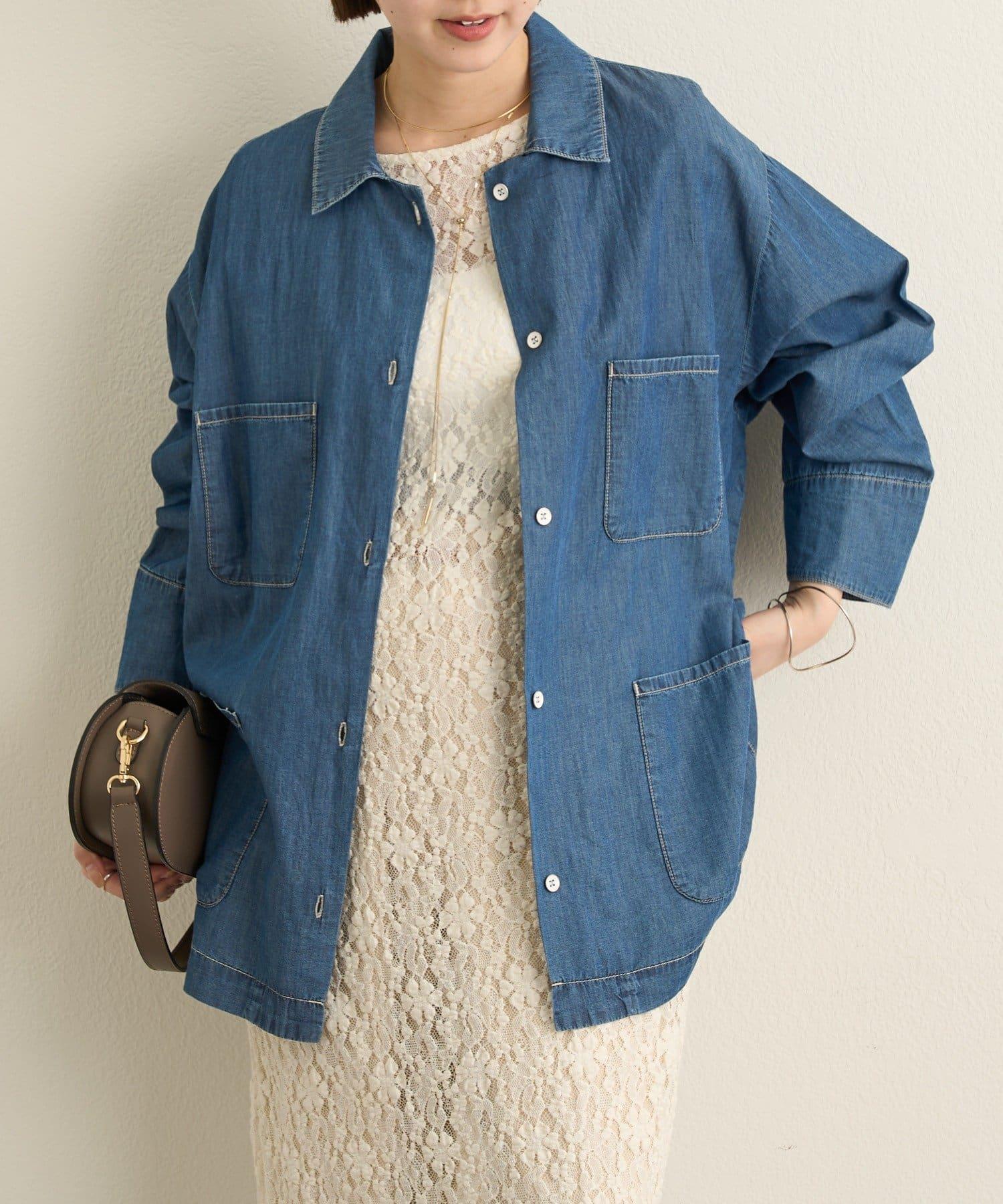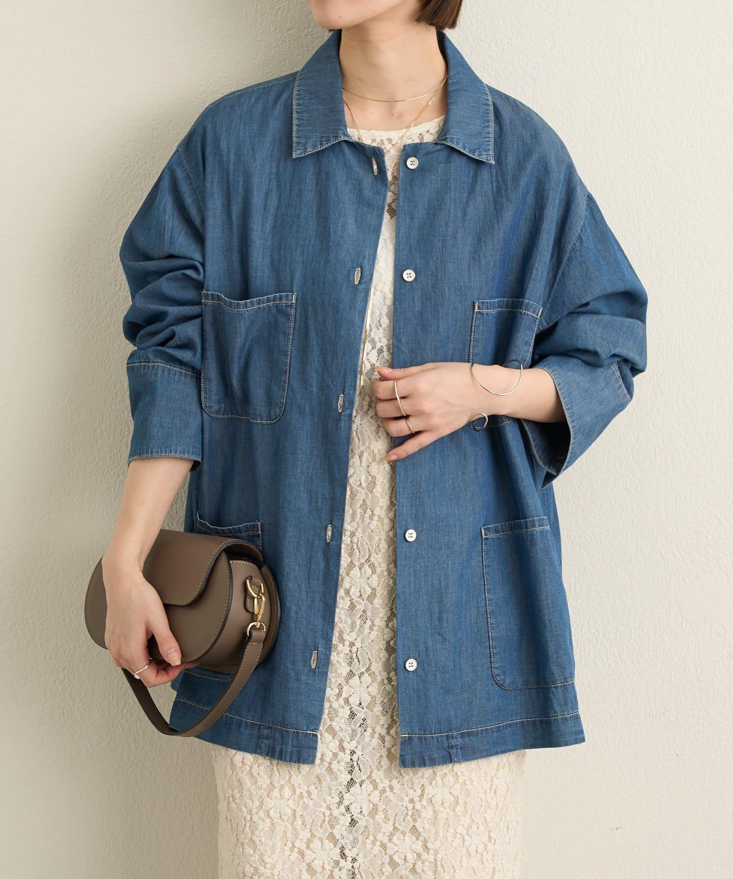 這款牛仔連體服很薄,可以像襯衫一樣穿著。