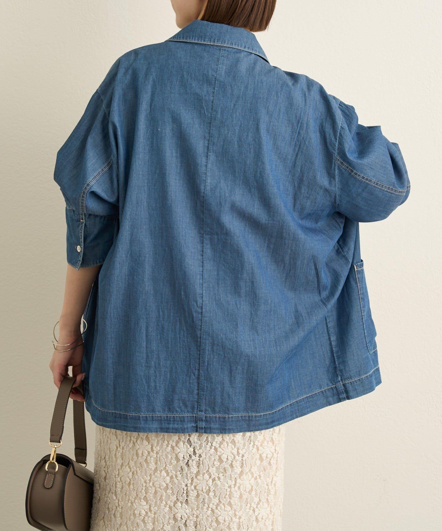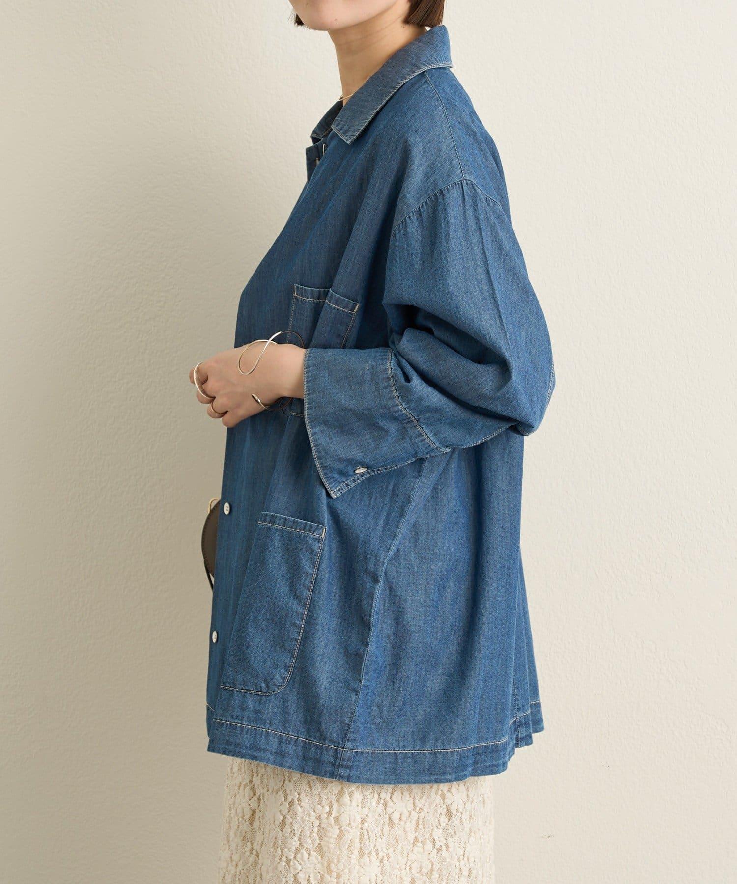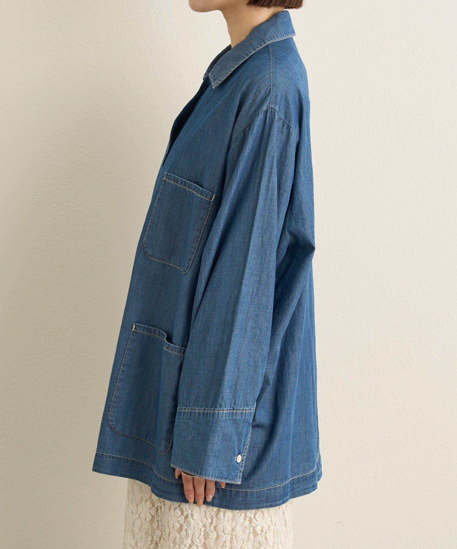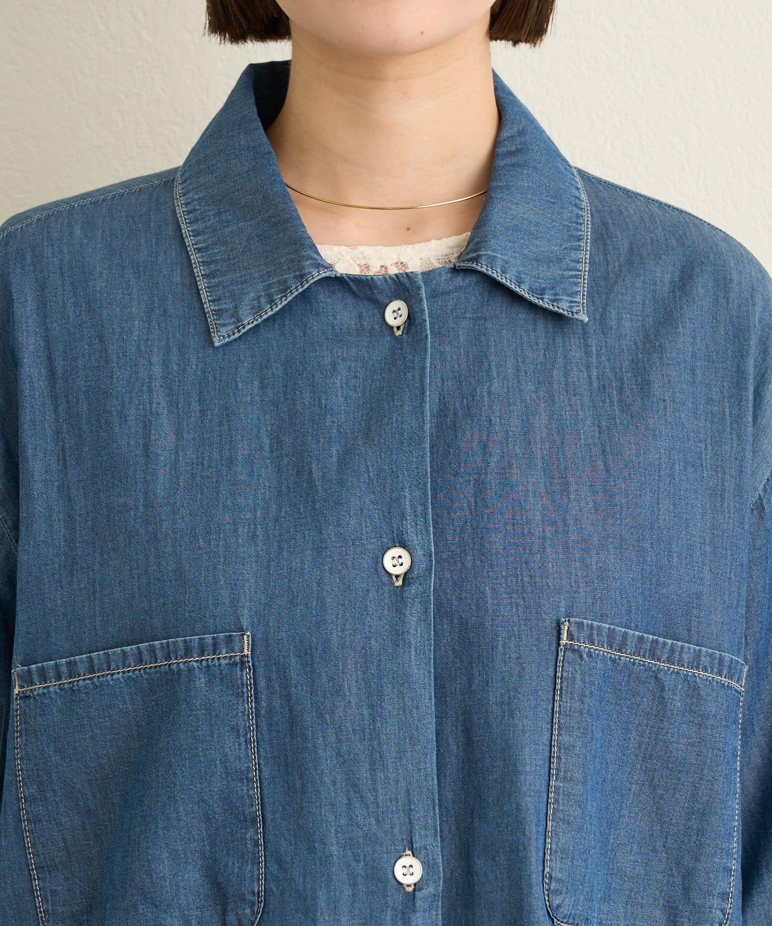這款牛仔連體服很薄,可以像襯衫一樣穿著。