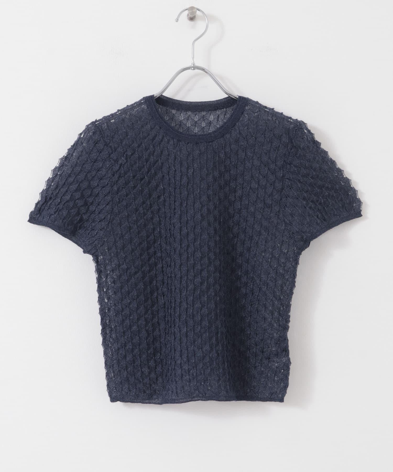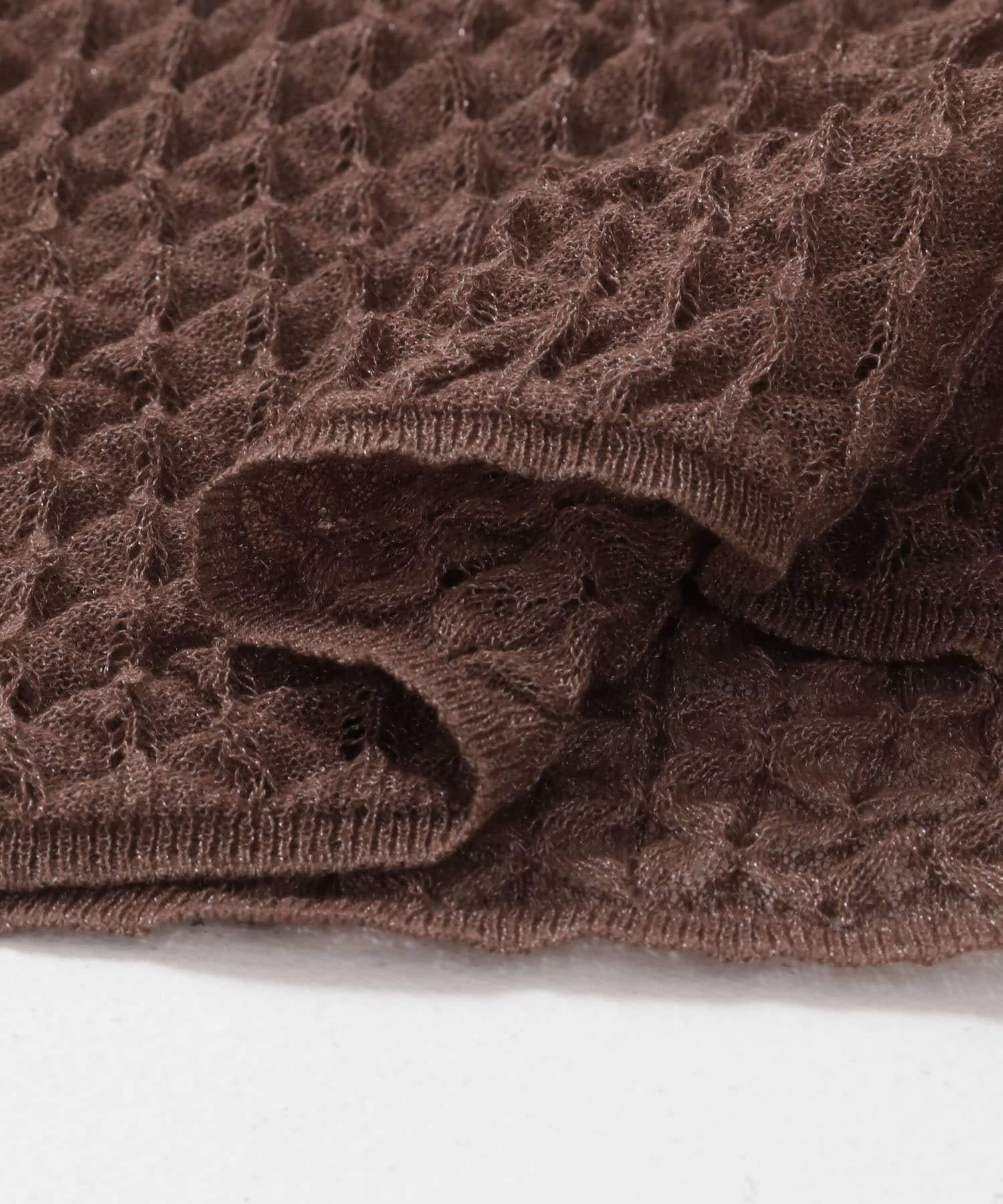 這款針織衫結構緊湊,表面呈麻點狀,採用透視針織面料。針織物的彈性設計使穿著時更有表面感。它不僅適用於主面,還可作為沙拉裙和吊帶裙的內層。