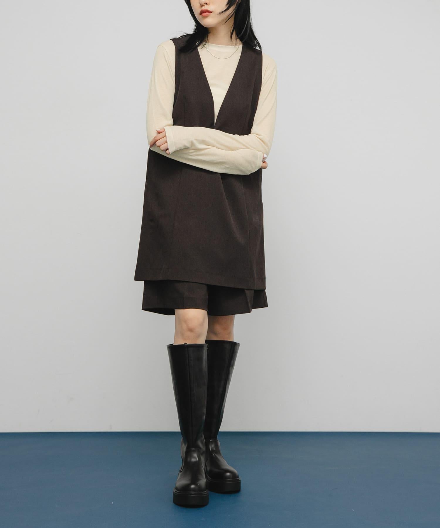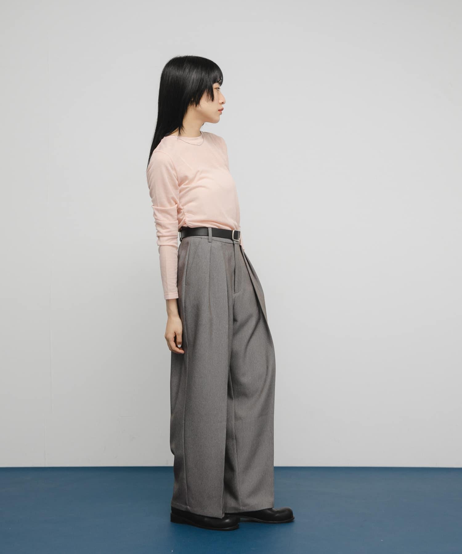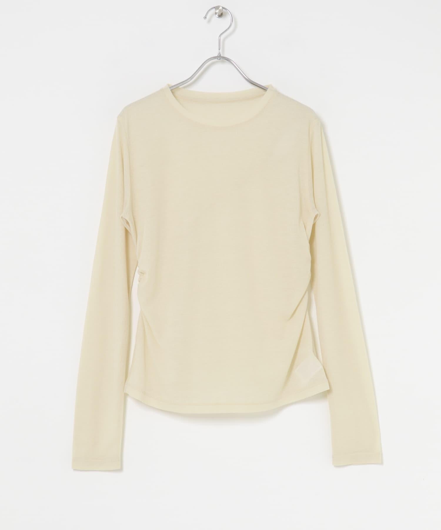 乍看之下,這款剪裁縫製的服裝就像一件簡單的長 T 恤,但適度透明的肋部設計讓它看起來更有女人味。背部的款式設計奇特,肩部的鏤空設計巧妙地展現了肌膚。這是一款既可作為內搭又可作為主衣的單品。