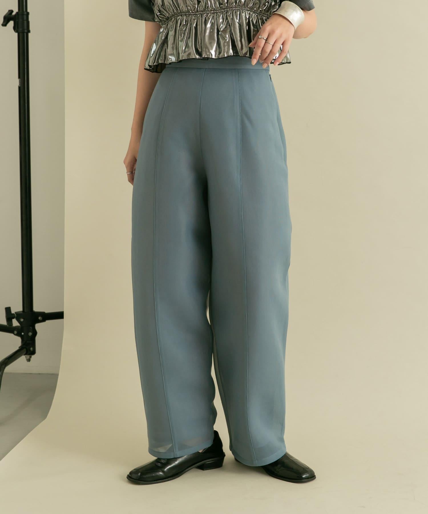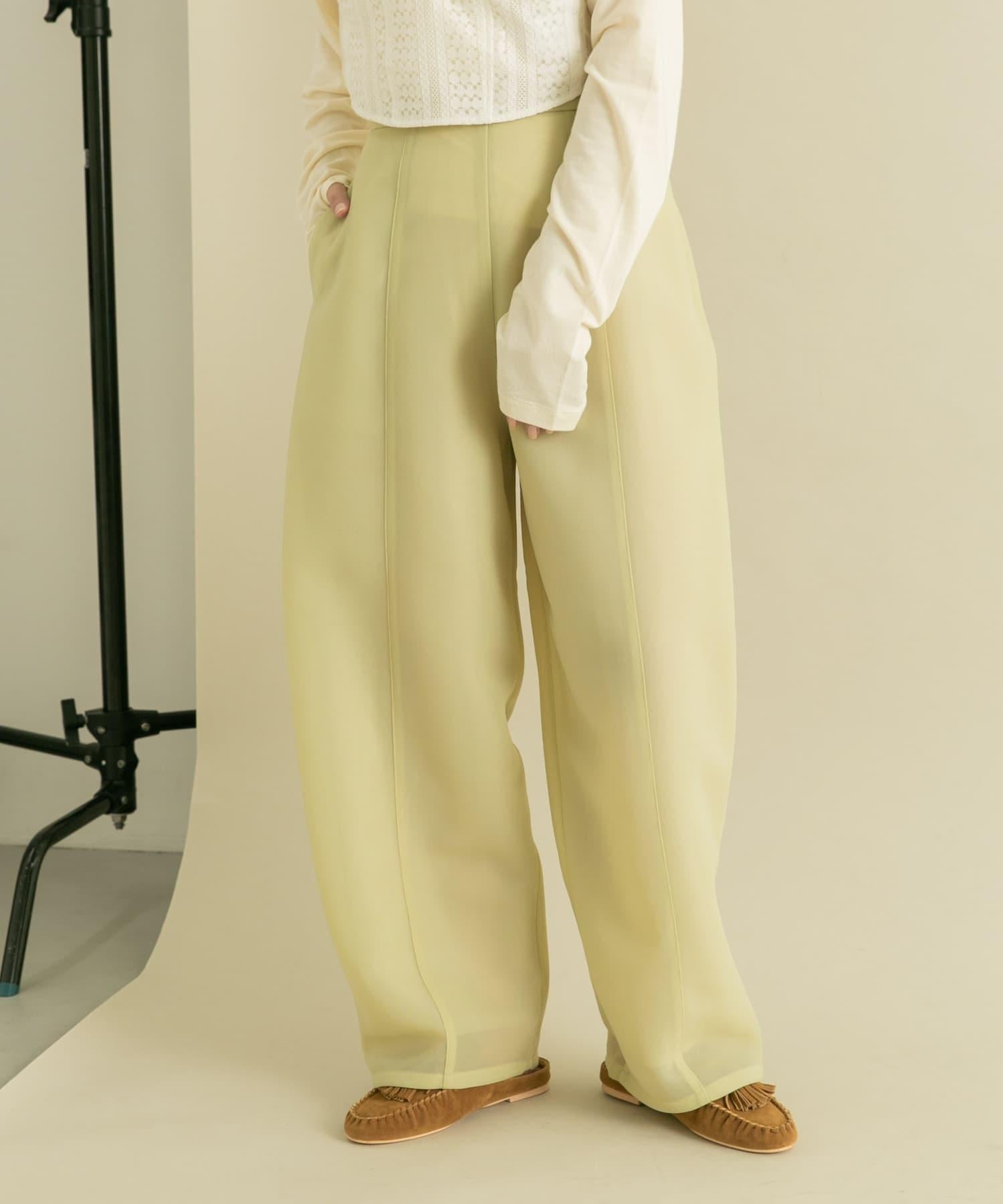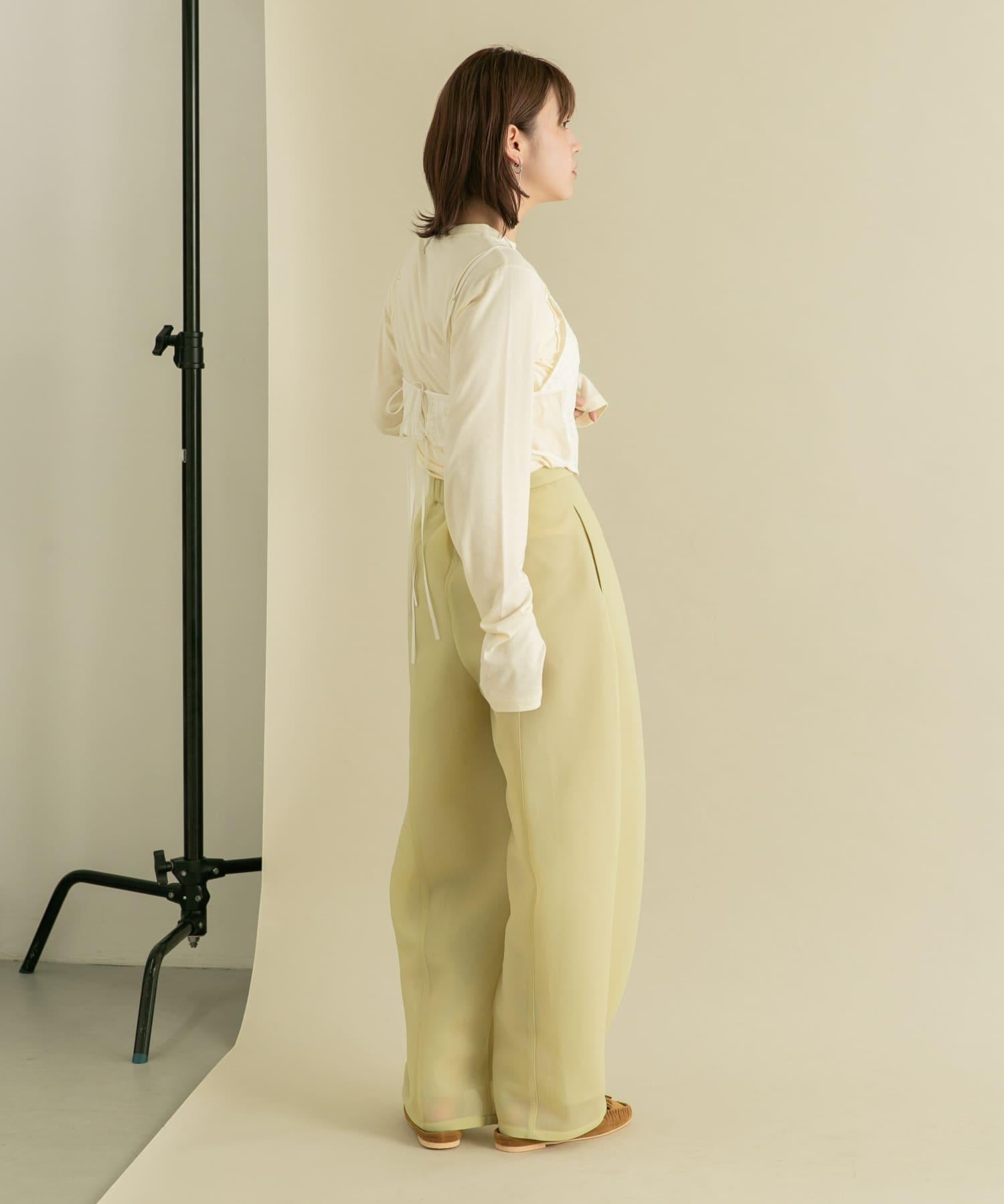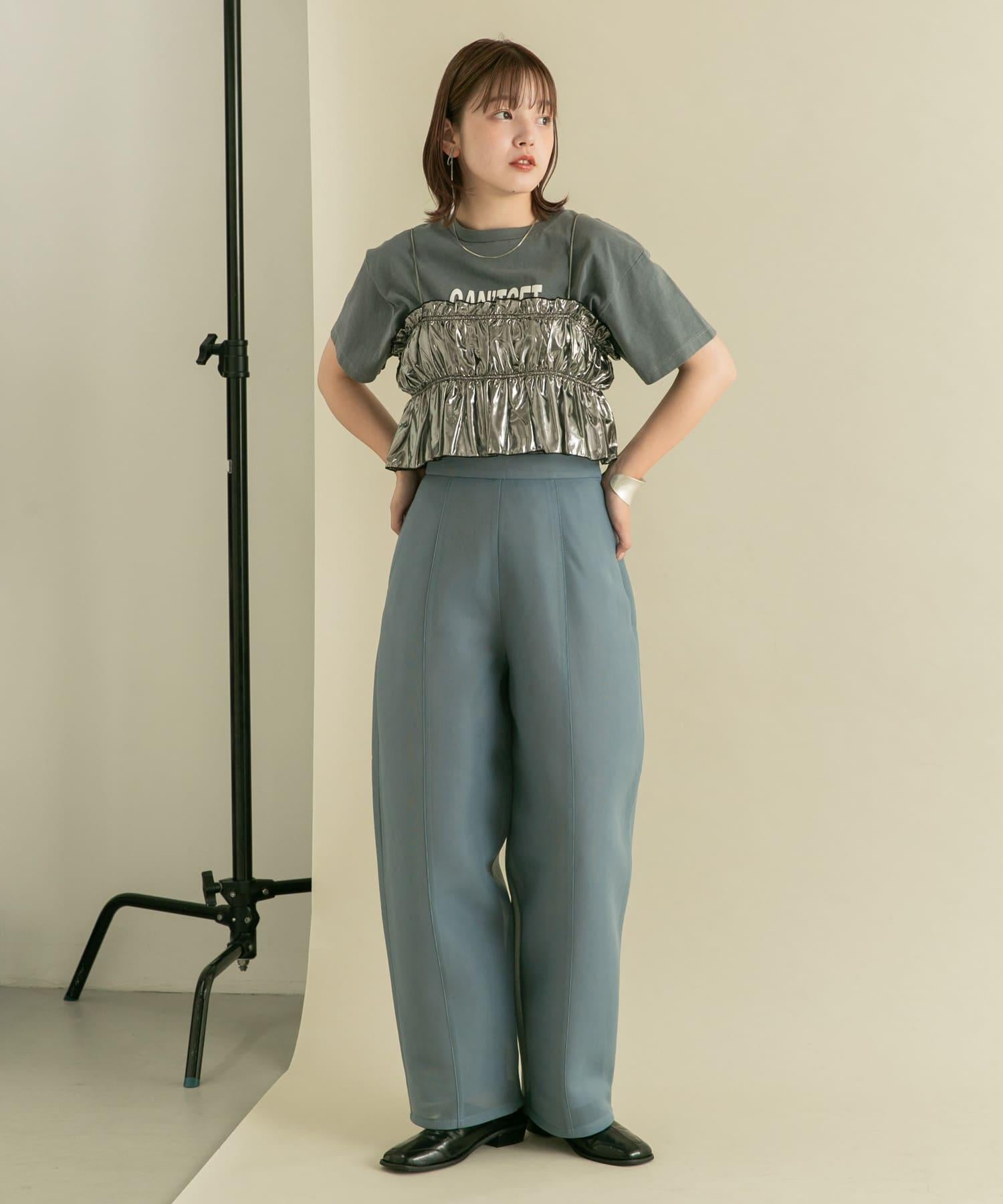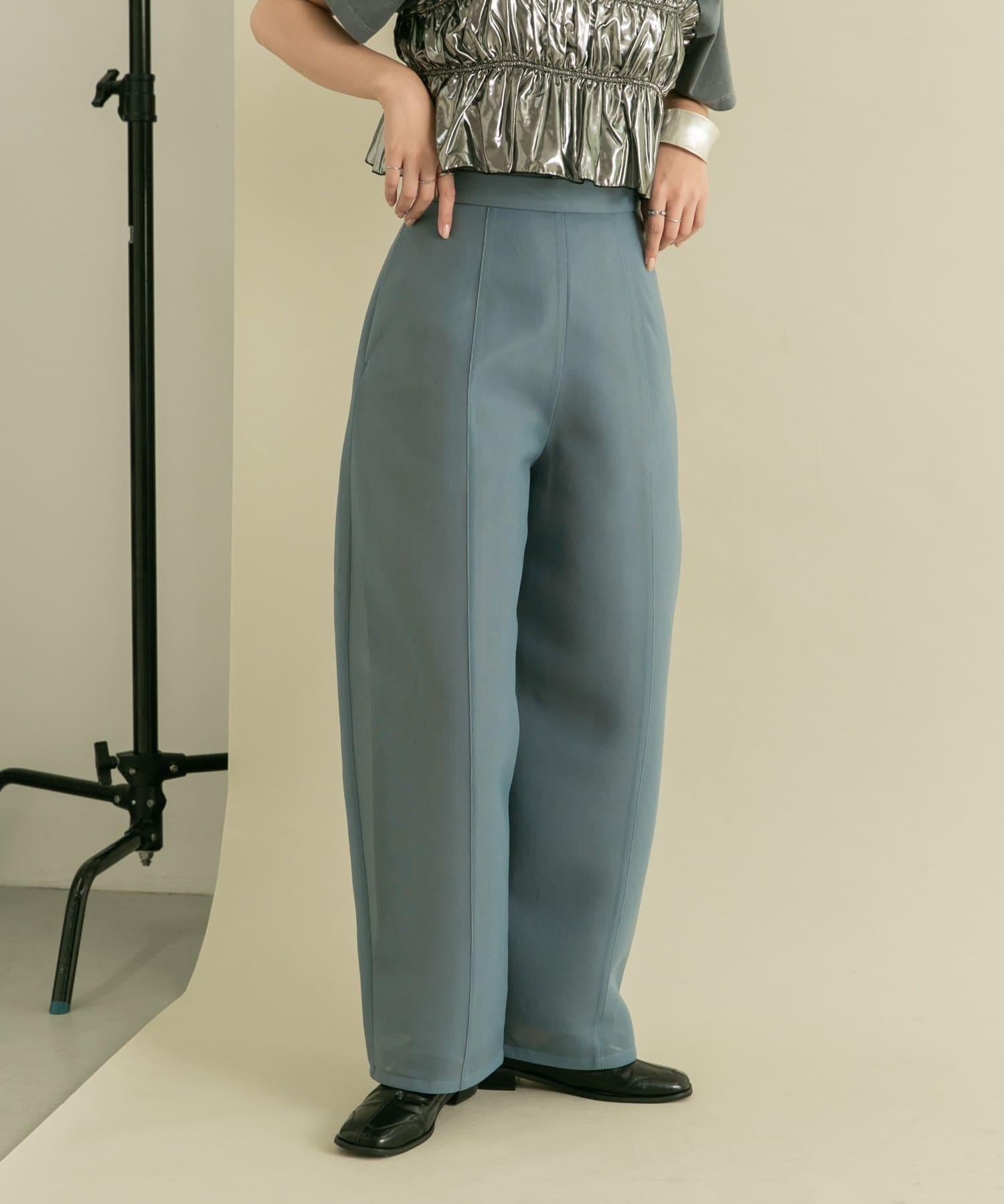 長褲具有瓦楞紙板材料獨有的良好回彈性。透薄的質地使其更加輕盈。自然彈力和背部鬆緊設計帶來舒適感。繭形細節的剪裁是基本款 TEE 的絕佳搭配。