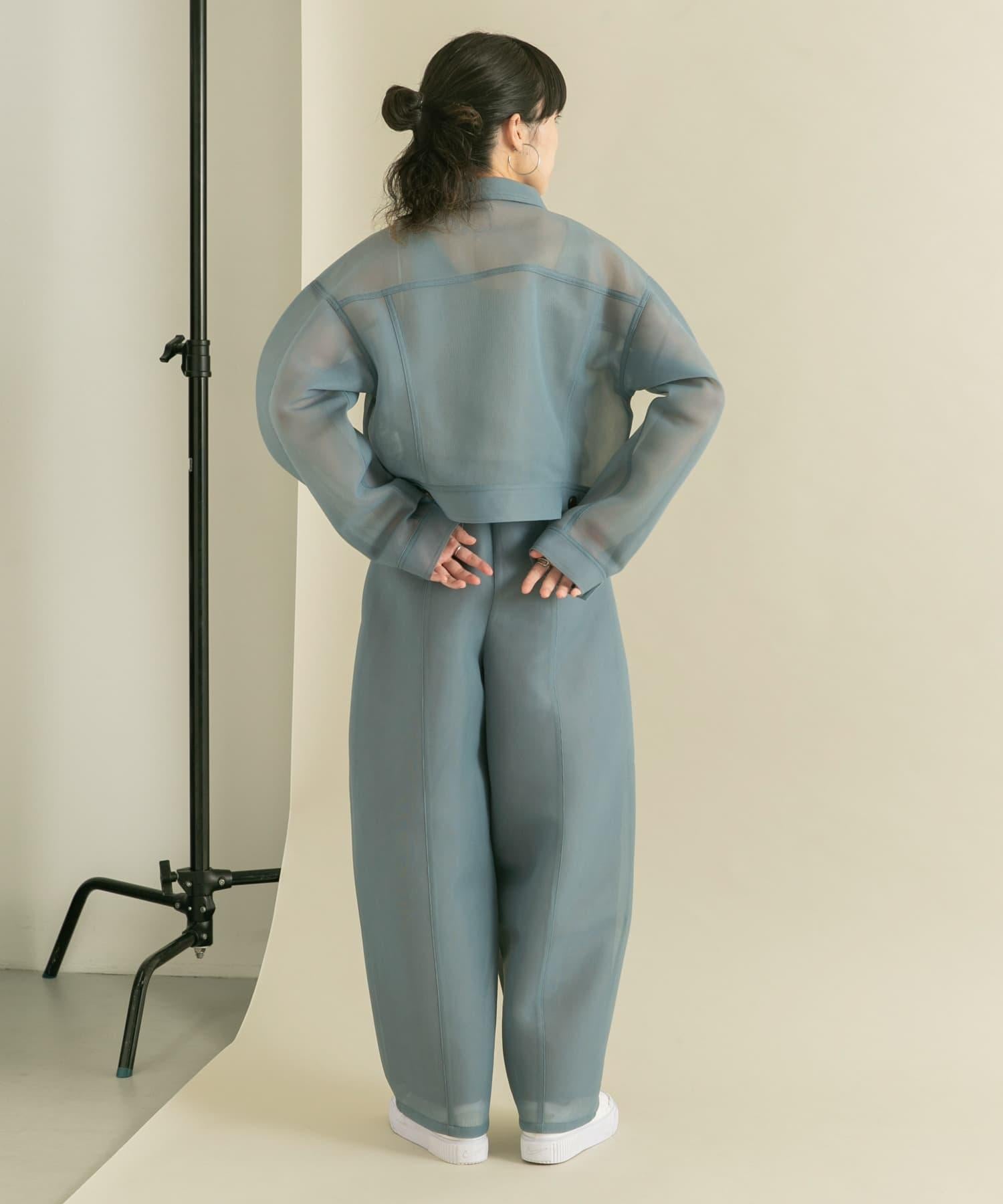 可搭配小巧的上衣和短款單品,使整體效果更加均衡。也可與同材質的薄紙板夾克(KB46-27R040)搭配穿著。