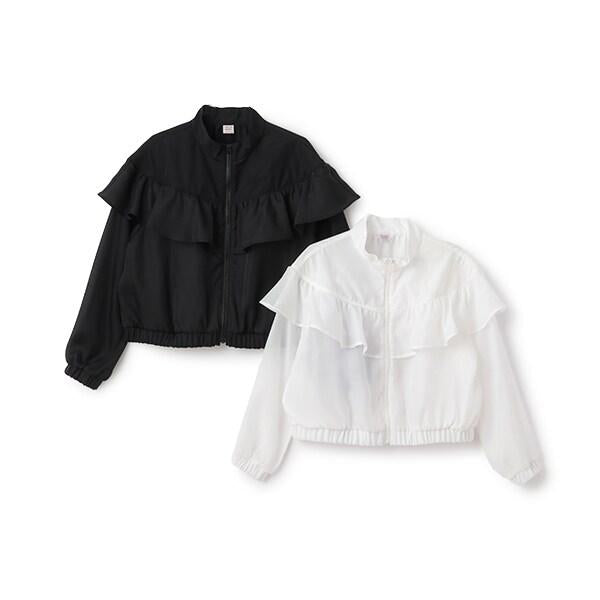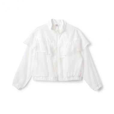這款短罩衫的荷葉邊由兩種不同的材料製成,外觀輕盈。