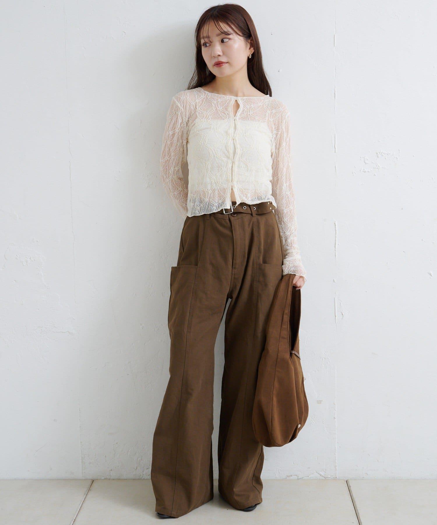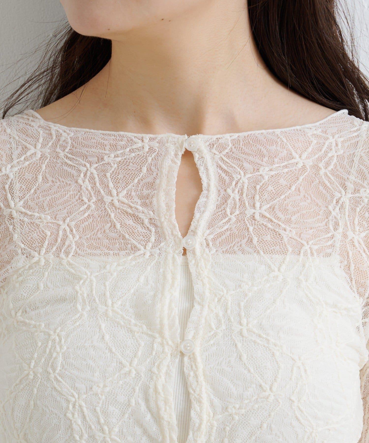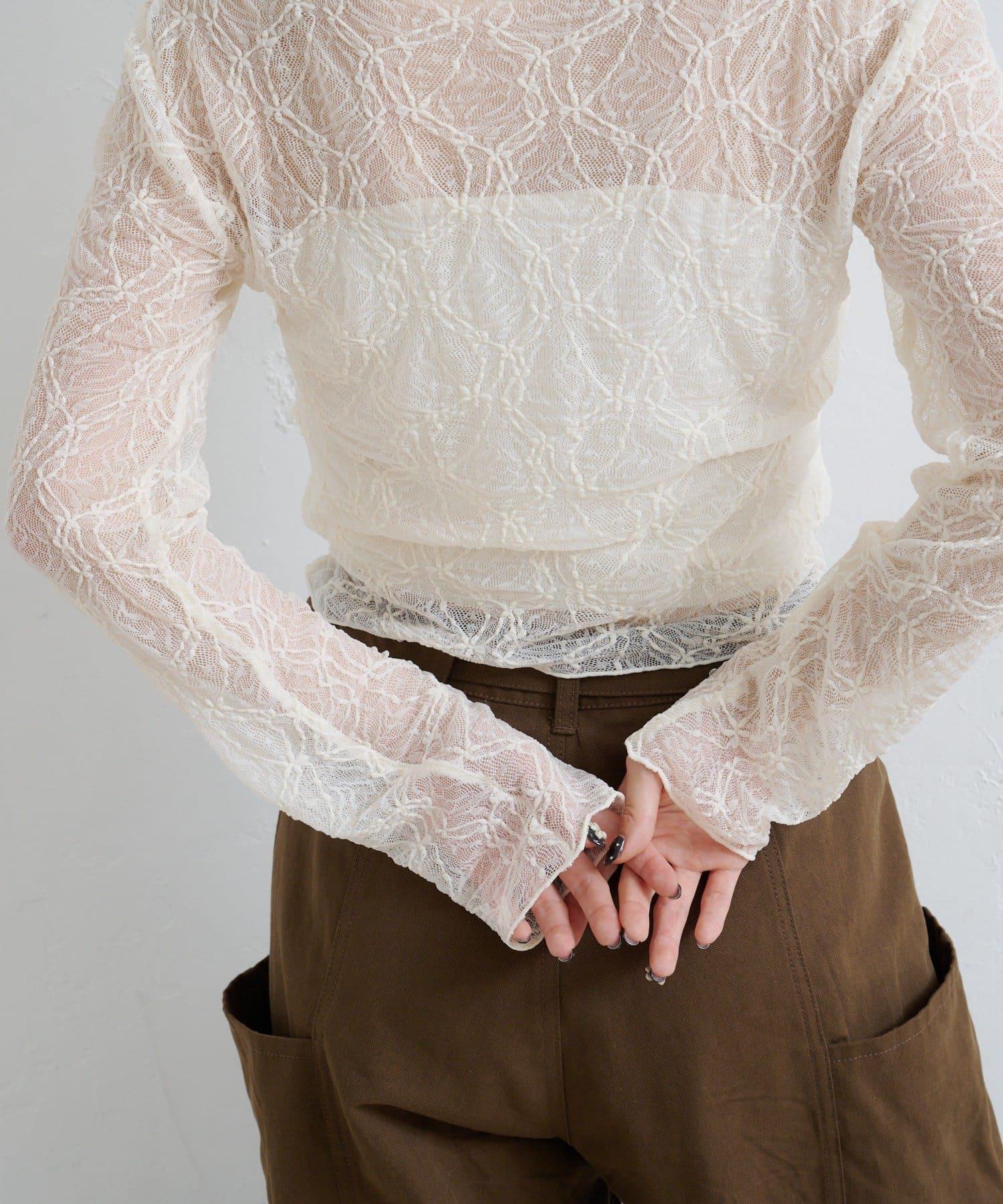 這款雙面透視開衫採用精緻的蕾絲面料,盡顯女性柔美氣質。