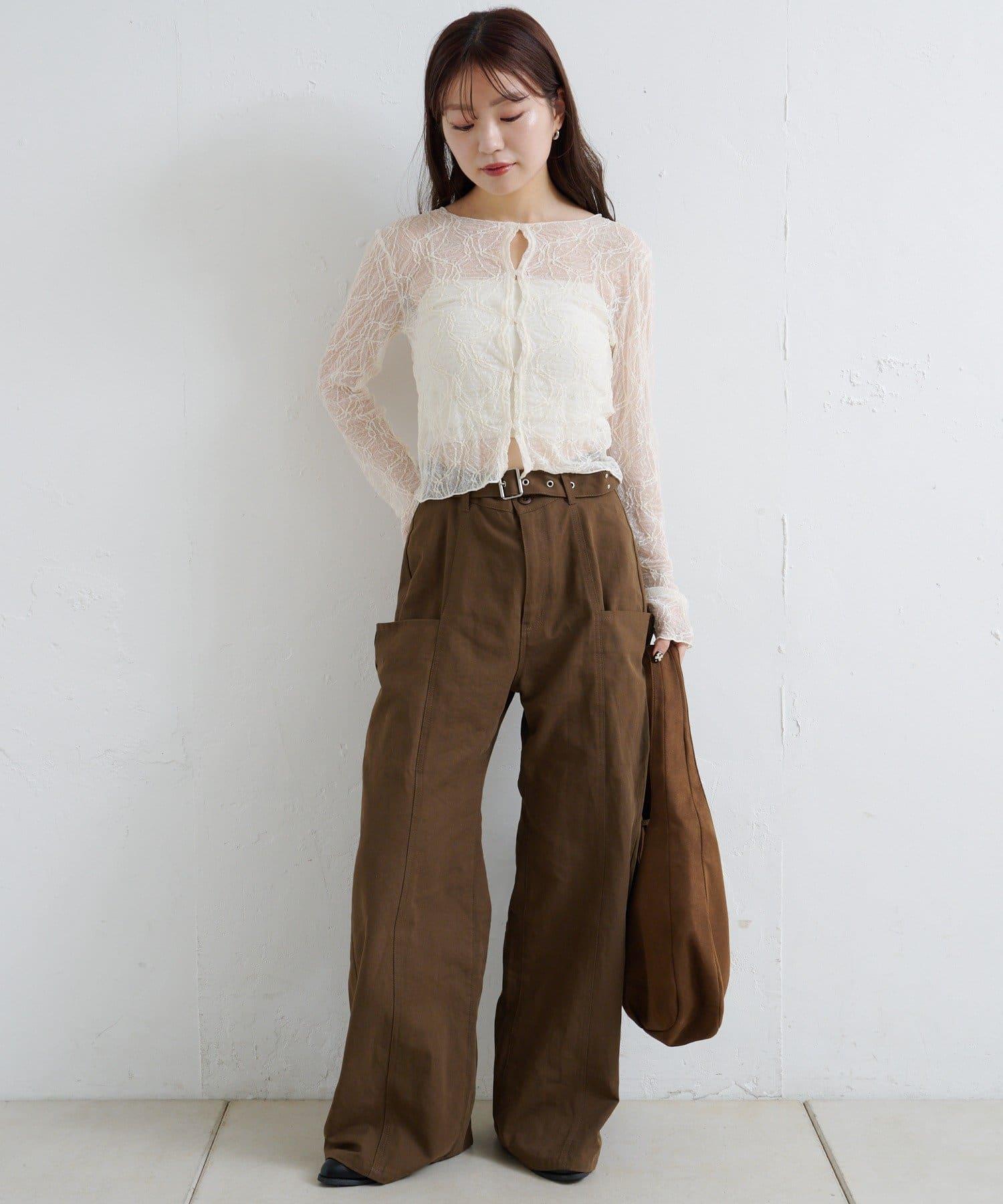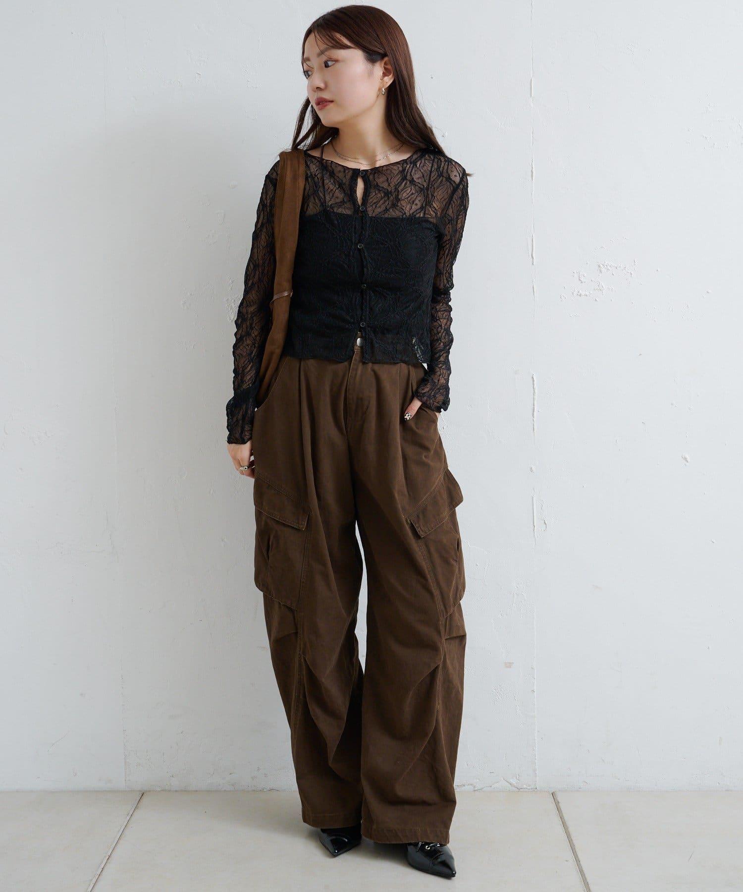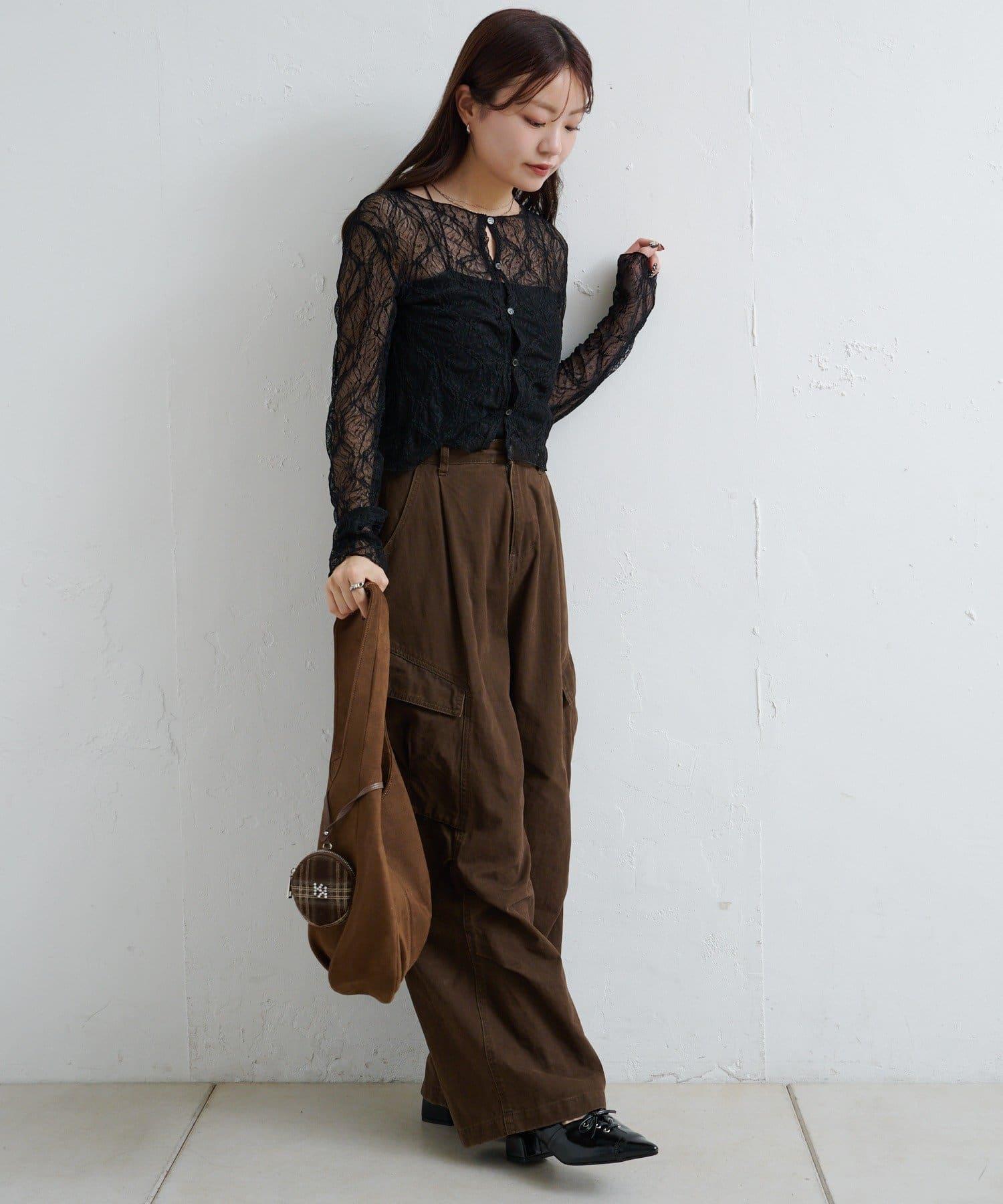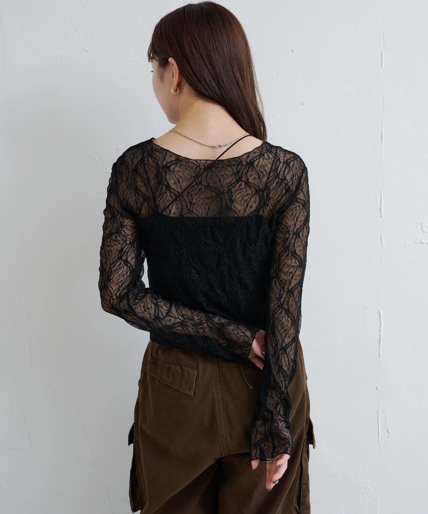 這款雙面透視開衫採用精緻的蕾絲面料,盡顯女性柔美氣質。