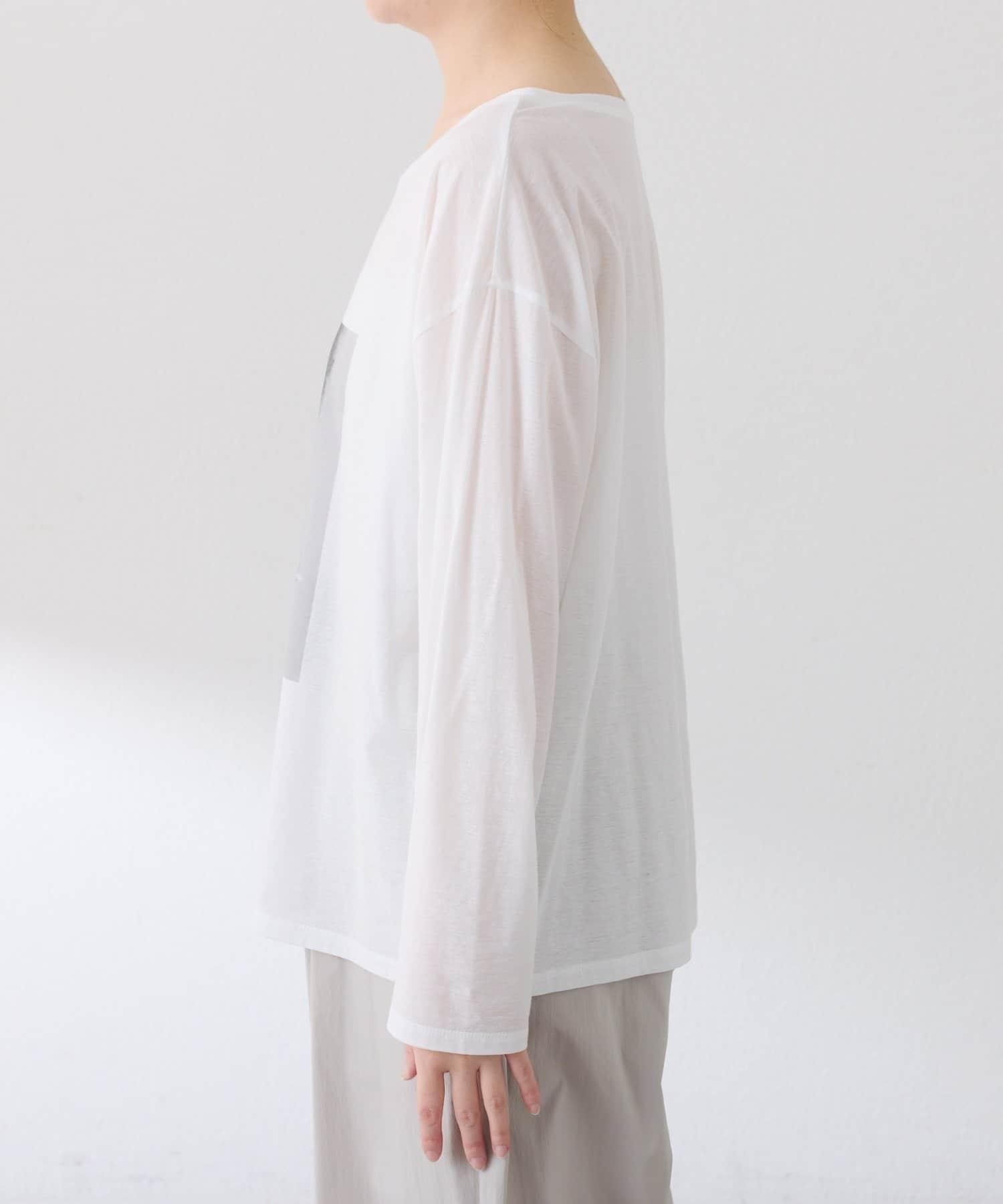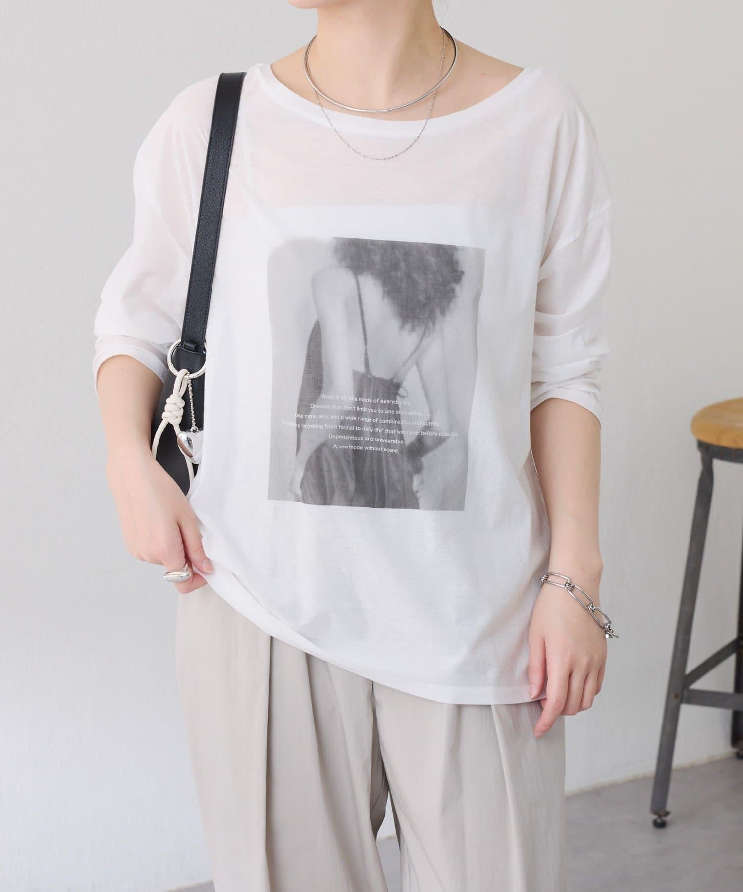 透視蝙蝠袖照片圖案長袖T恤