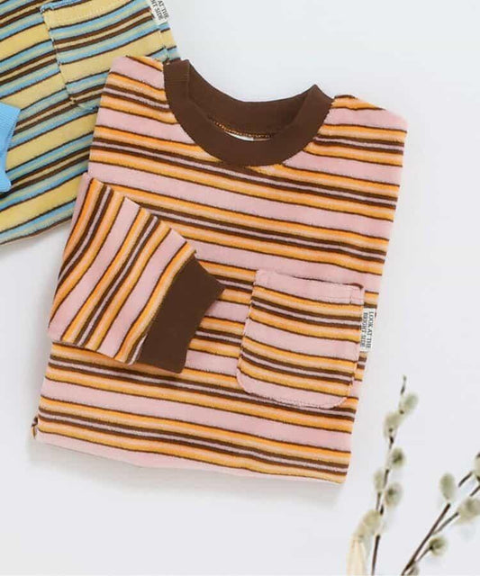 BREEZE 的長袖 T 恤 "Sheer Sleeve Switch Striped T 恤 "因價格實惠、款式多樣而廣受歡迎!許多設計都可用於上學和上學期間,具有極佳的耐磨性!