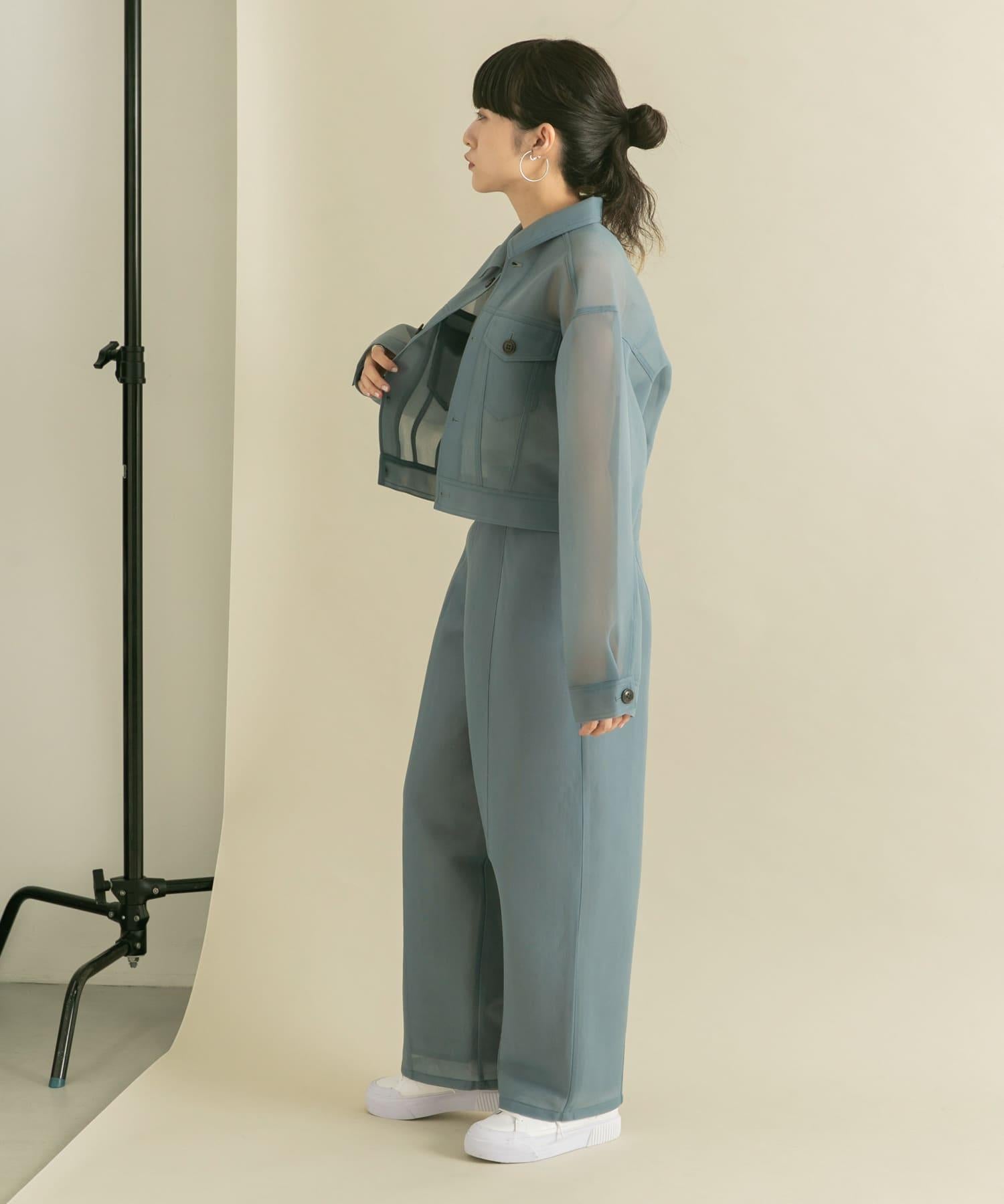 這款單品的透明感使其在搭配印花 T 恤時更顯休閒。也可與同材質的薄紙板長褲(KB46-24R160)搭配。