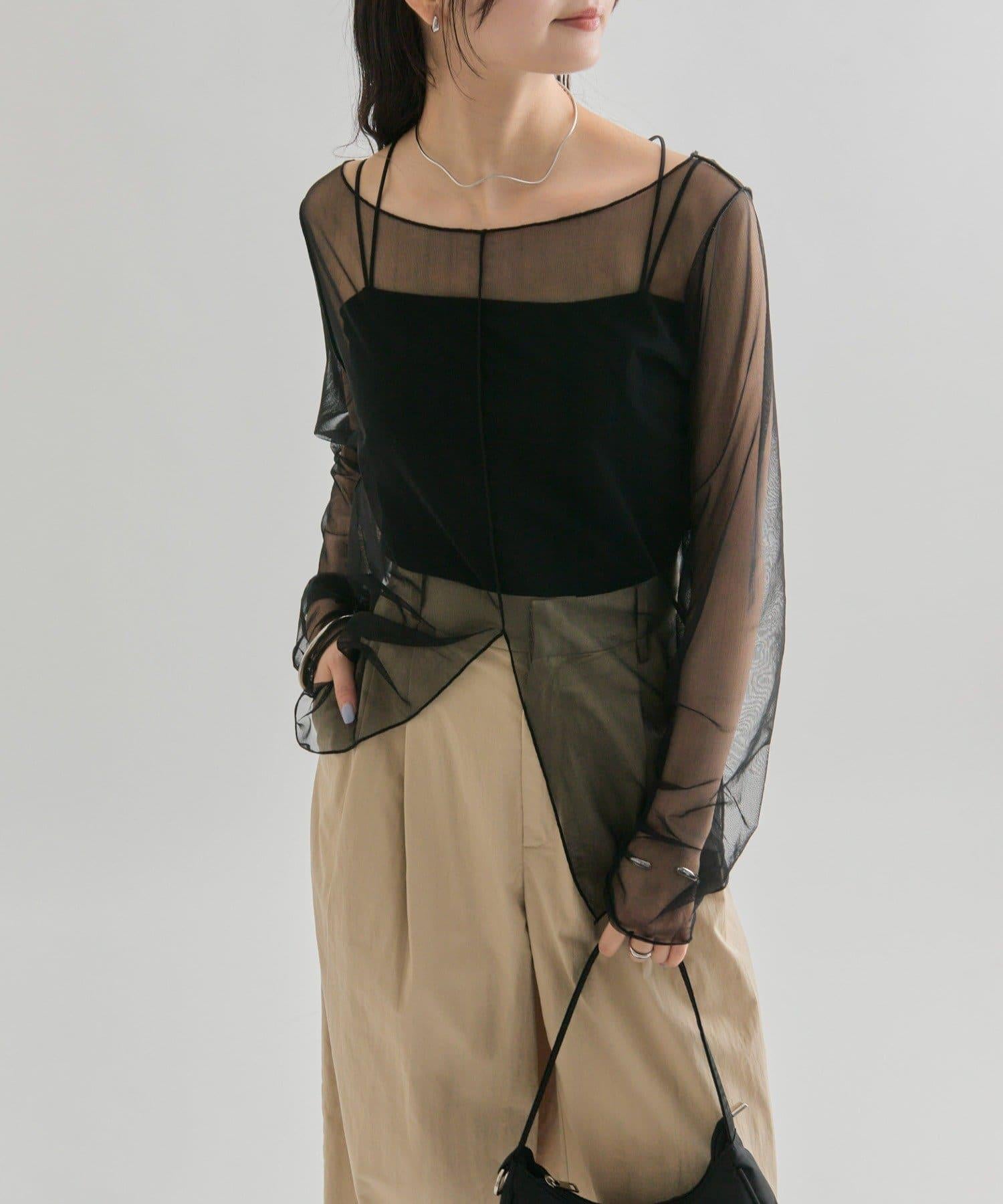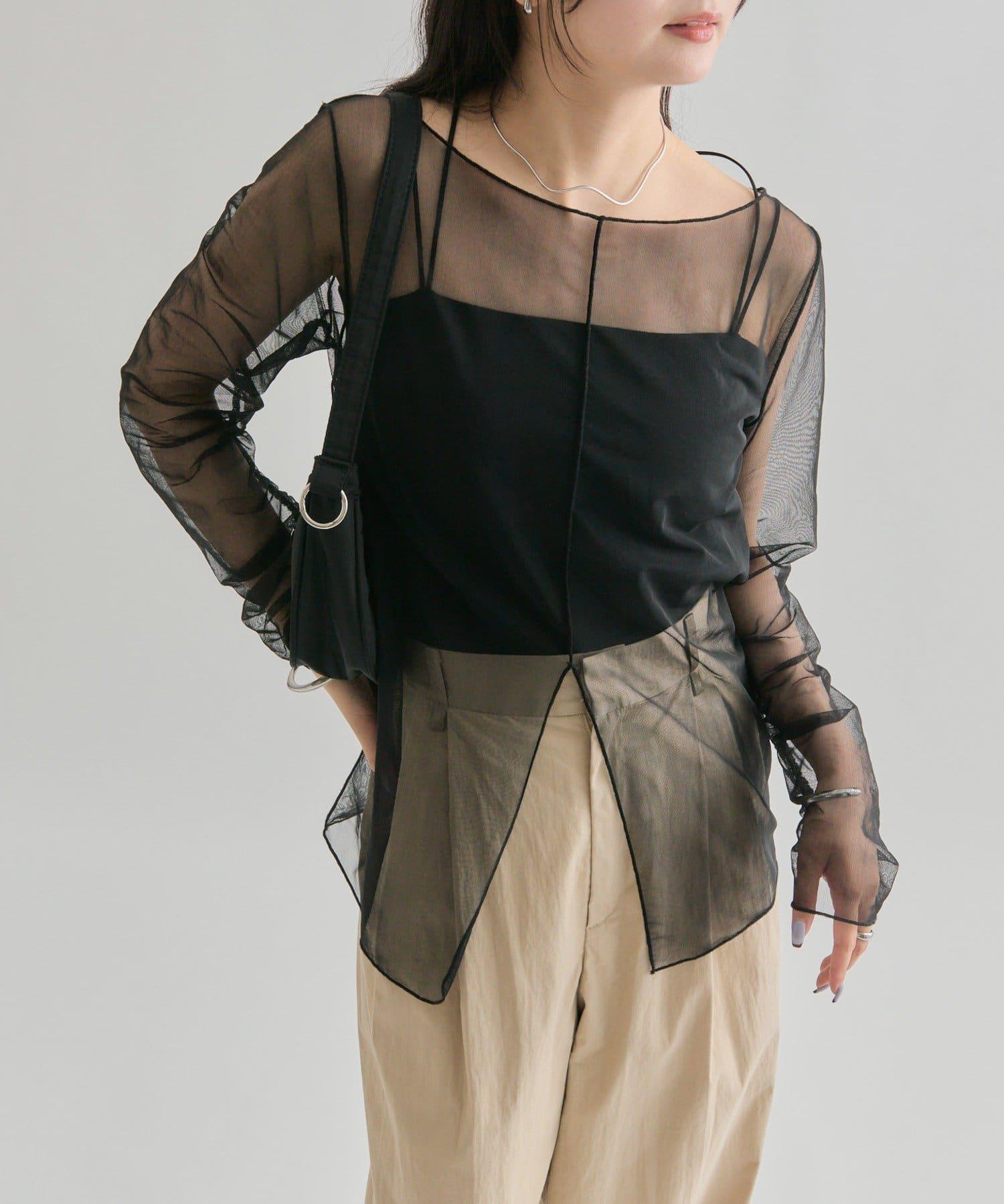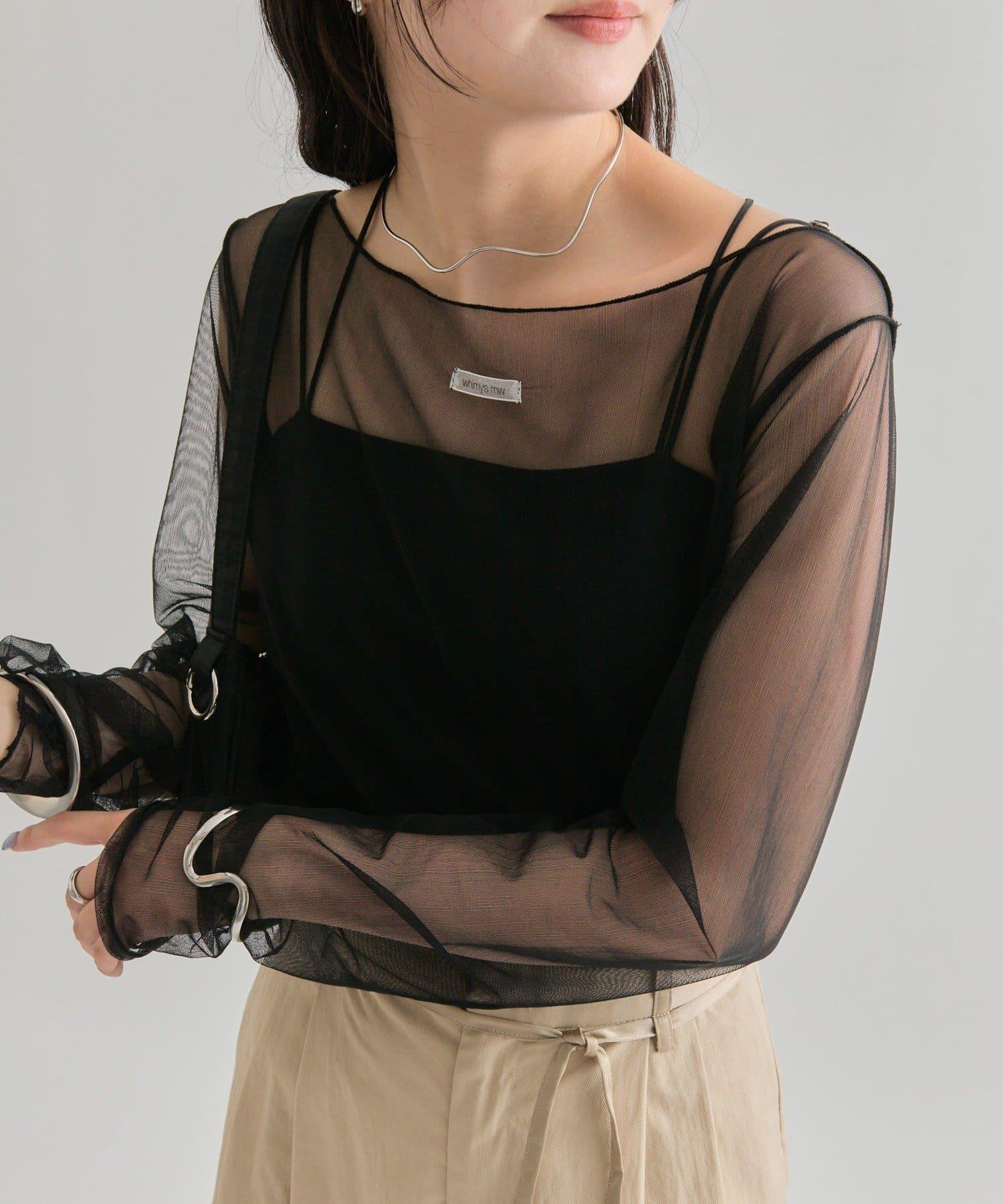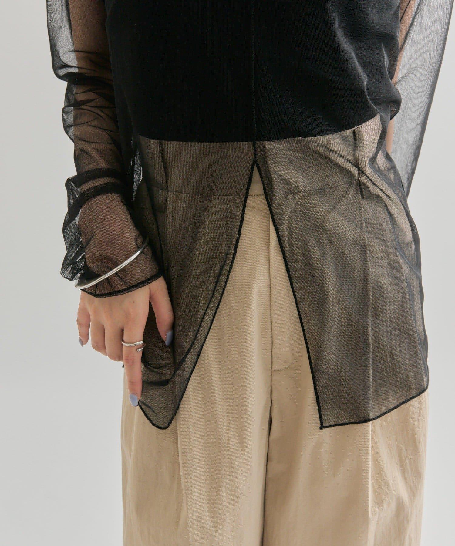 即使在寒冷的天氣裡也可以作為內搭穿著,薄紗材質的寬鬆感為這款單品增添了女性化的印象。