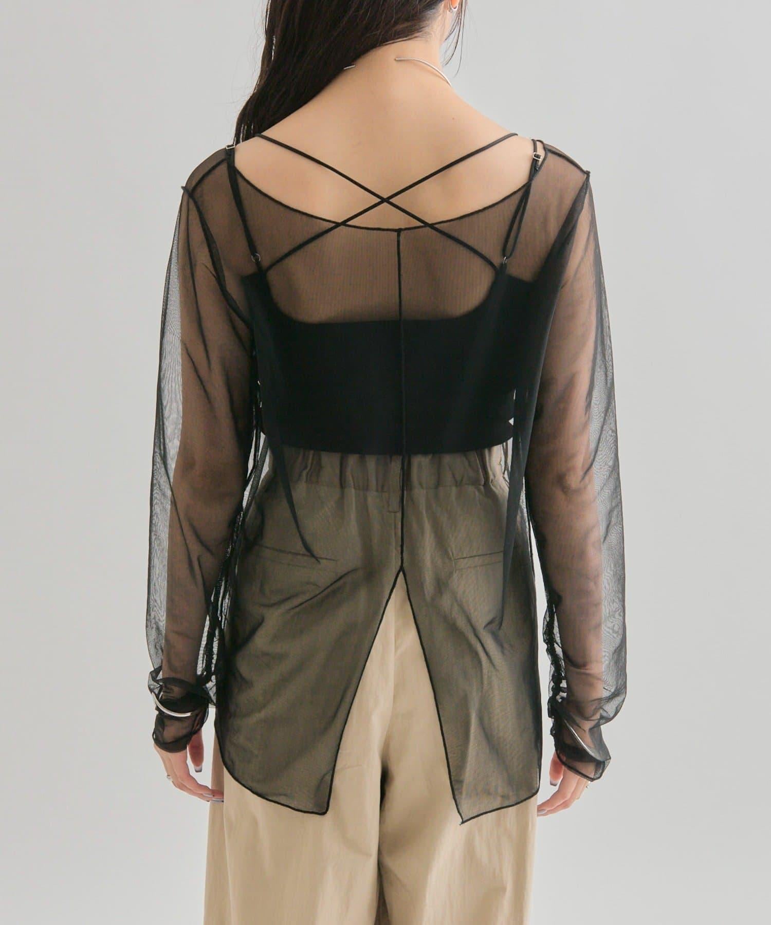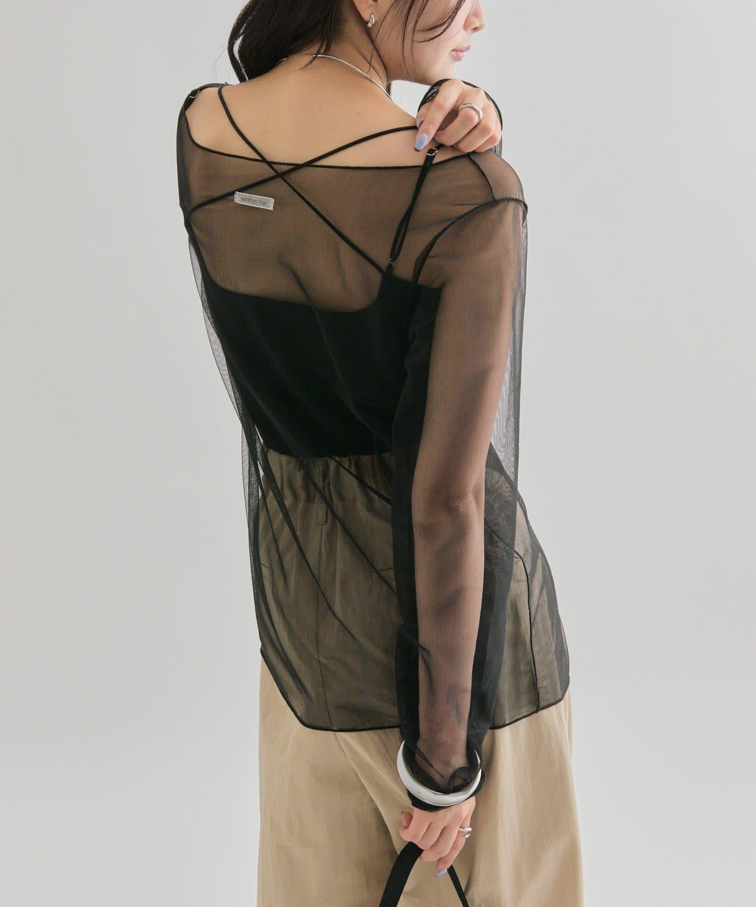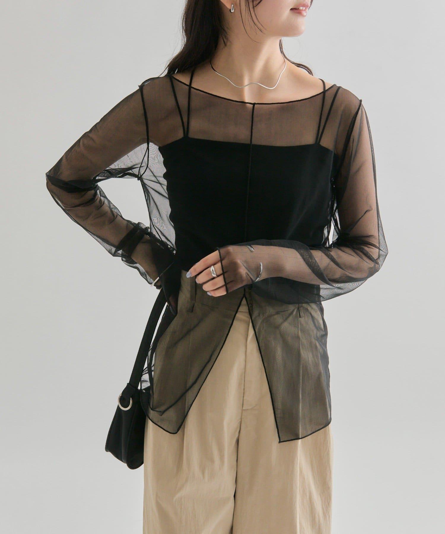 即使在寒冷的天氣裡也可以作為內搭穿著,薄紗材質的寬鬆感為這款單品增添了女性化的印象。