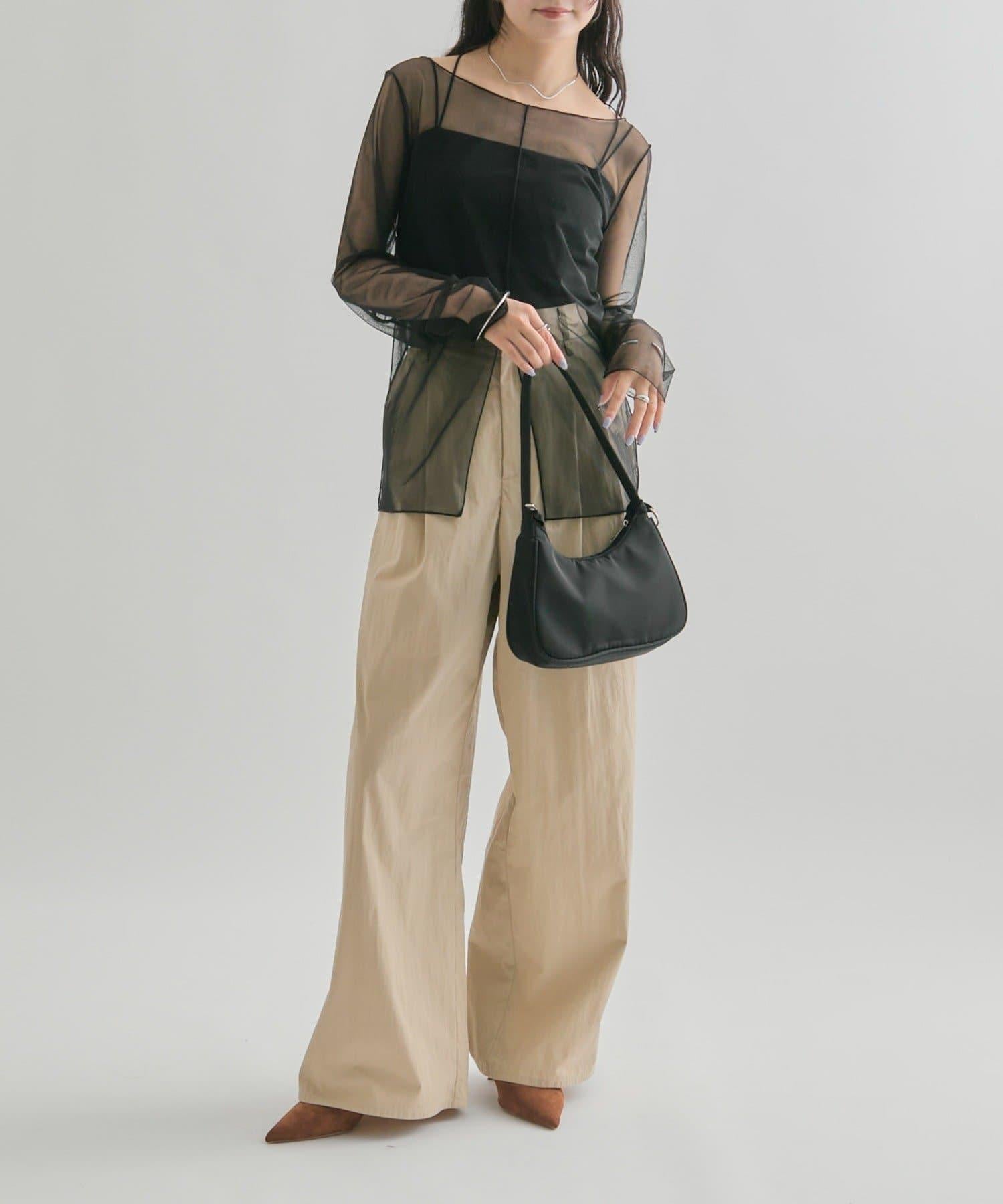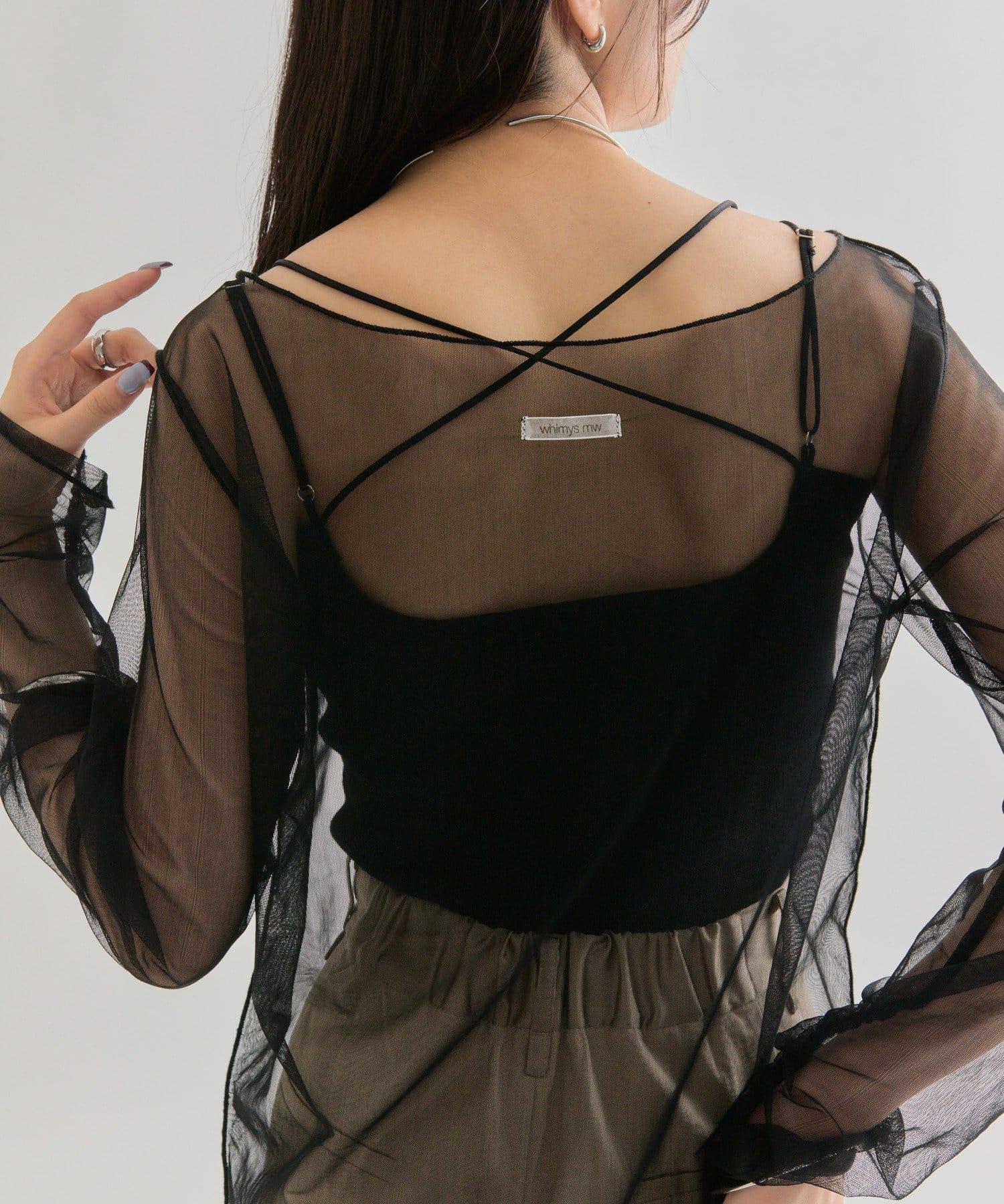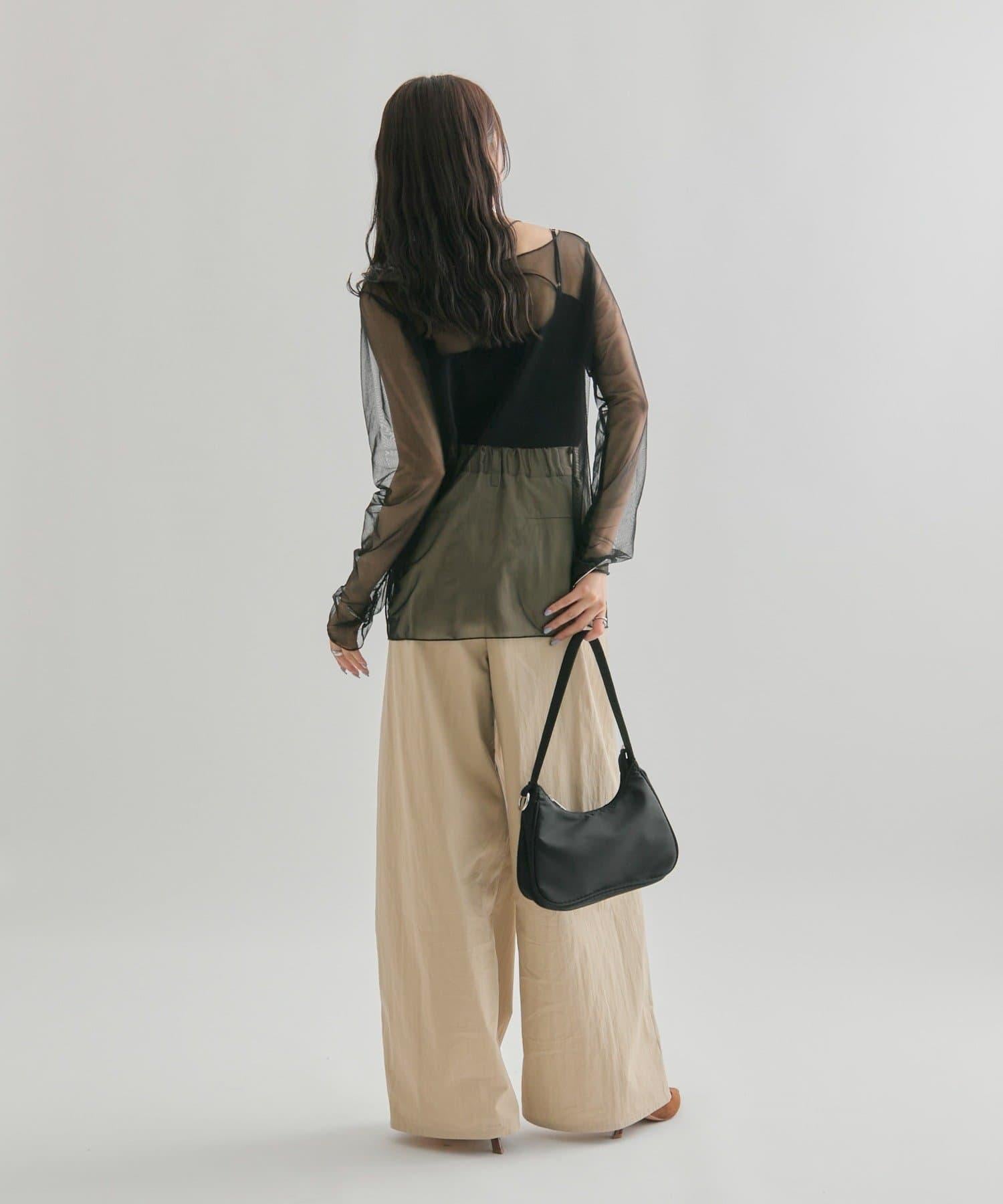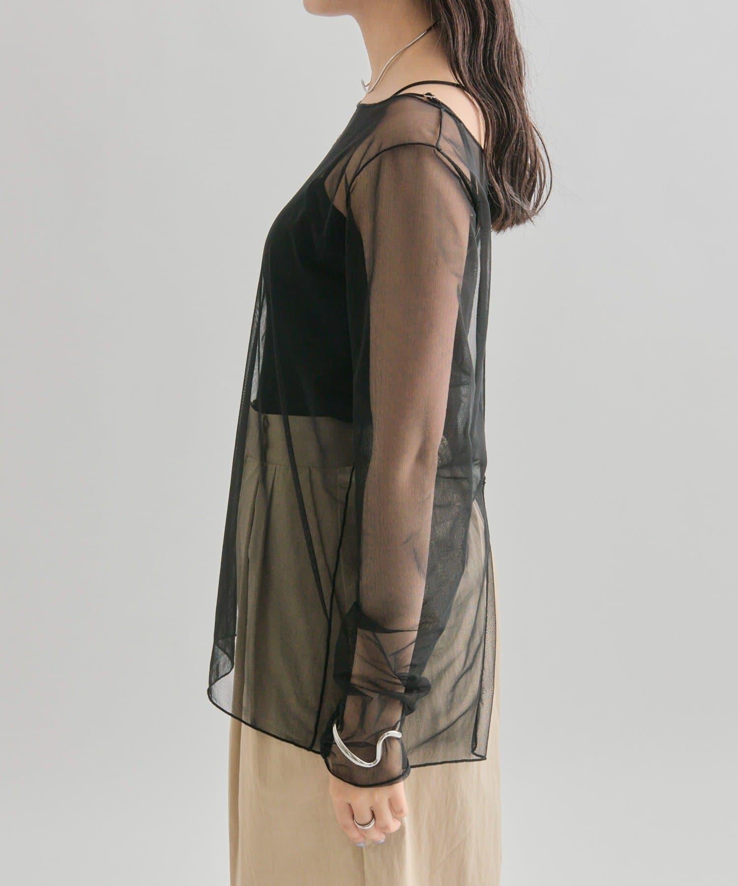 即使在寒冷的天氣裡也可以作為內搭穿著,薄紗材質的寬鬆感為這款單品增添了女性化的印象。