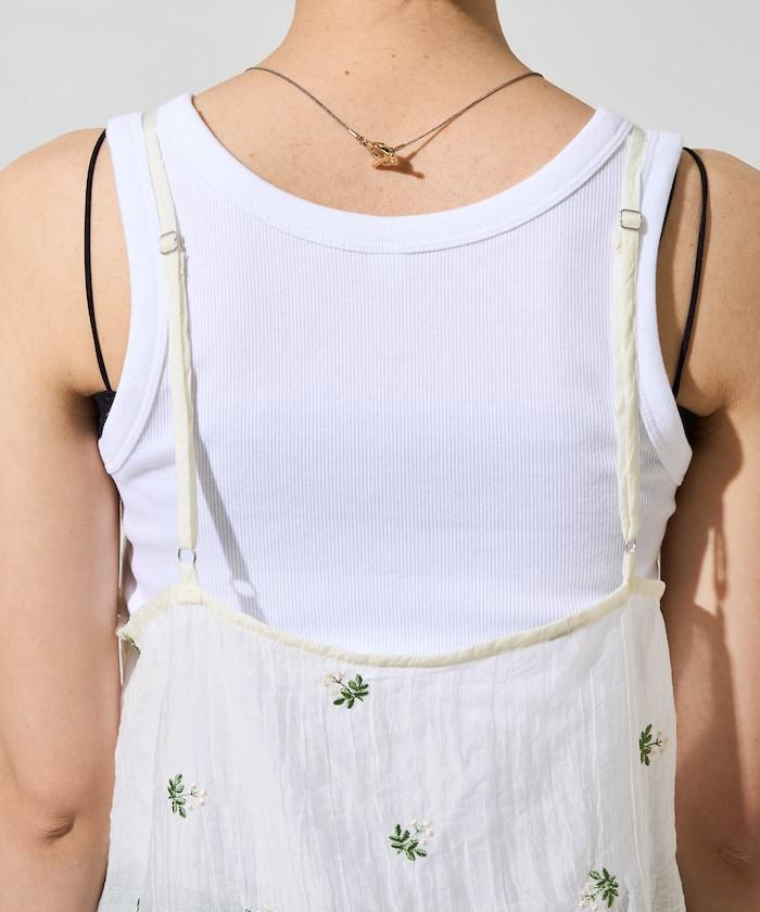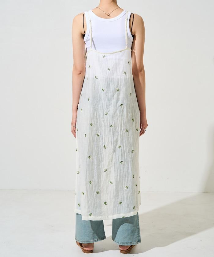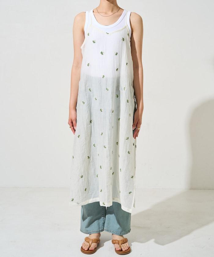 透視 小花紋 刺繡 吊帶連衣裙
