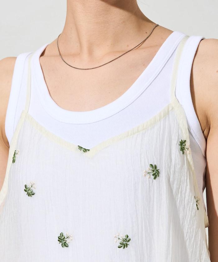 透視花卉圖案刺繡吊帶連衣裙
