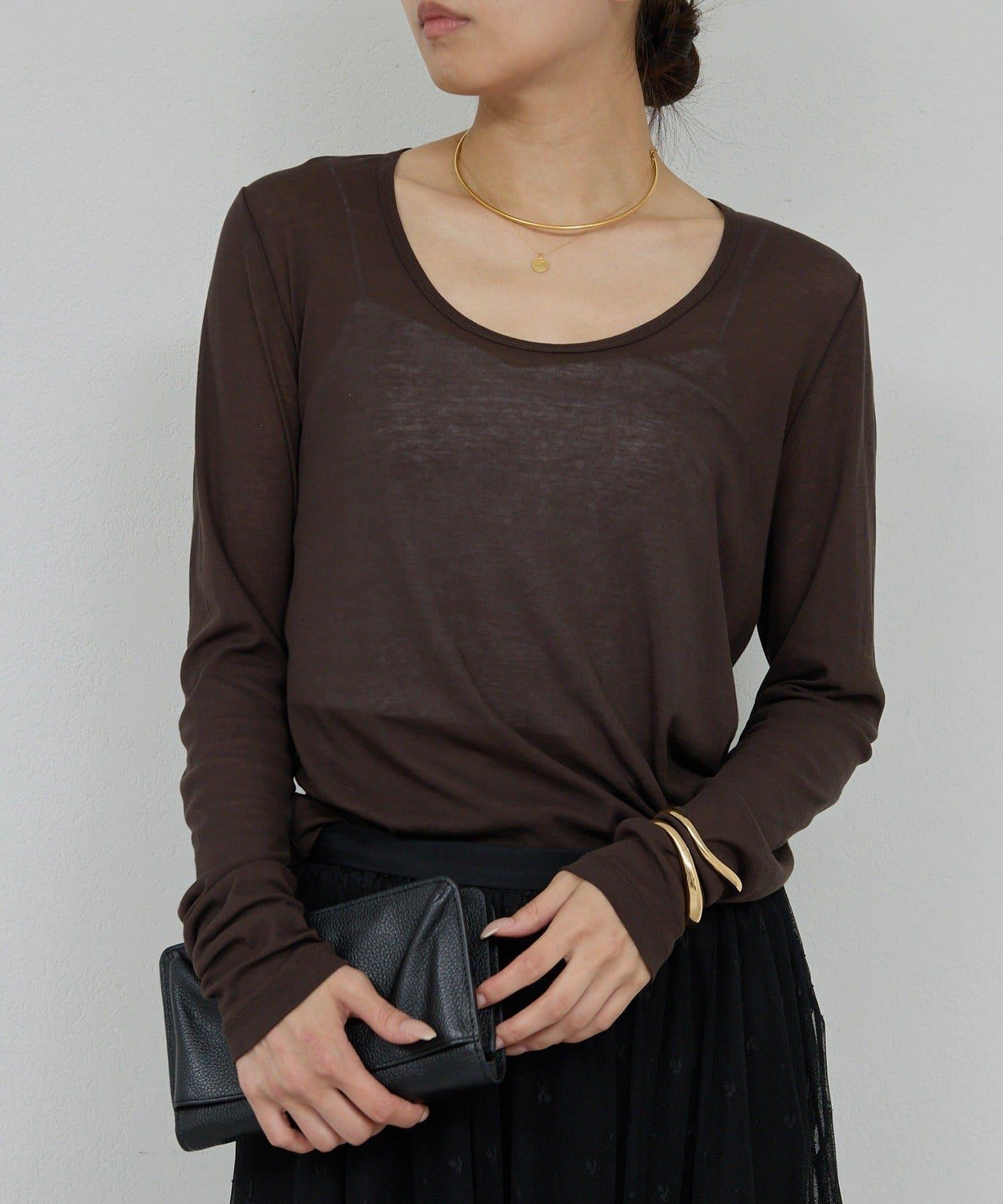 透視U領長袖T恤