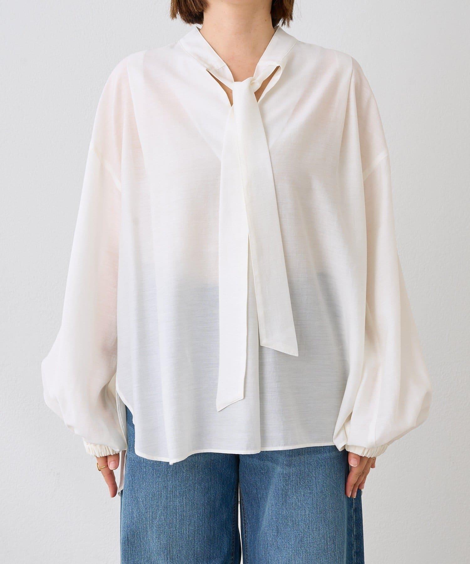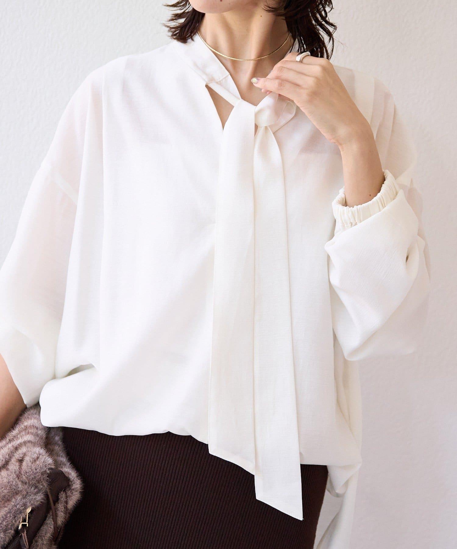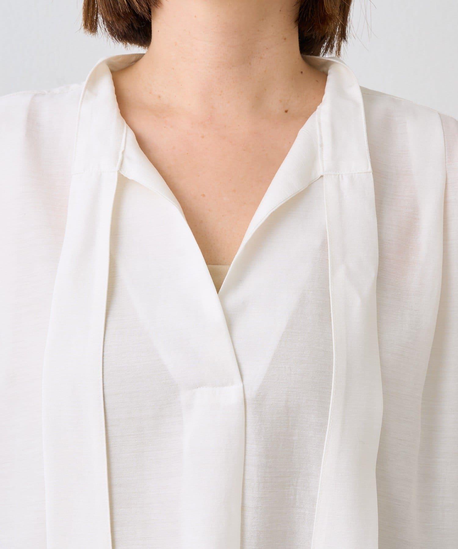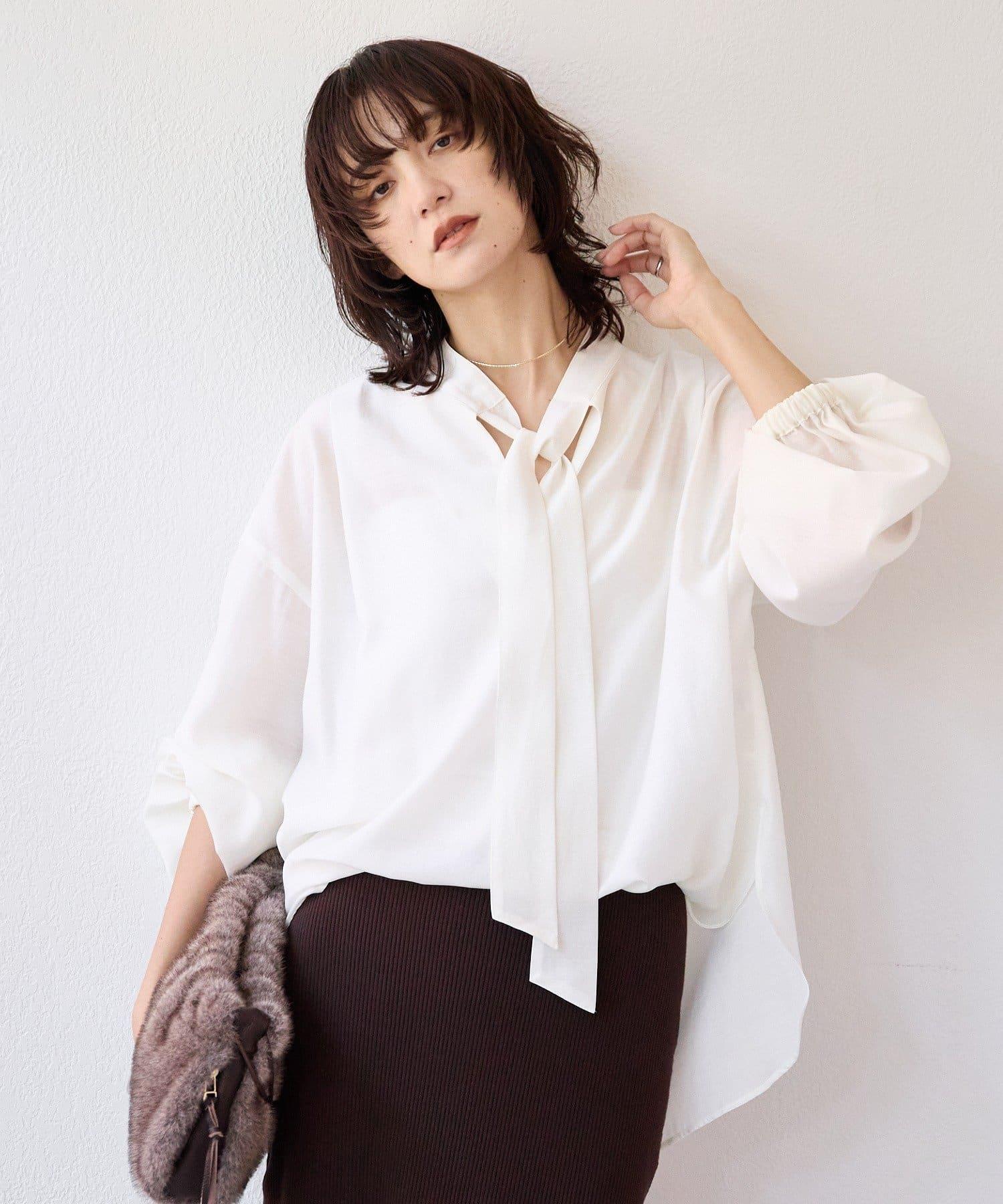 這款上衣有一個優雅的蝴蝶結領結細節。