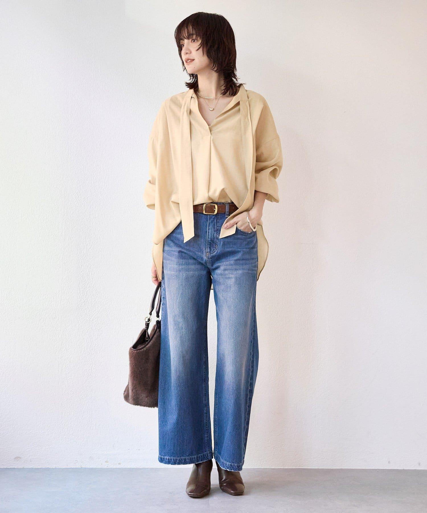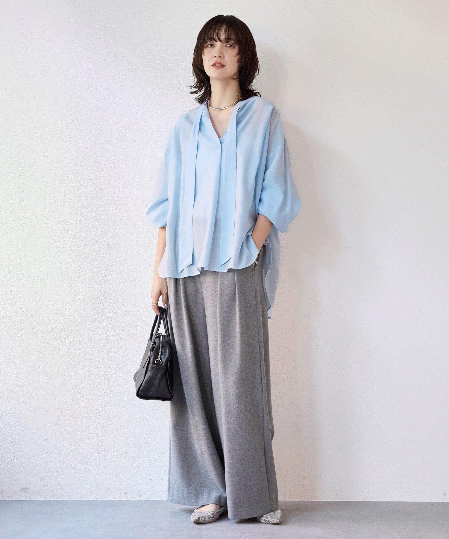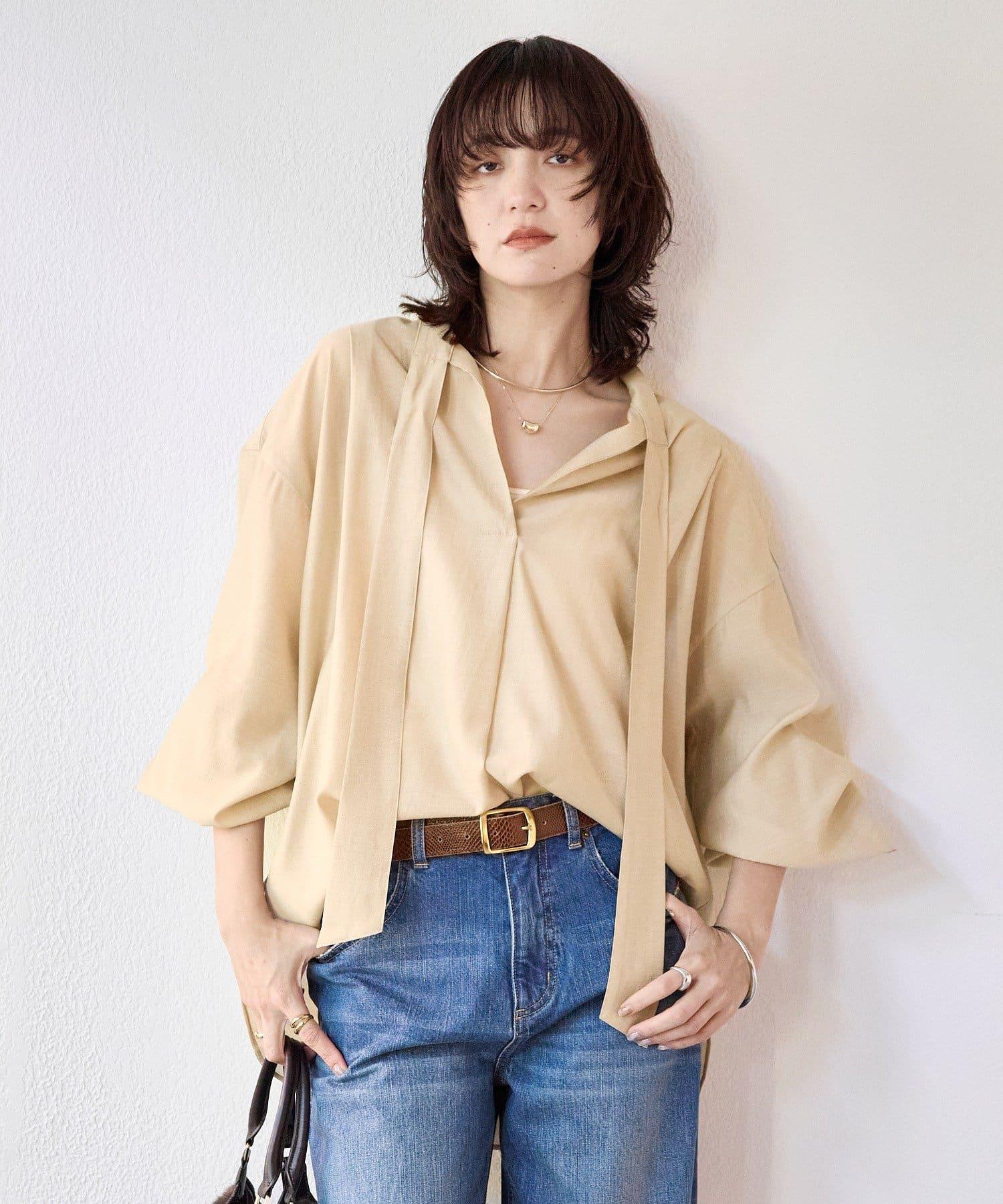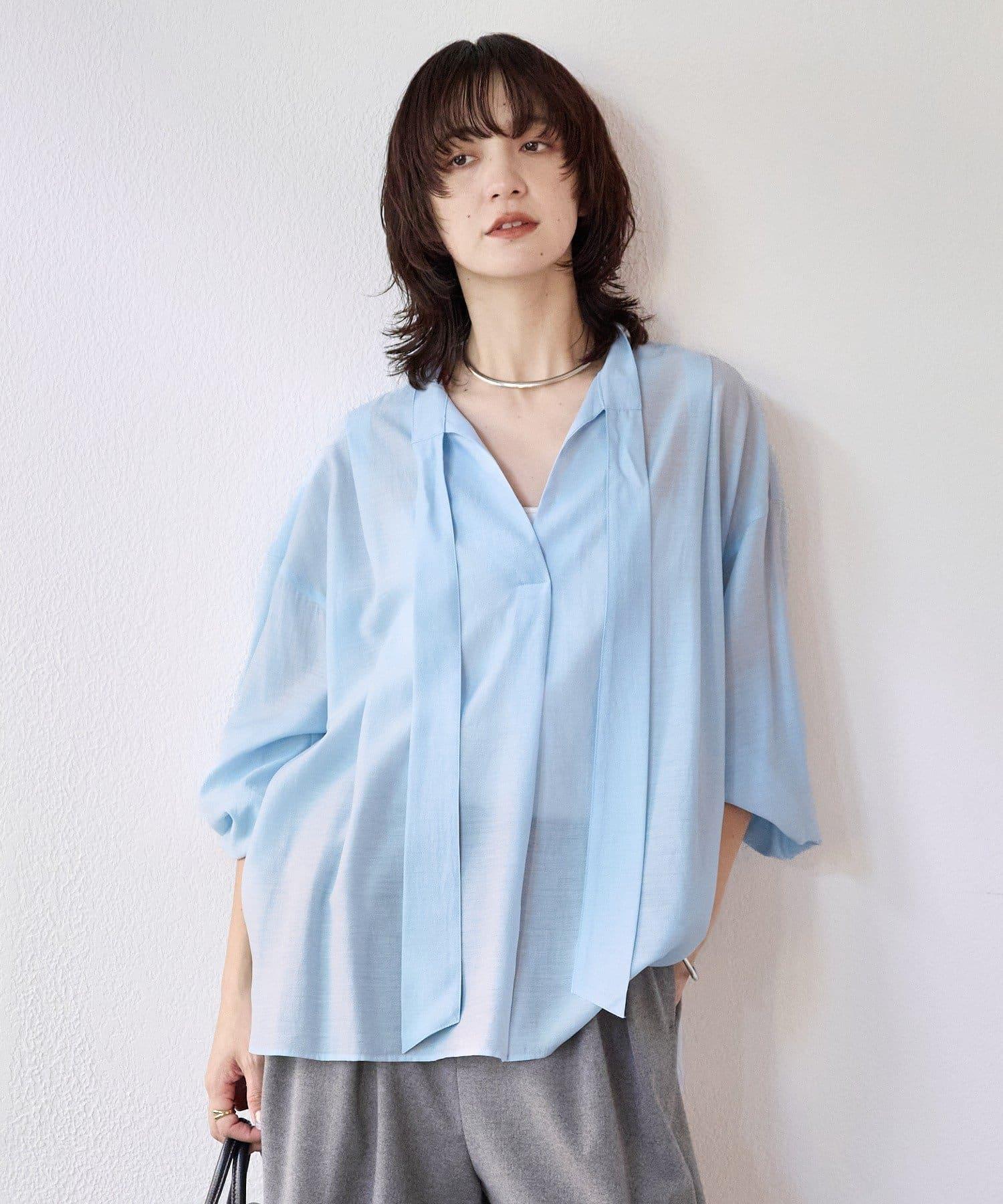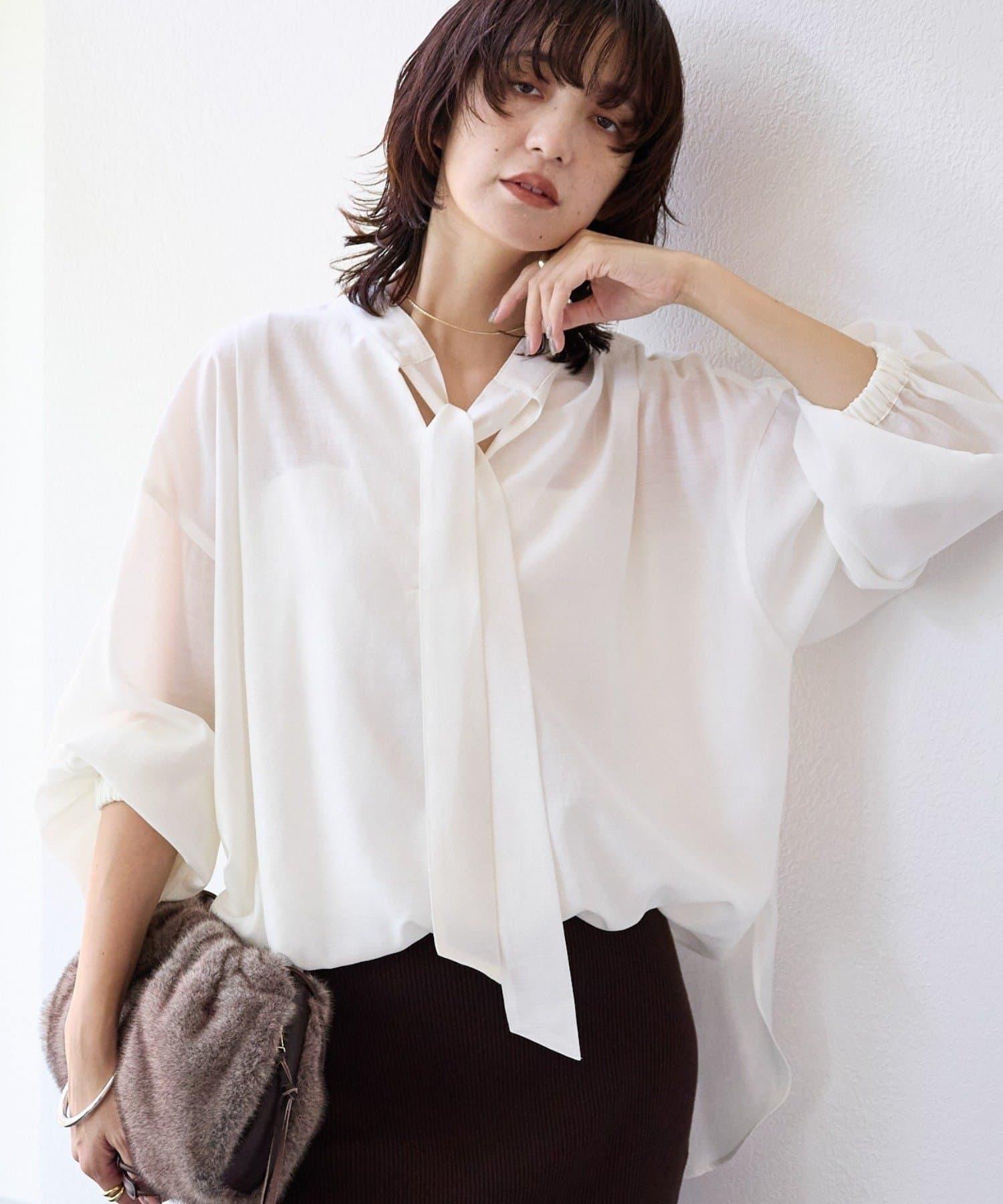 這款上衣有一個優雅的蝴蝶結領結細節。
