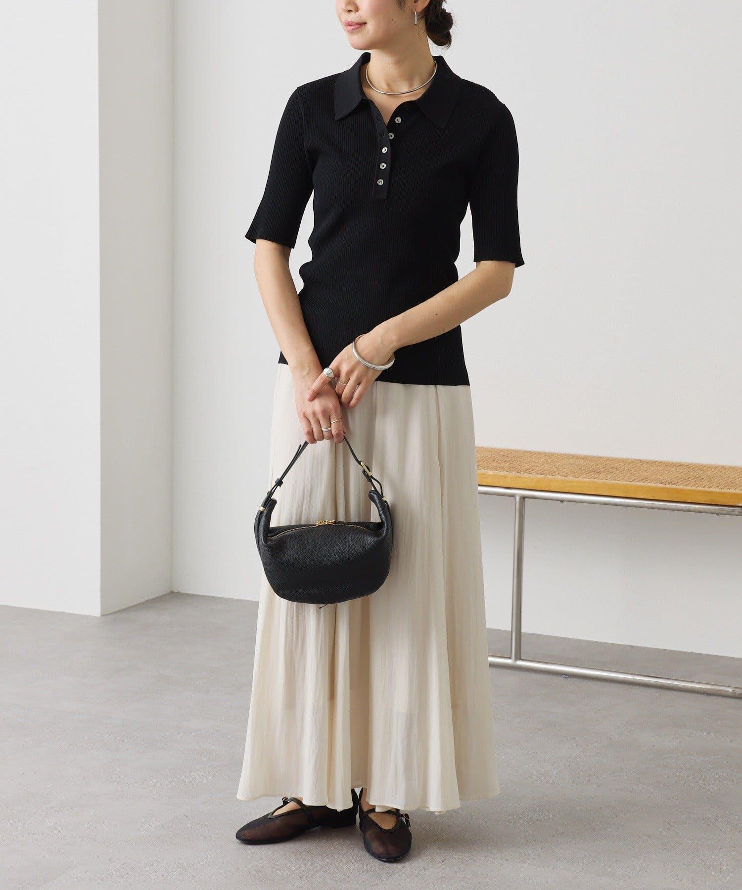 馬球針織衫採用 精緻 而 富有光澤的紗線製成。根據下身搭配,可穿可脫的百搭單品。