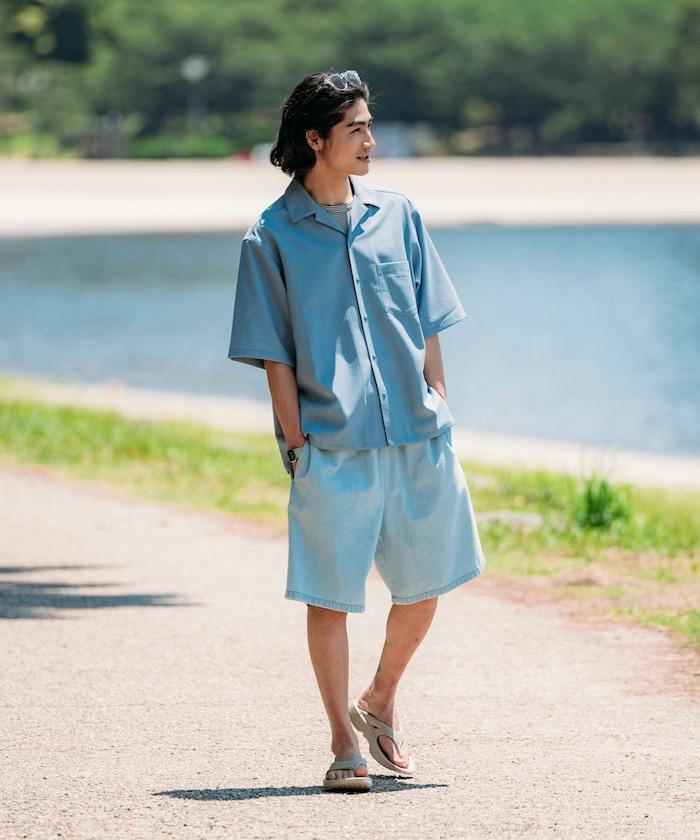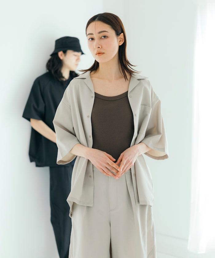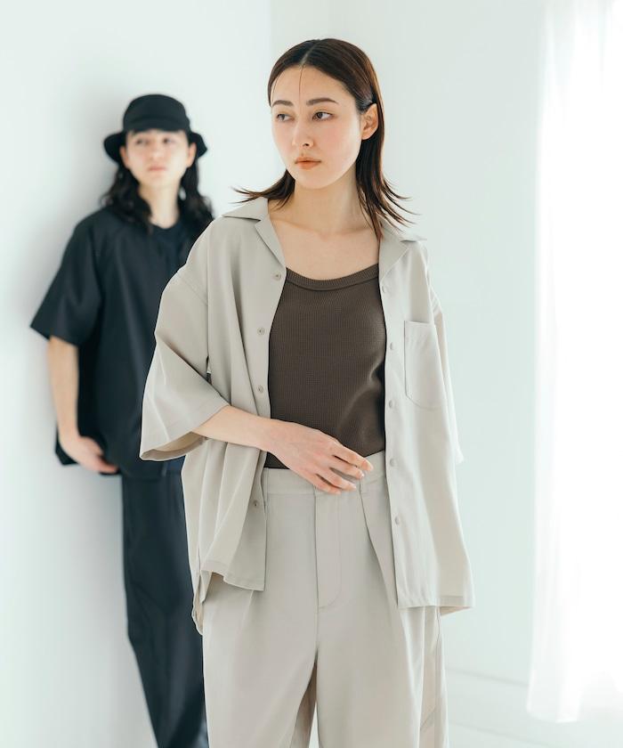 快乾面料 寬鬆版型 開領襯衫 短袖 仿亞麻面料