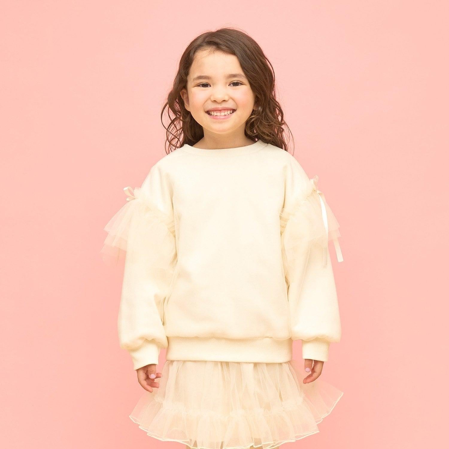 簡單的運動衫與蓬鬆的薄紗相結合,增強了設計的童趣可愛。