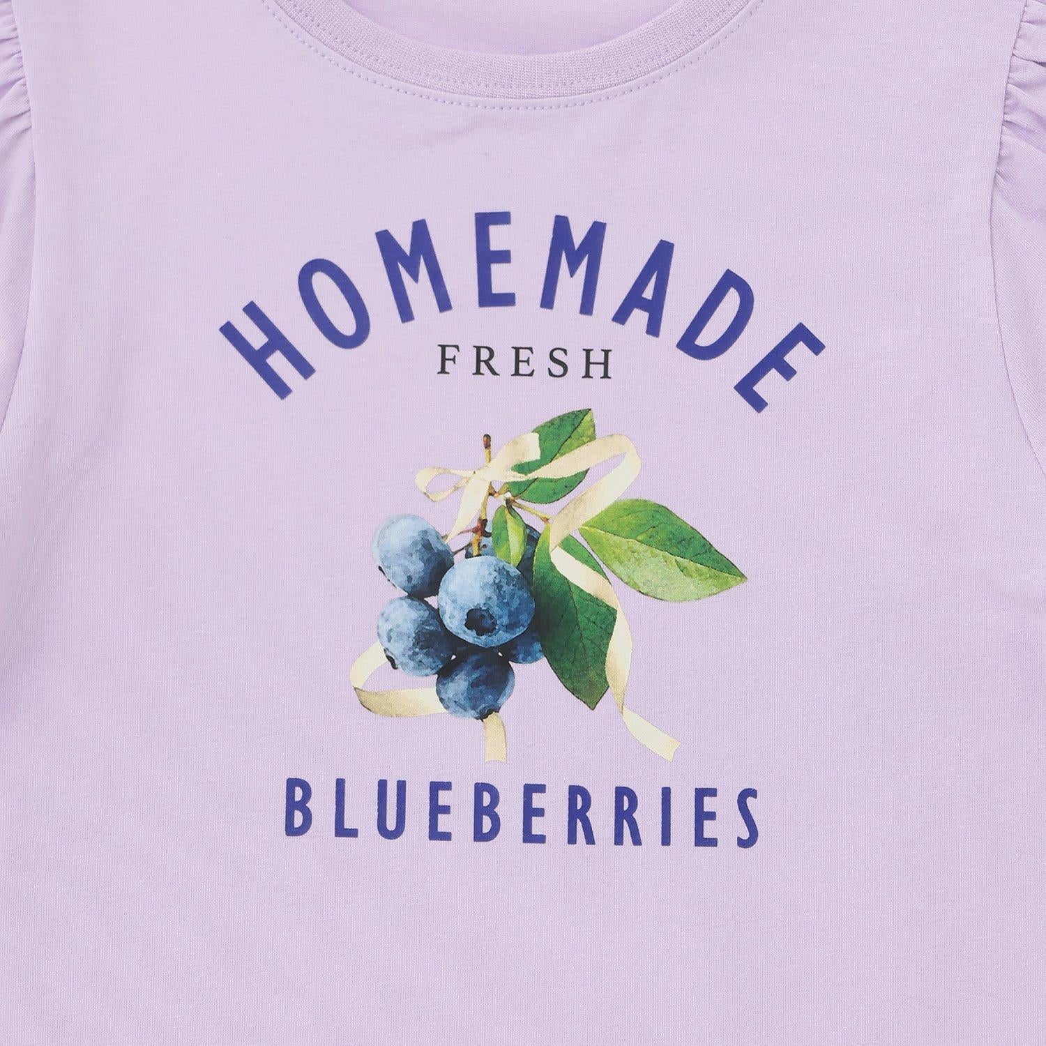 A 字 T 恤,印有可愛的水果圖案。