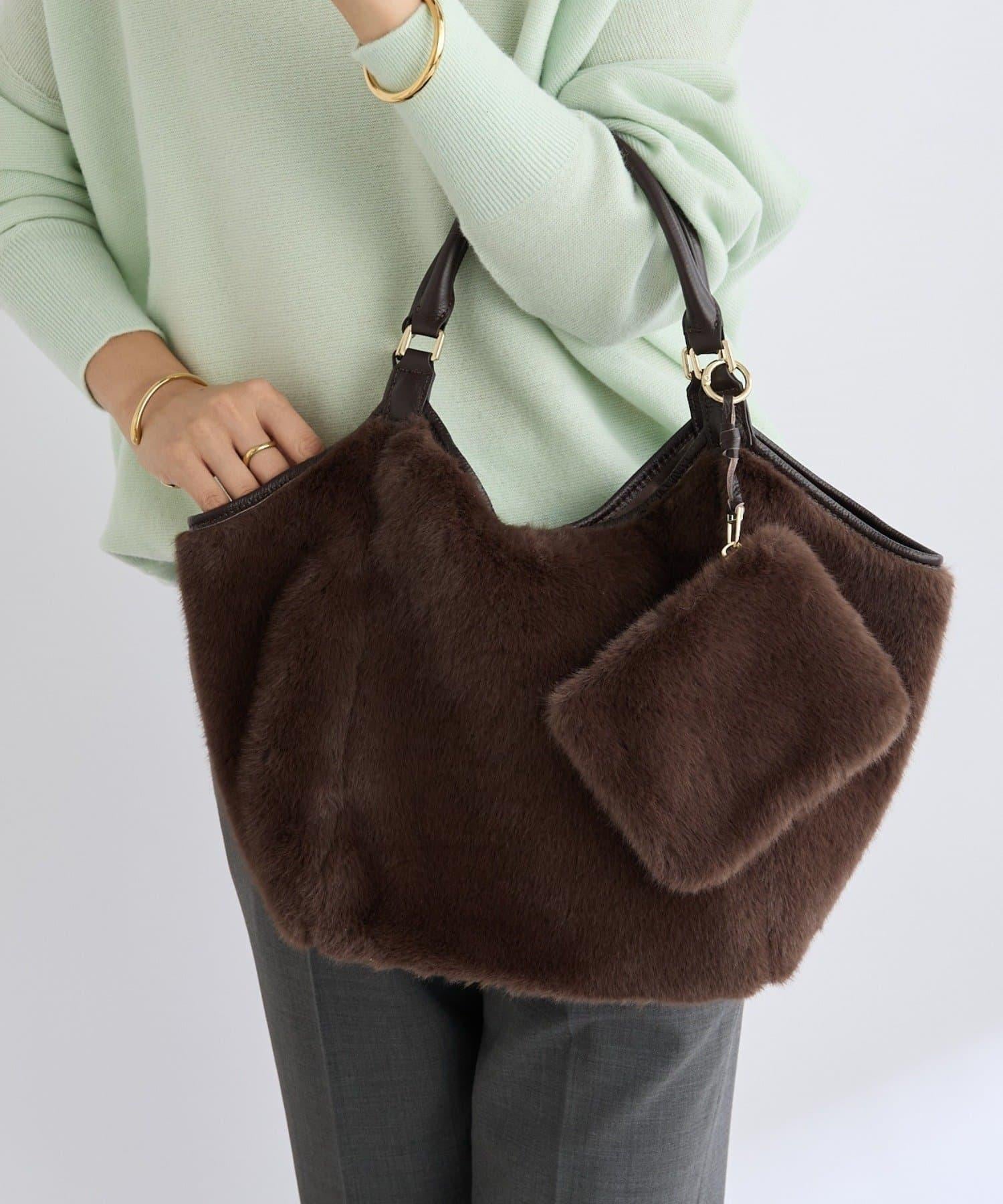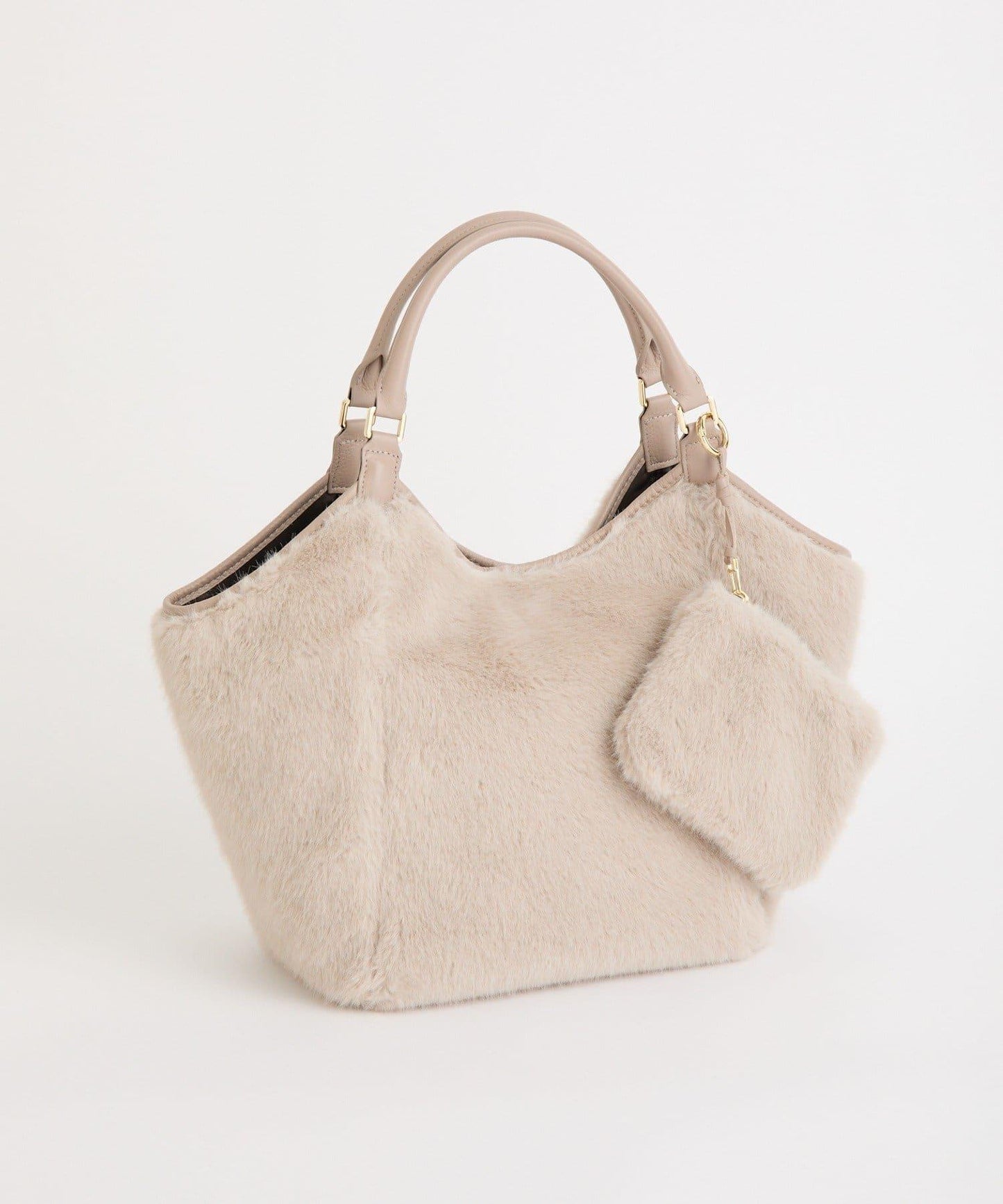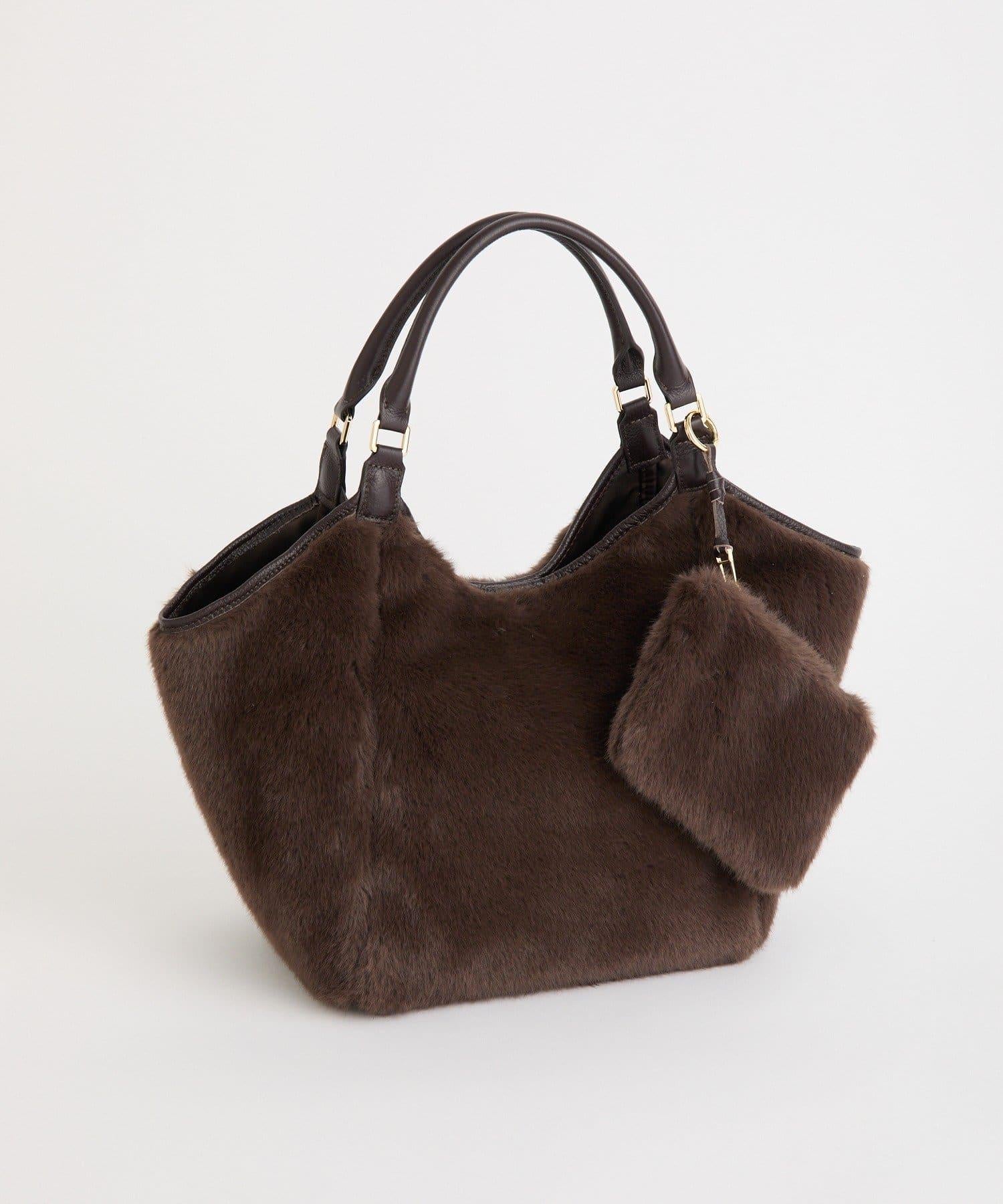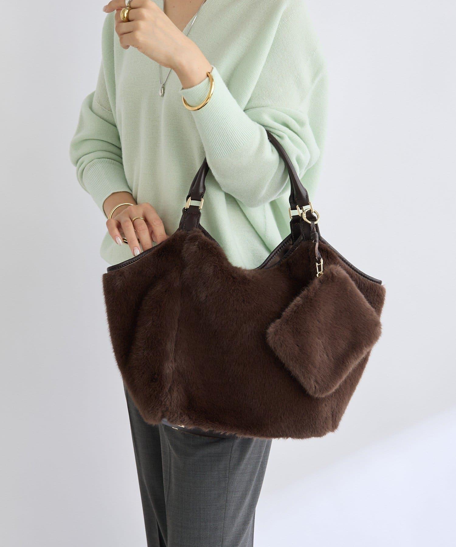 這款手提包採用醒目的人造皮草,體積恰到好處。