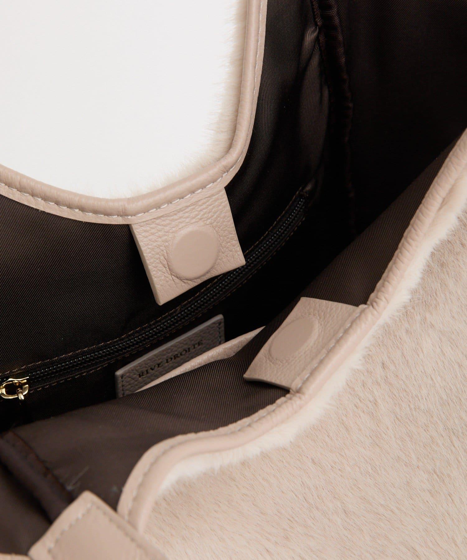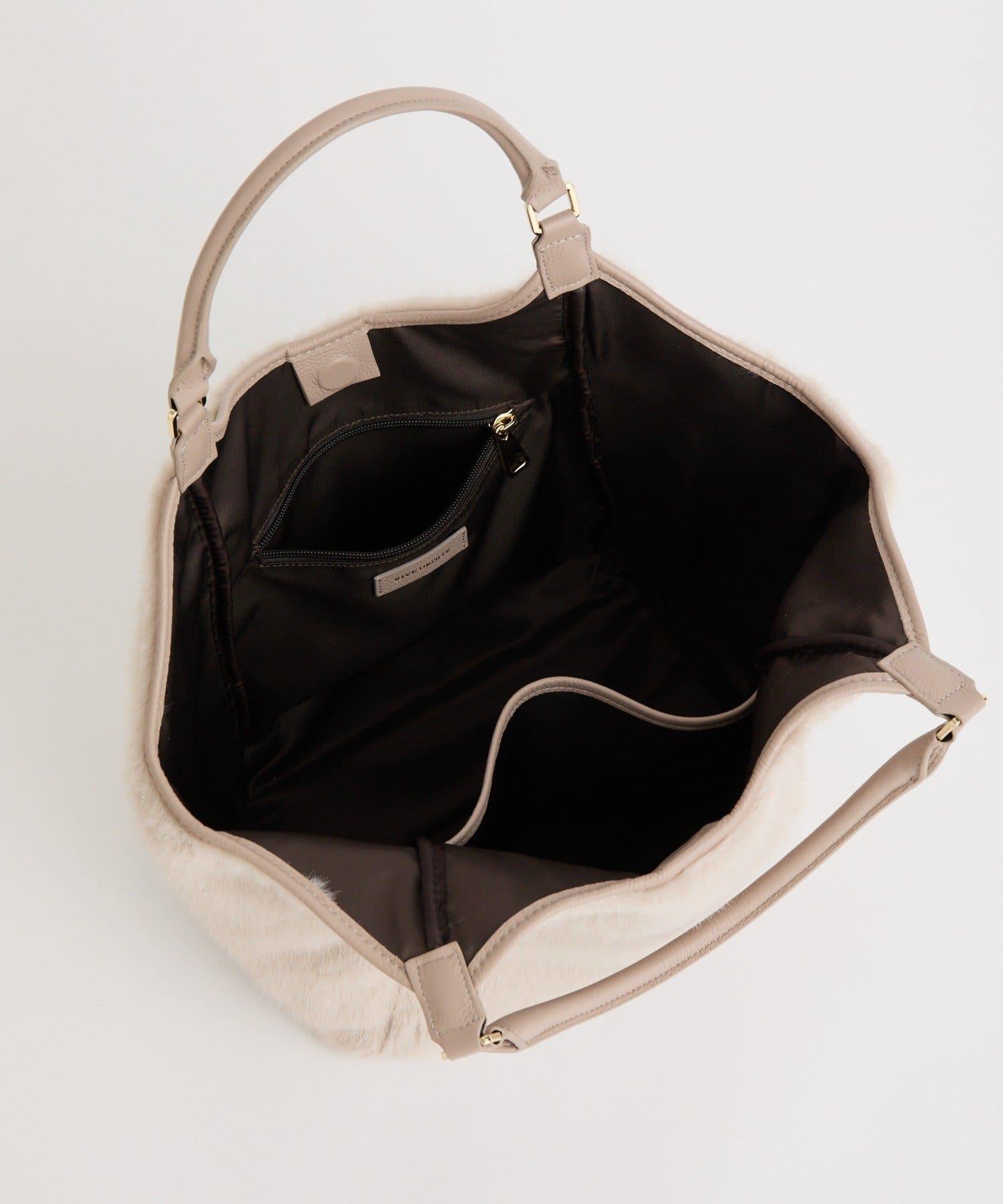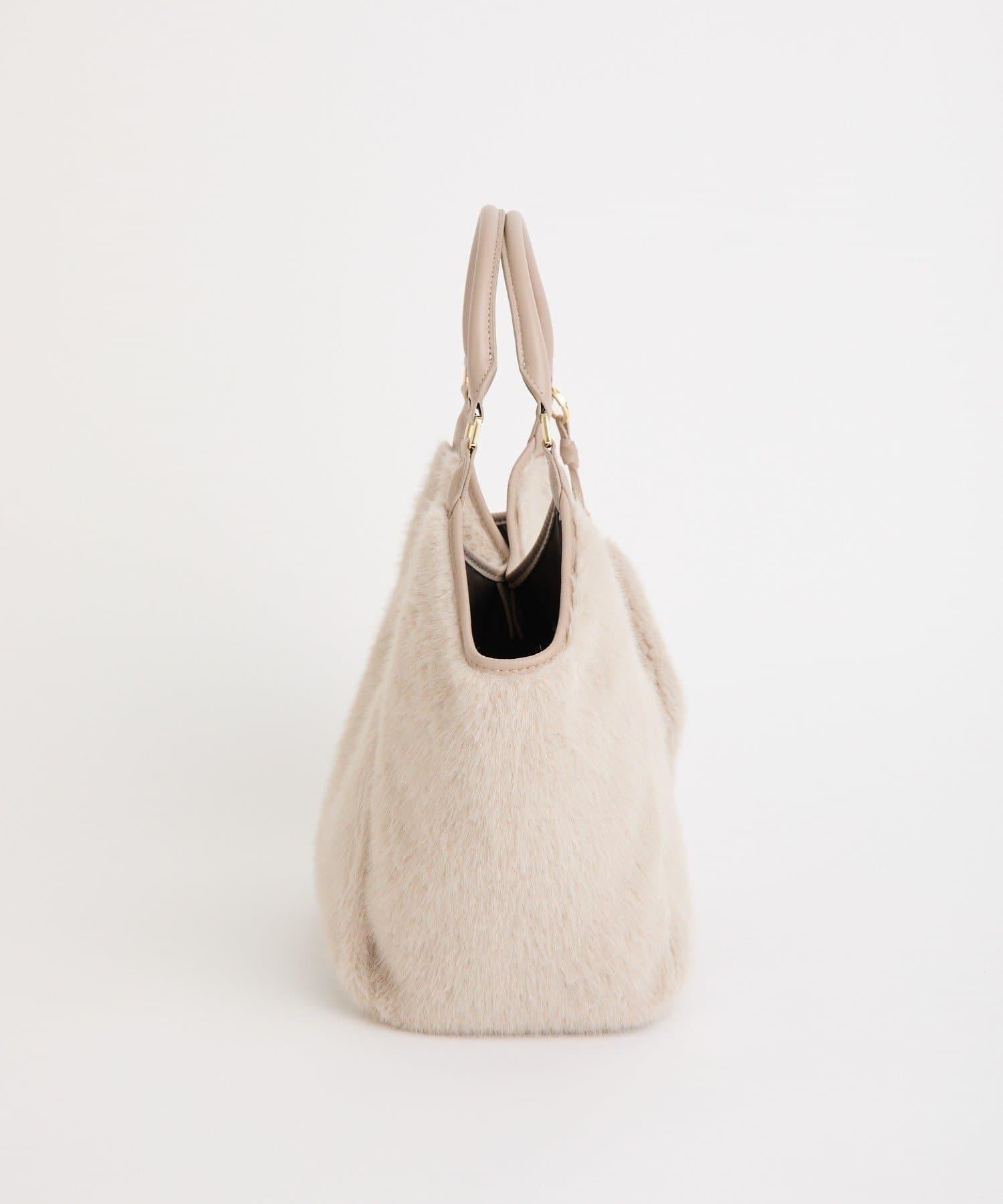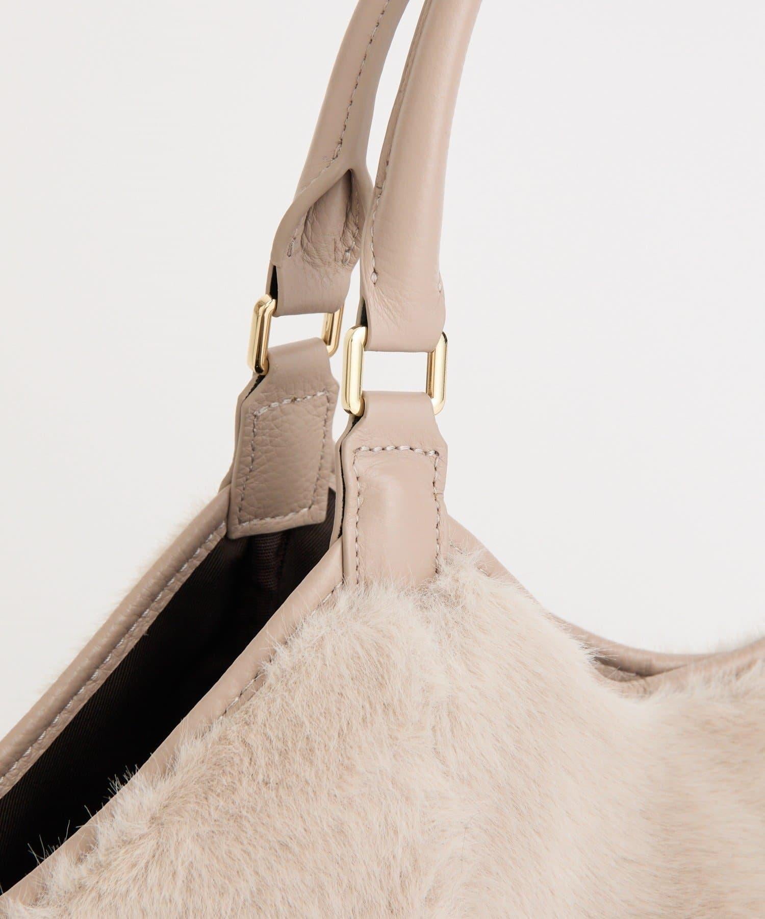這款手提包採用醒目的人造皮草,體積恰到好處。