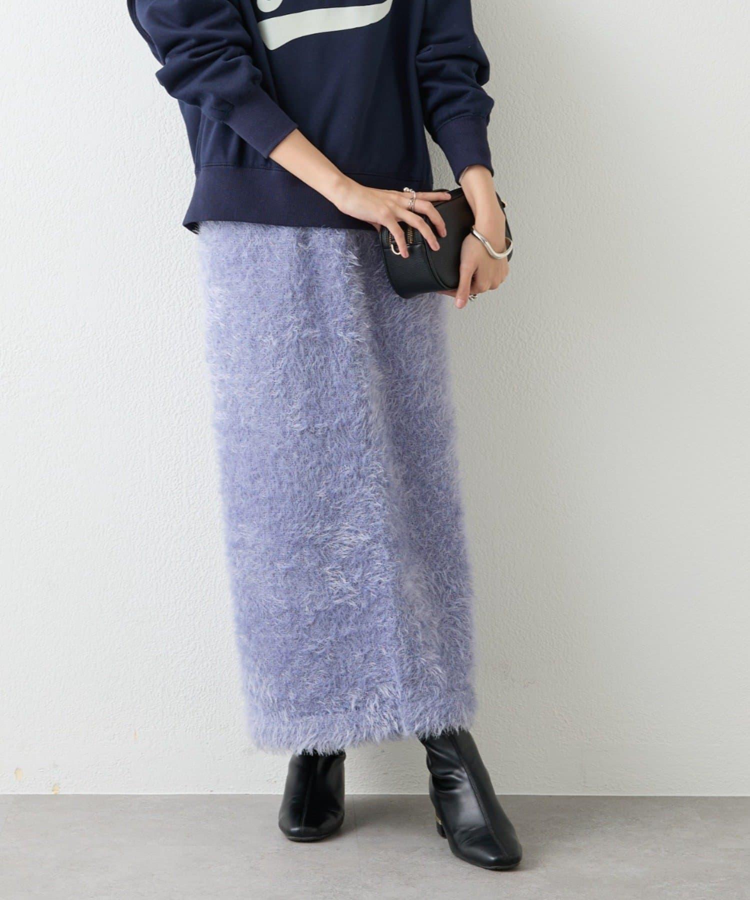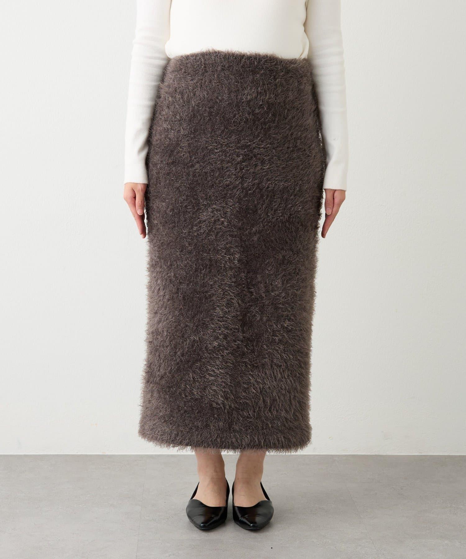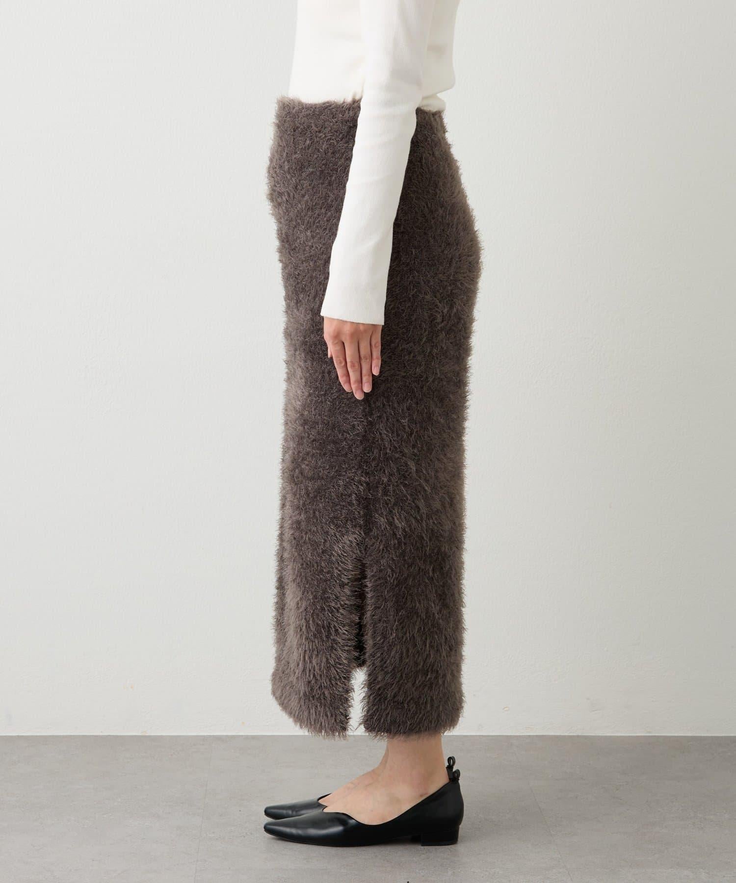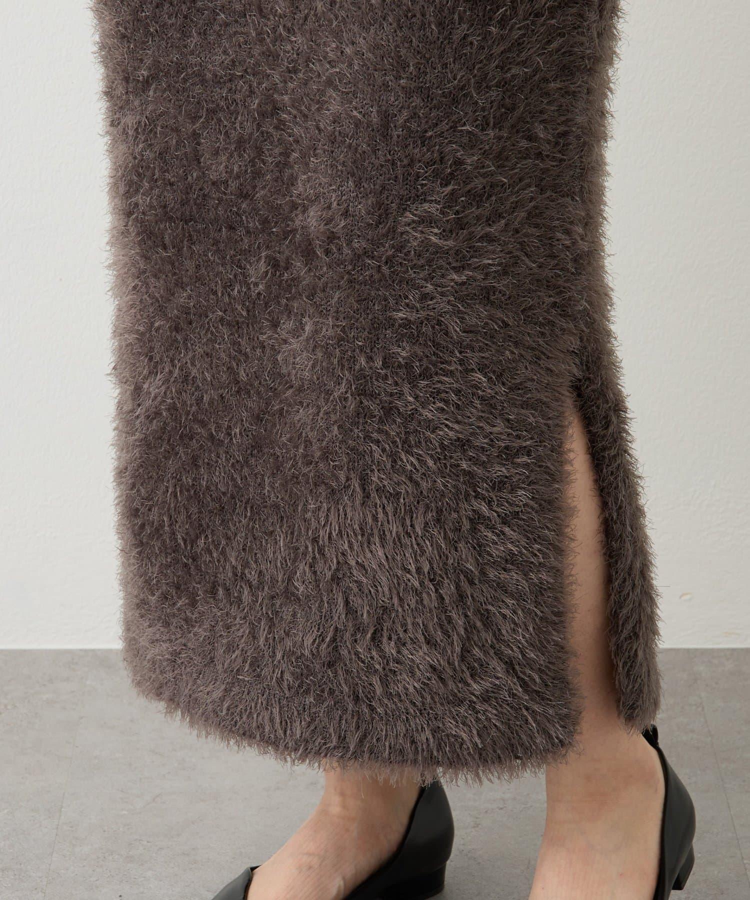 這款成人女性短裙採用毛茸茸的針織面料製成,帶有細膩的皮草紋理。