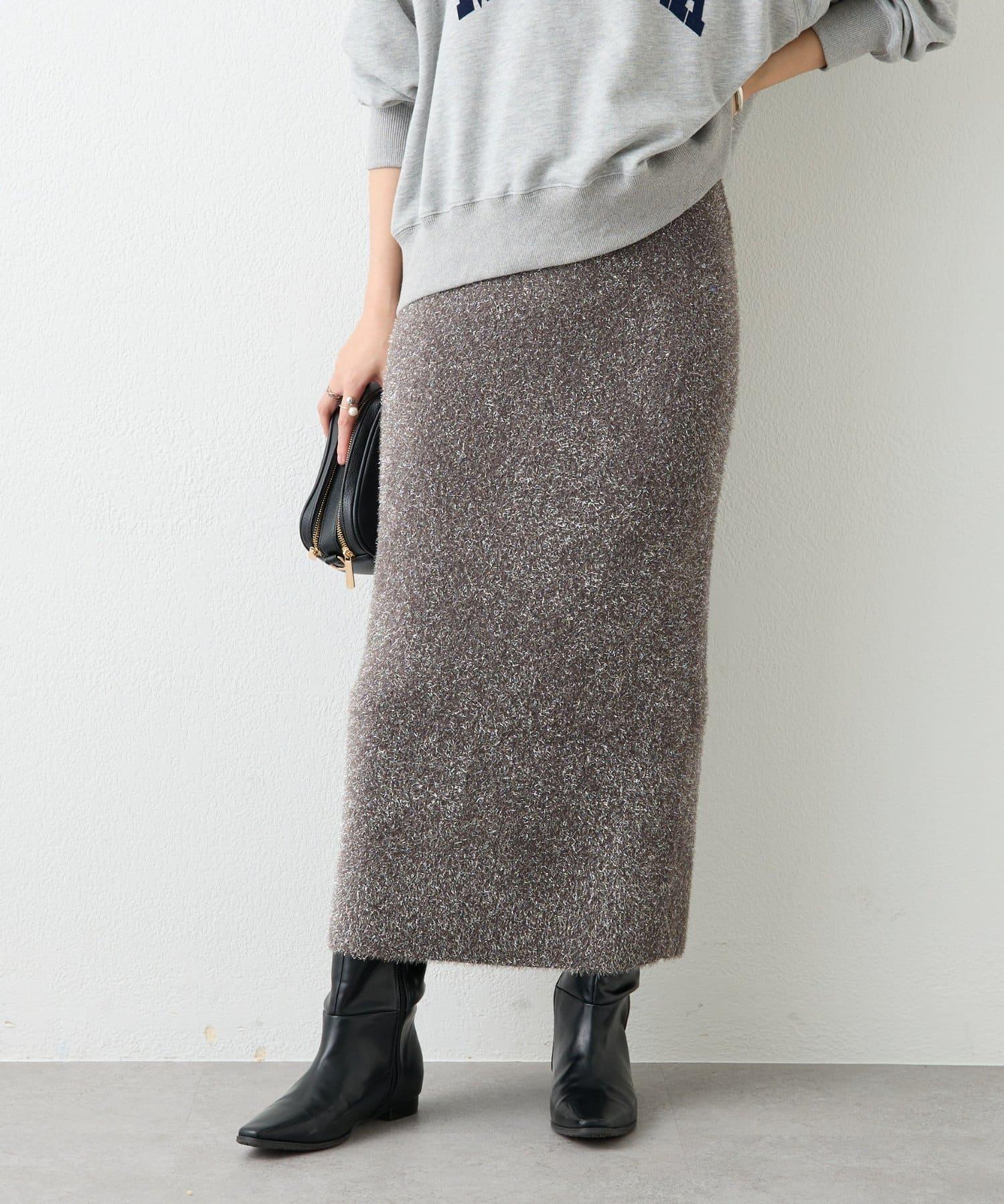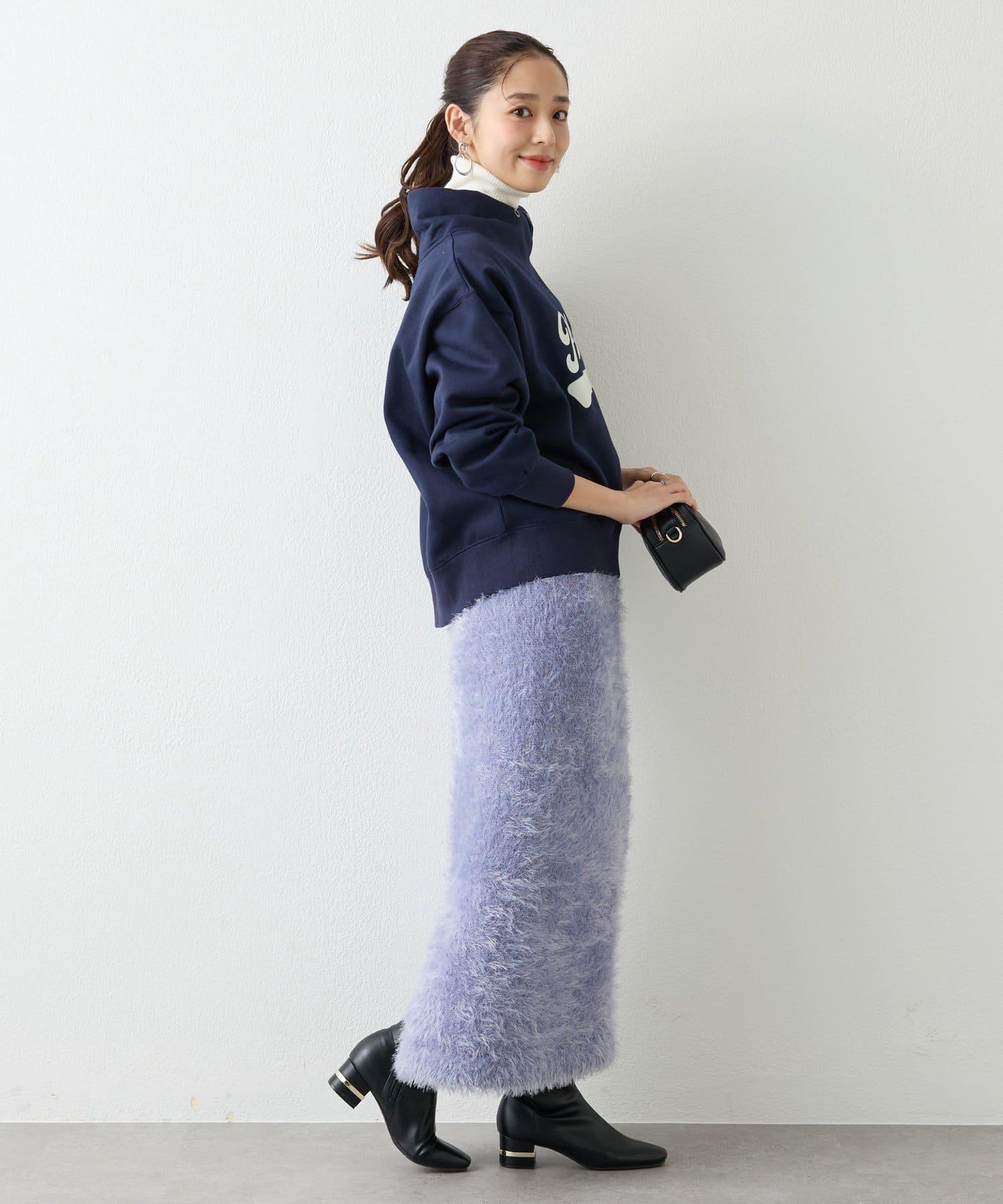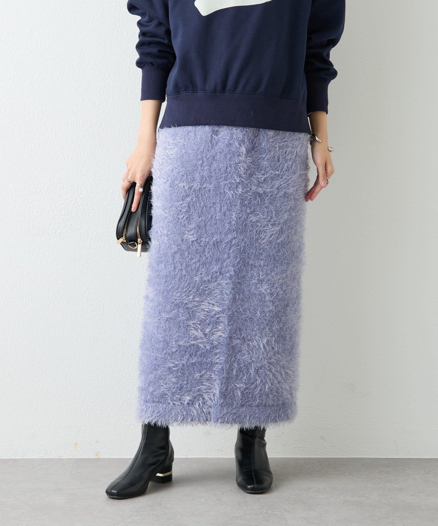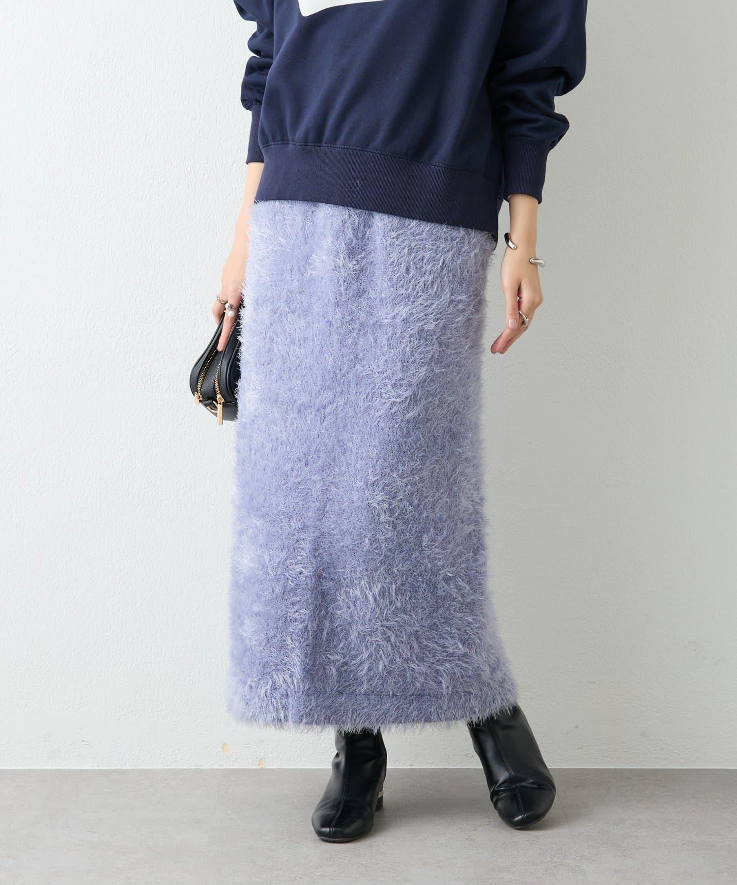 這款成人女性短裙採用毛茸茸的針織面料製成,帶有細膩的皮草紋理。