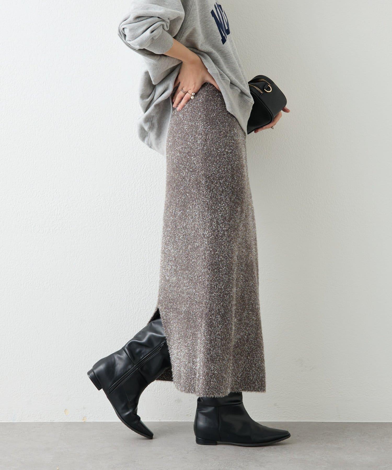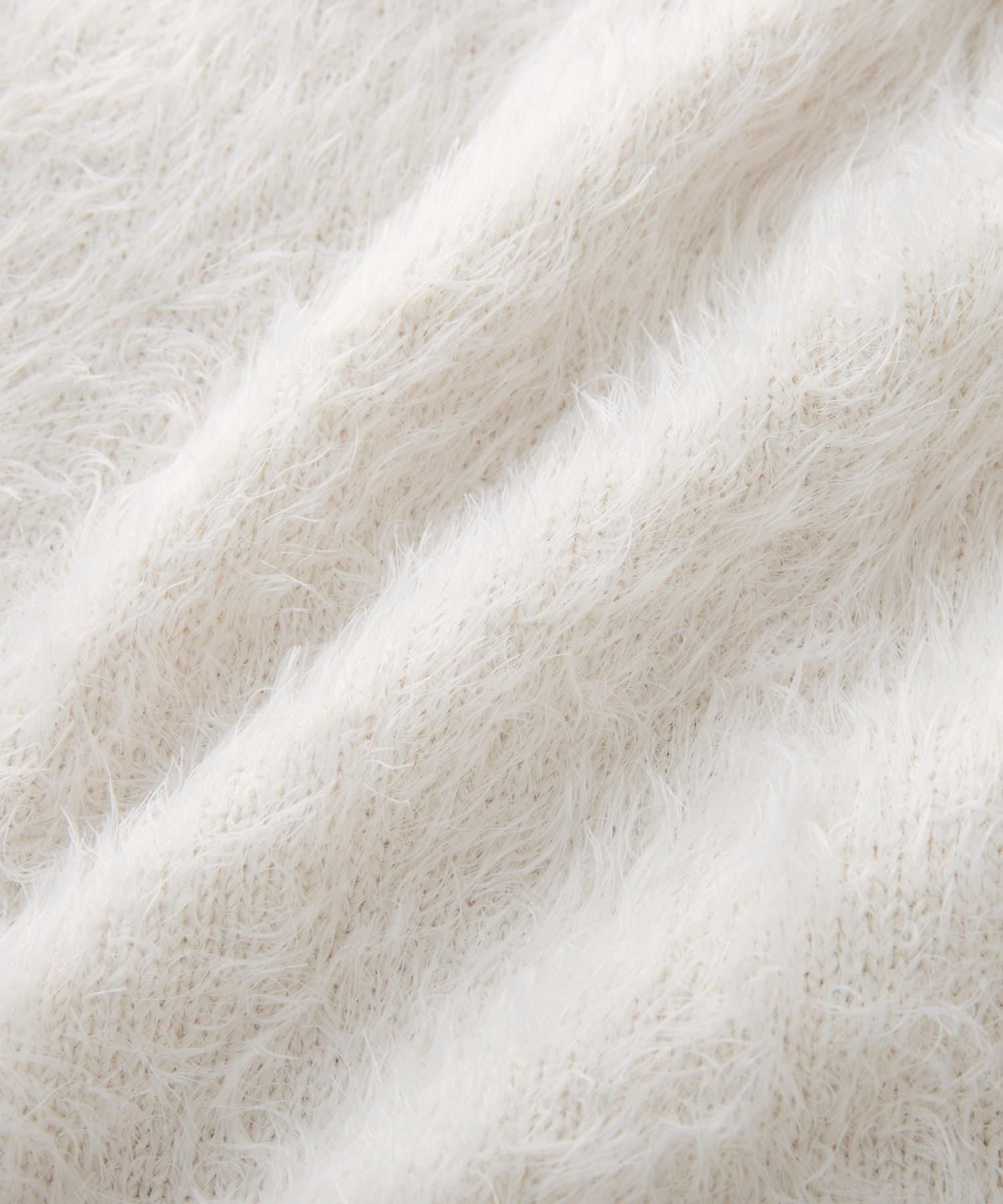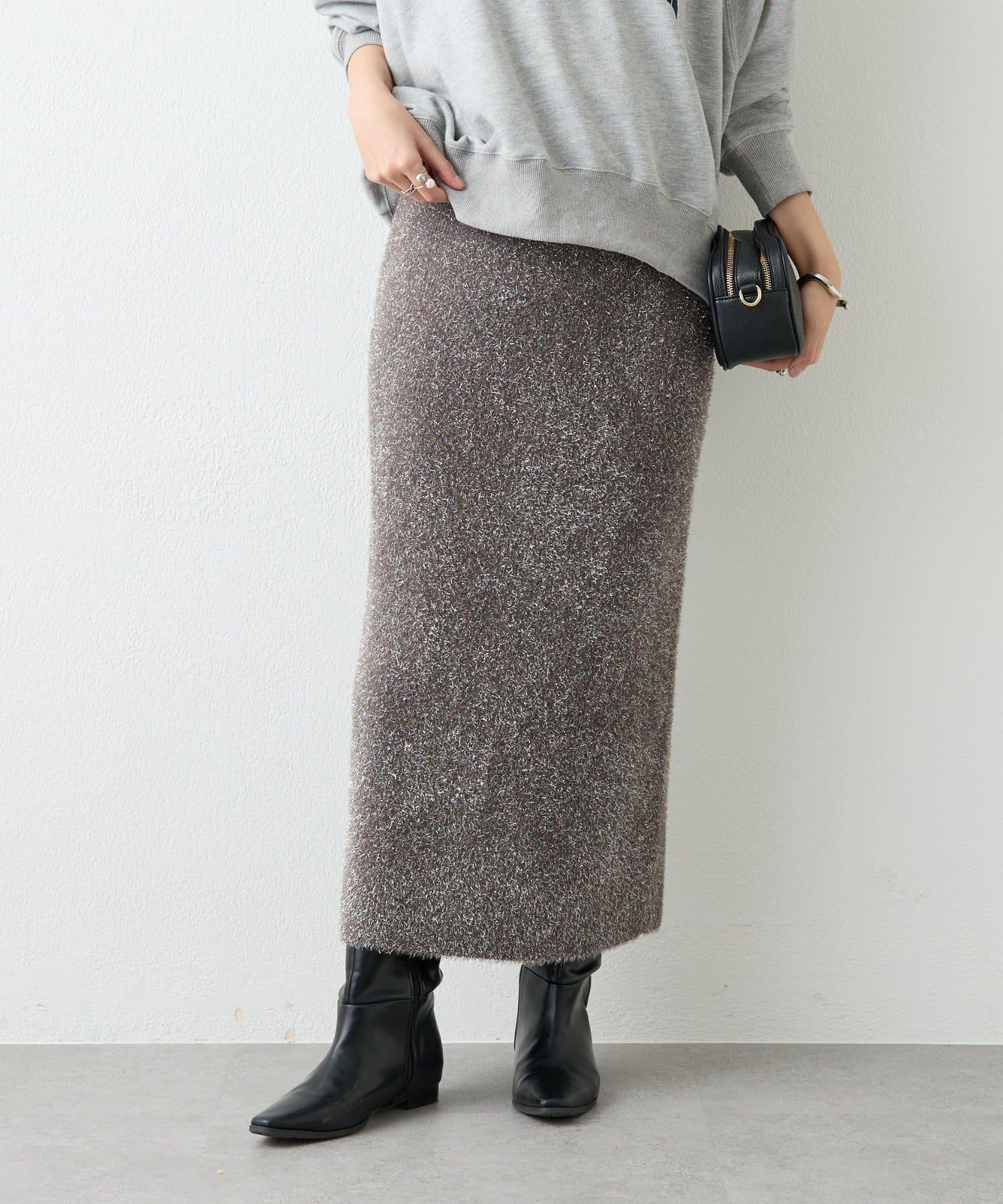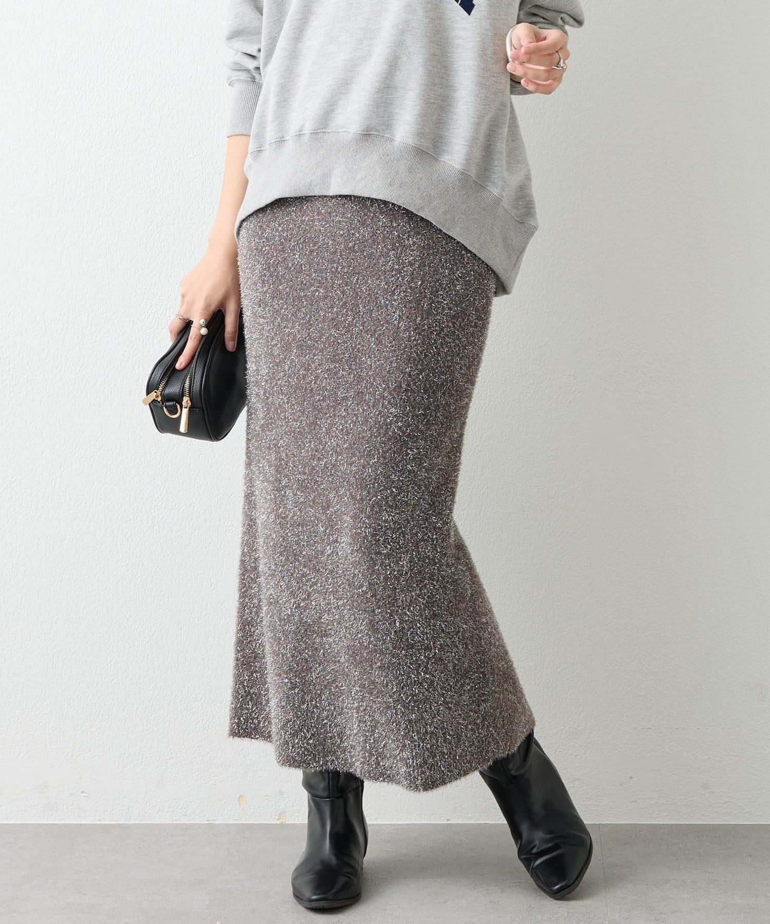 這款成人女性短裙採用毛茸茸的針織面料製成,帶有細膩的皮草紋理。