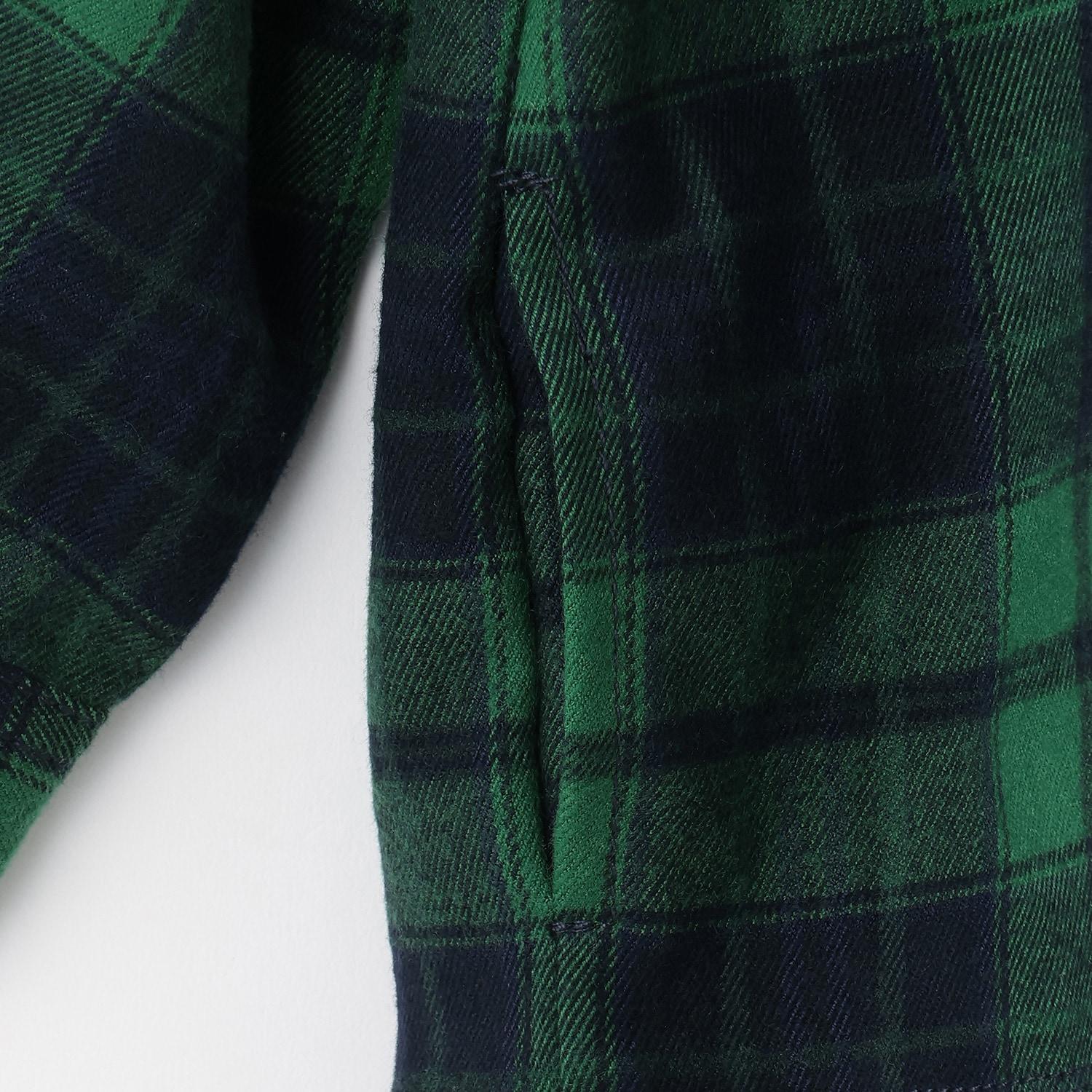 這款襯衫採用落肩設計、美式鉤扣前襟和左右兩側口袋,可以像夾克一樣穿著。