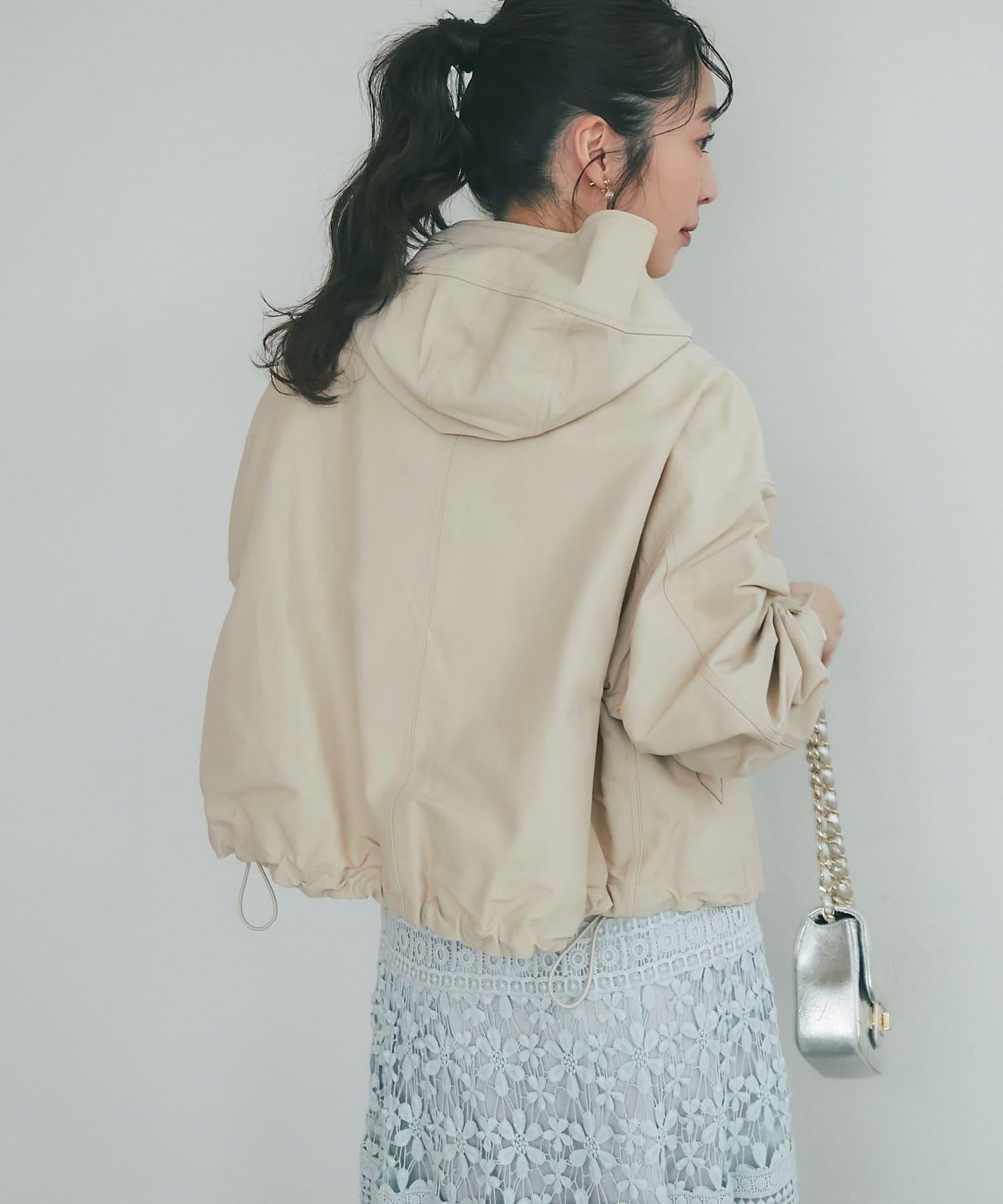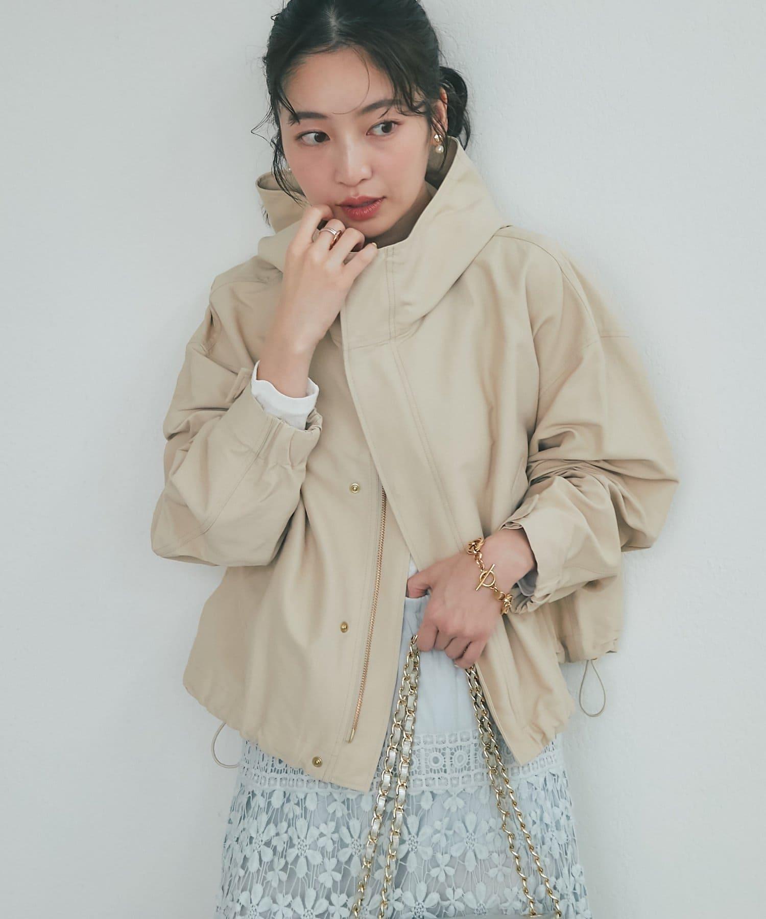 雖然寬大的衣身寬度也有鬆弛感,但也可以通過高領來瞄準小臉的效果。