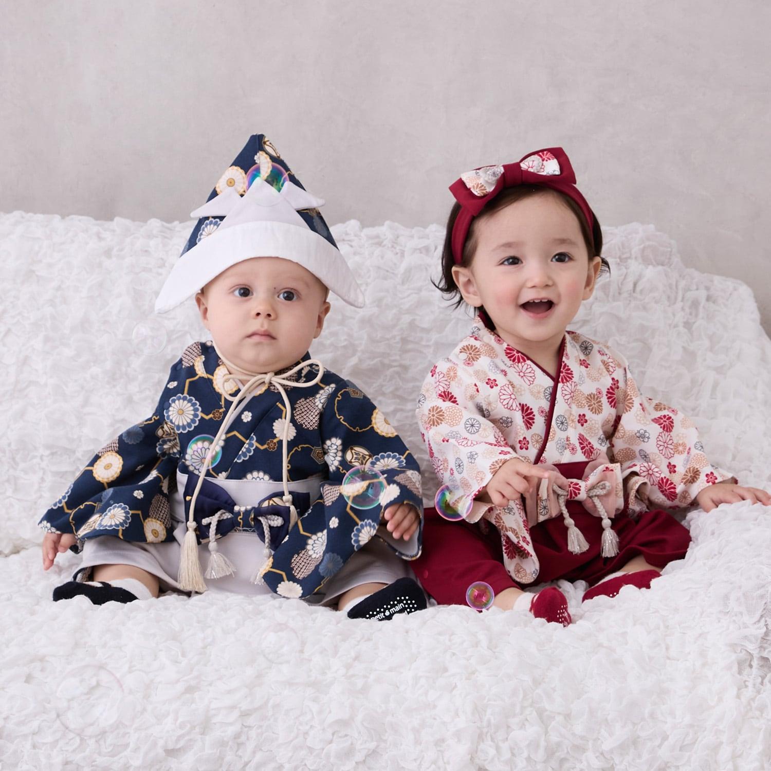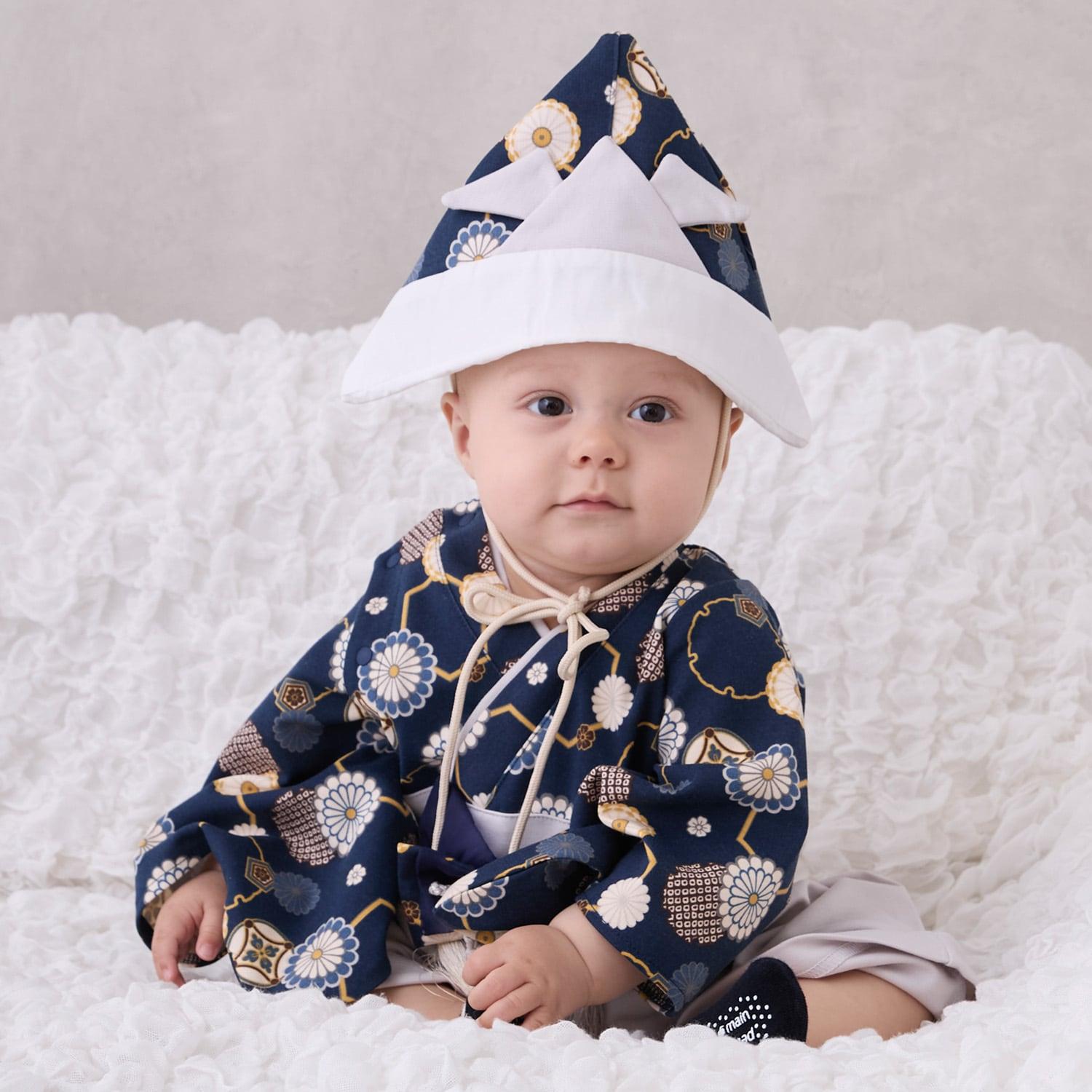 傳統的 "Kabuto "圖案以柔和的嬰兒造型和溫和的色彩表現出來。