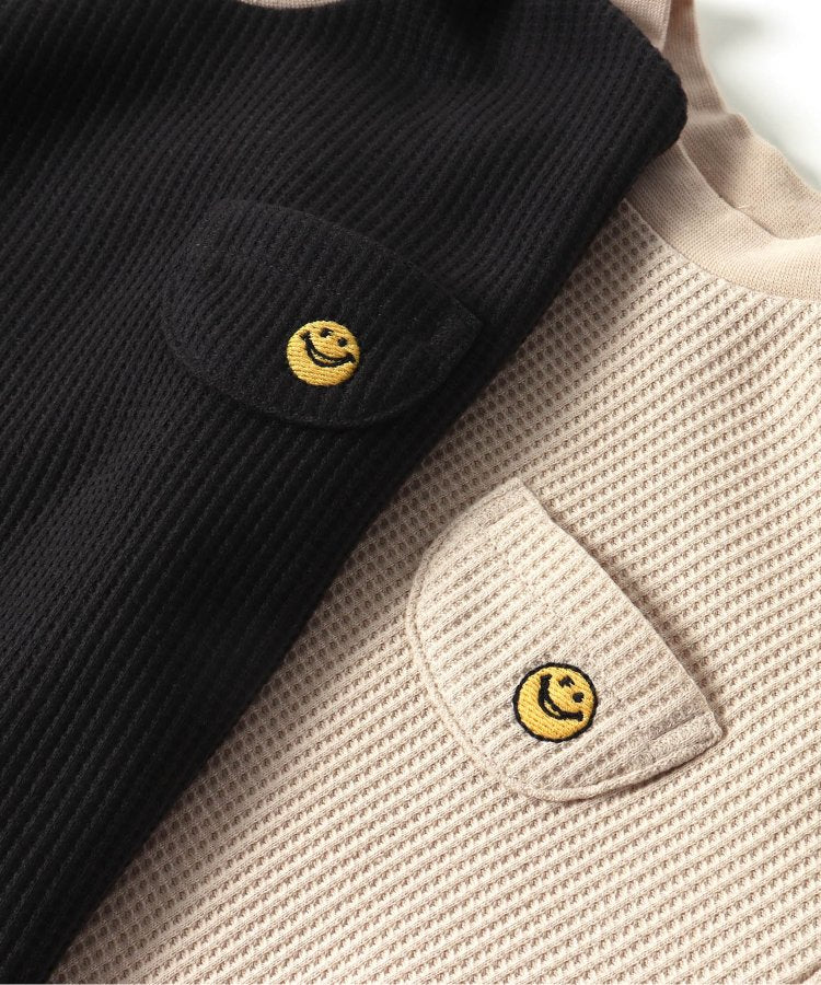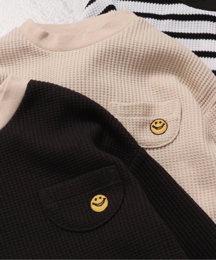 藍色、粉色和彩虹色單品的邊框圖案貫穿始終,金色和木炭色單品的星形邊框圖案也貫穿始終,胸前口袋上還印有 F.O. 的笑臉......?